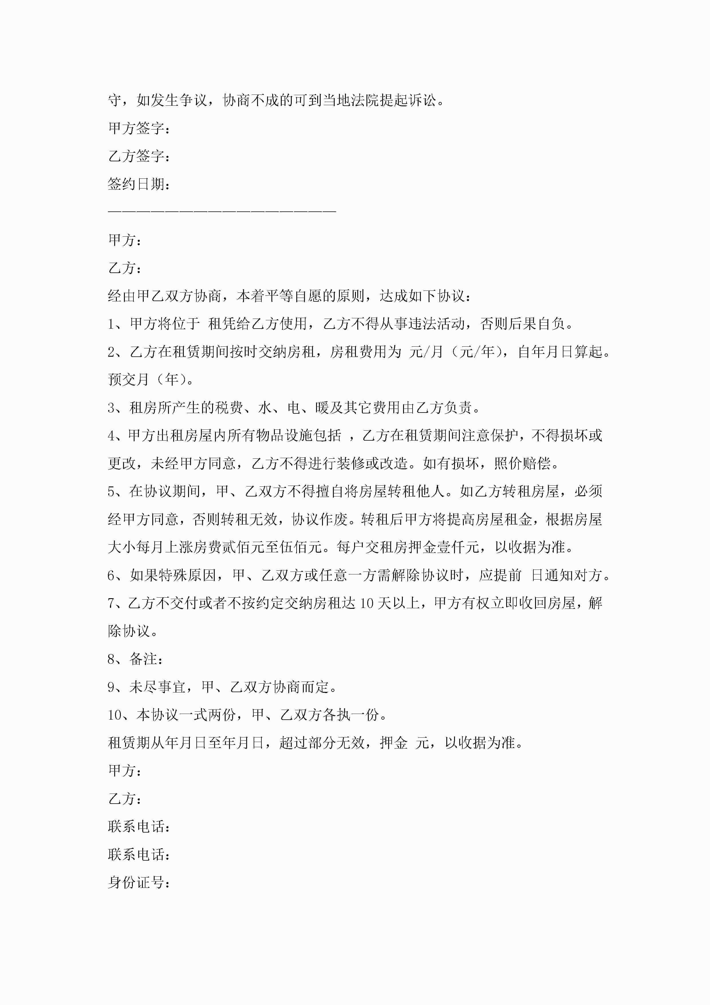 房子出租协议范本模板(精选10篇)jugei3月22日 12:42更新关注199 房子出租协议范本模板(精选10篇)此内容为付费资源,请付费后查看¥10.9 单篇文档限时特惠¥15个人会员开通企业会员开通立即下载无需登陆!可直接快捷下载单个模板付费资源© 版权声明THE ENDWord模板# 实用文档# 实用模板# 信函模板# 协议书 如有问题,可点击最底部“联系我们”联系客服 分享QQ空间微博QQ好友海报分享复制链接收藏