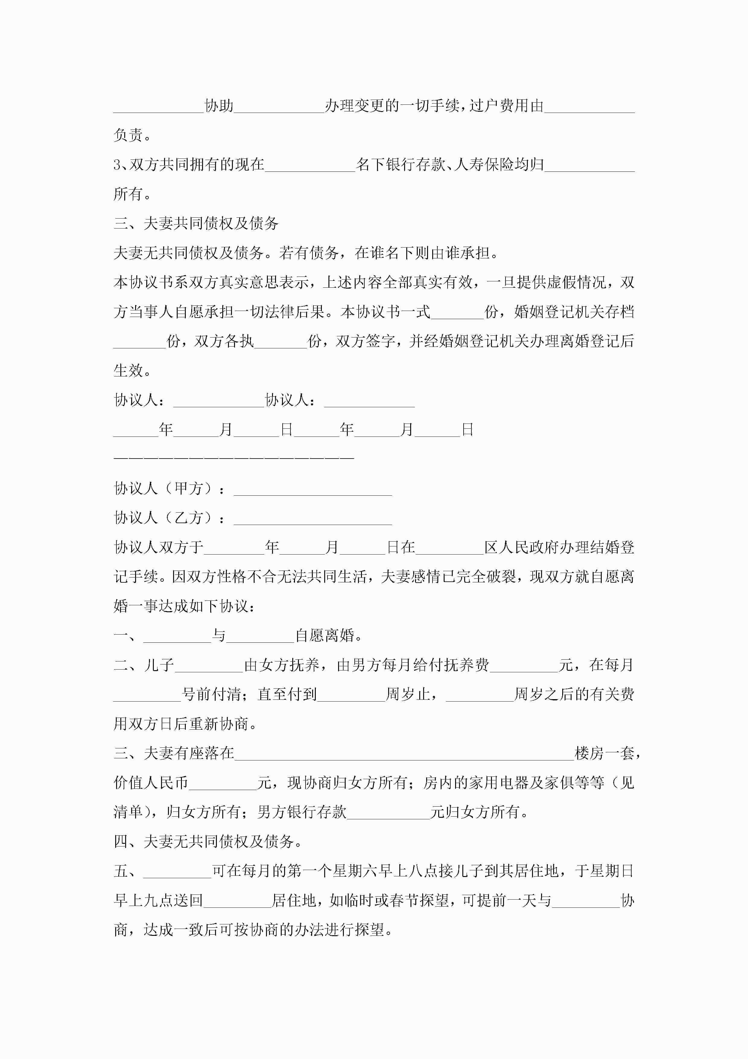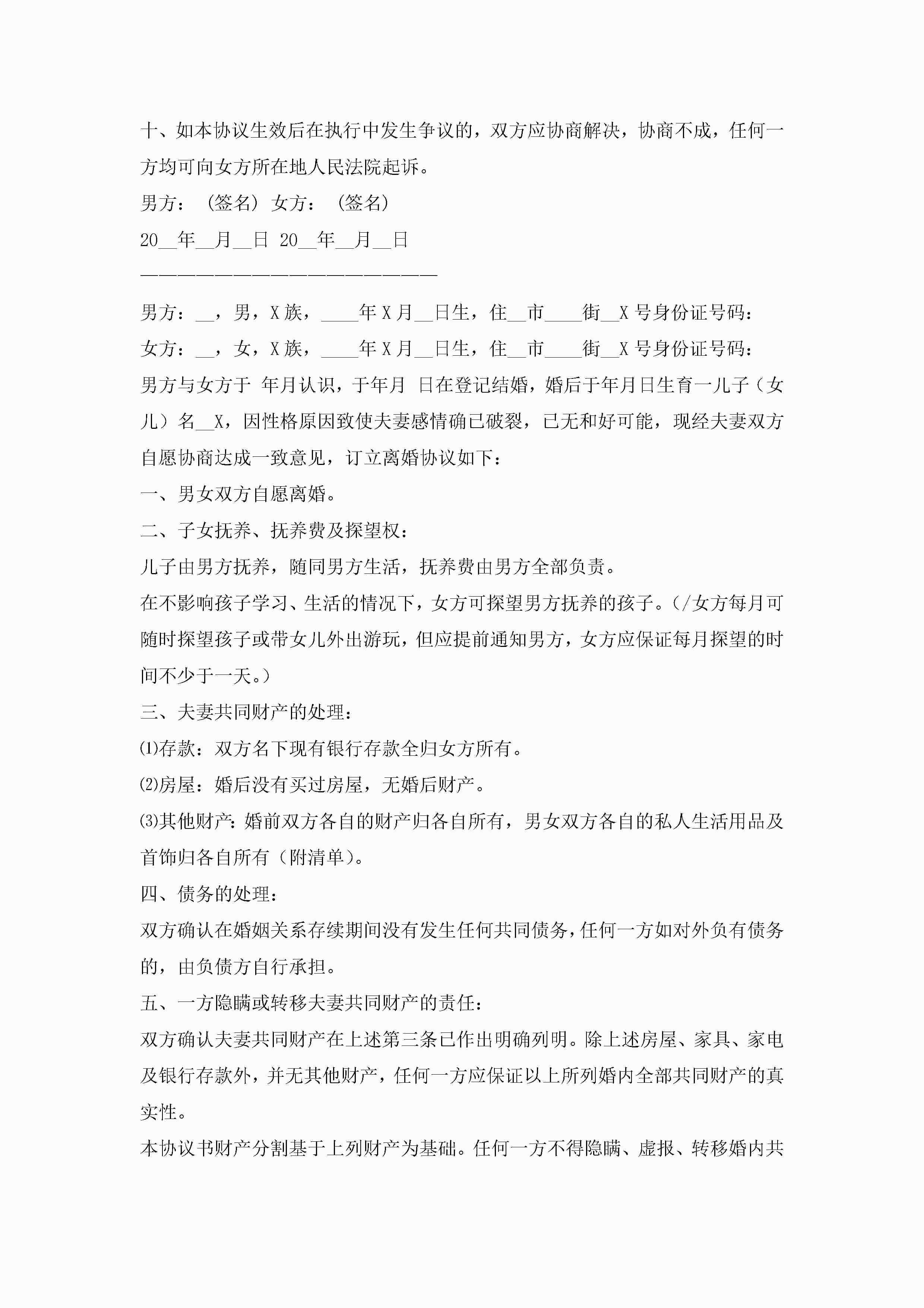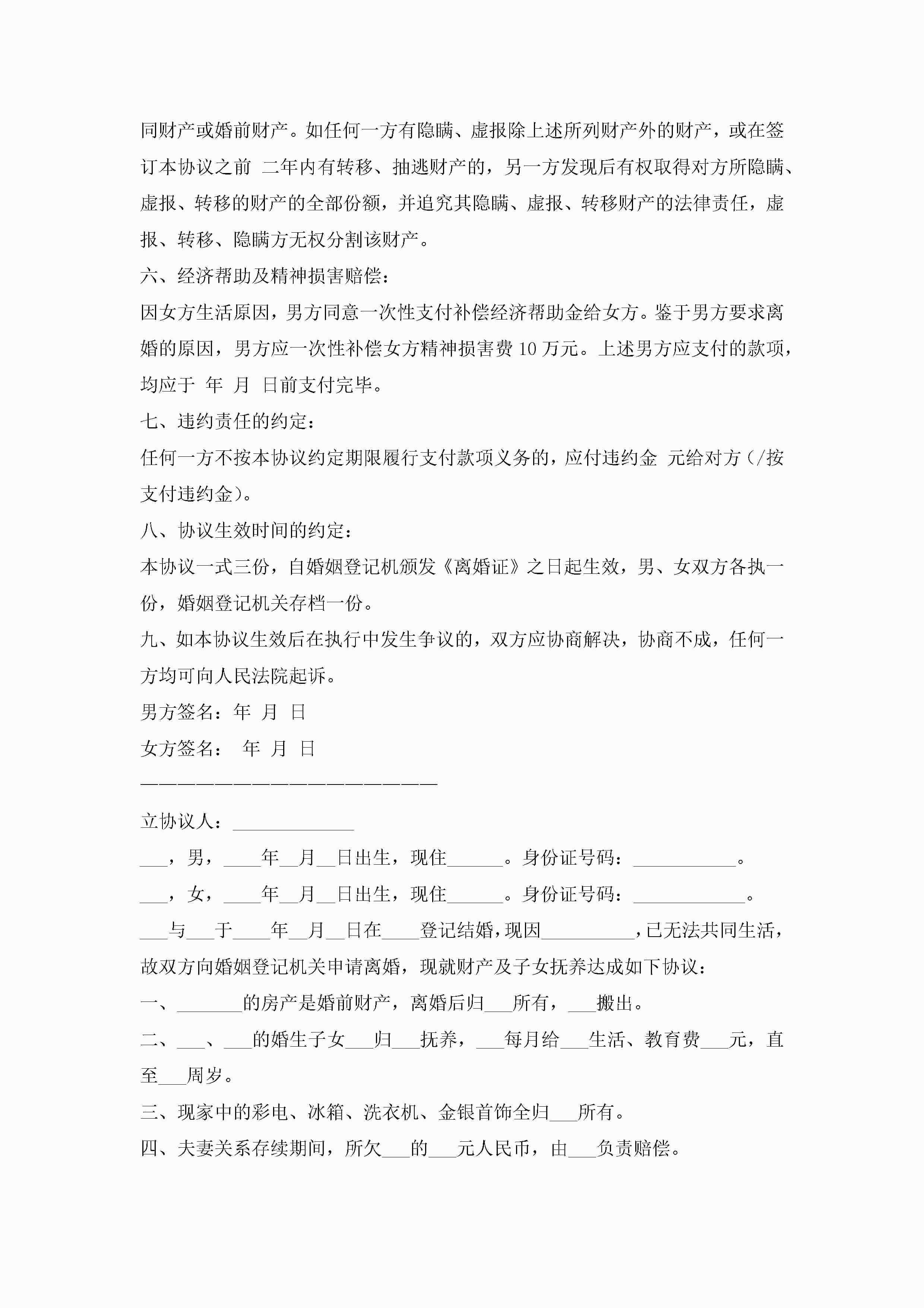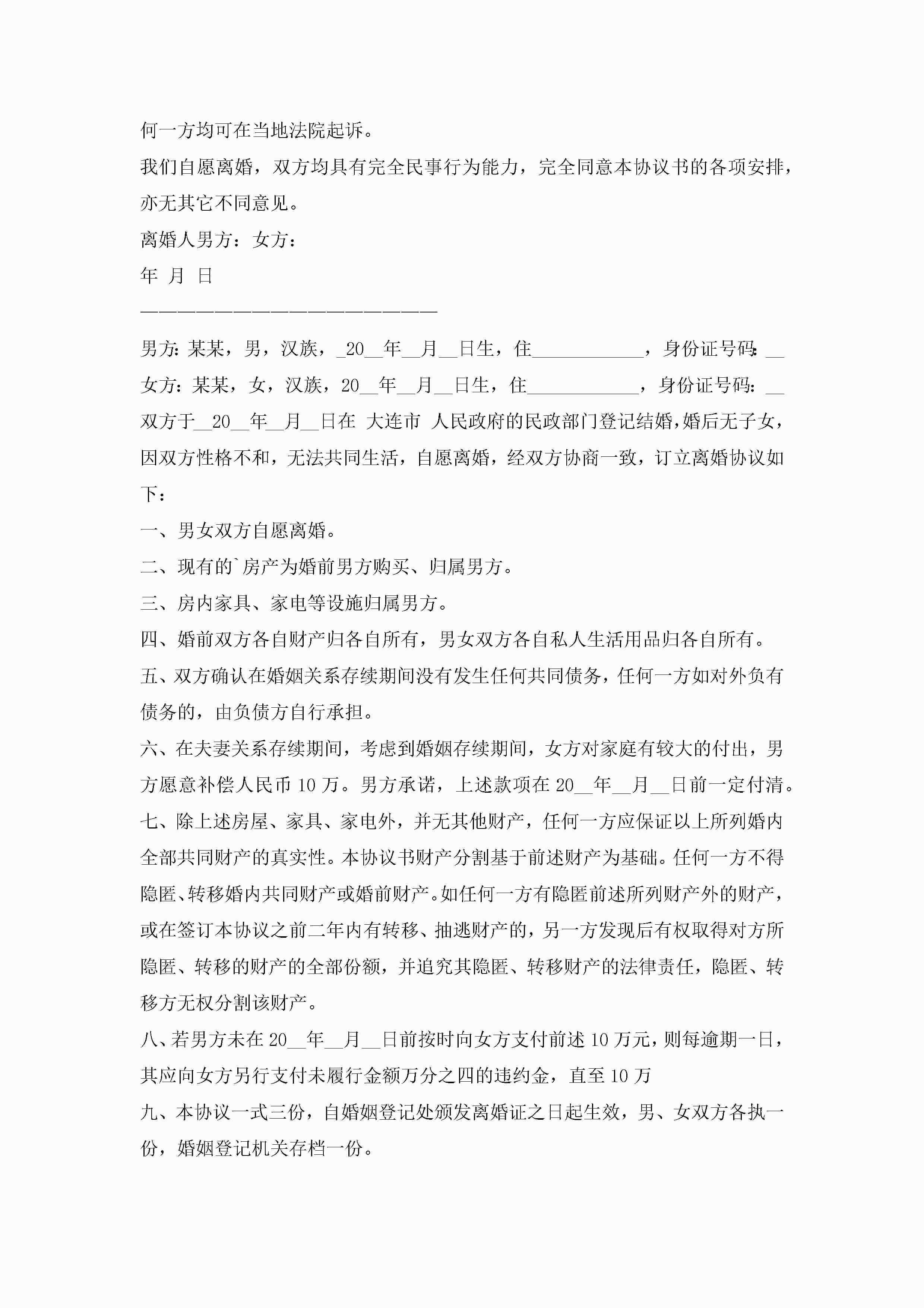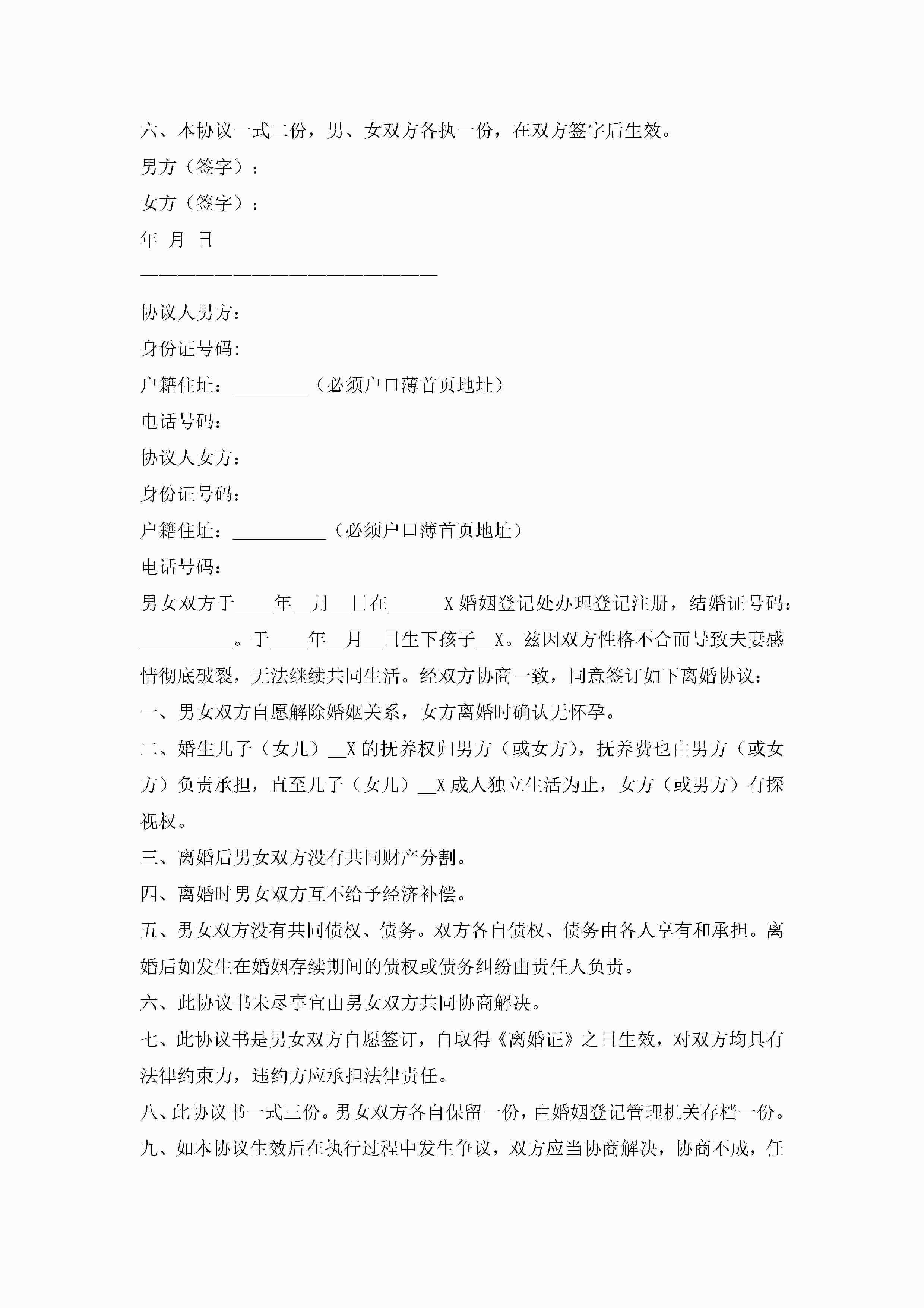 离婚协议书2022最新版7篇jugei3月22日 12:42更新关注224 离婚协议书2022最新版7篇此内容为付费资源,请付费后查看¥10.9 单篇文档限时特惠¥15个人会员开通企业会员开通立即下载无需登陆!可直接快捷下载单个模板付费资源© 版权声明THE ENDWord模板# 实用文档# 实用模板# 信函模板# 协议书 如有问题,可点击最底部“联系我们”联系客服 分享QQ空间微博QQ好友海报分享复制链接收藏