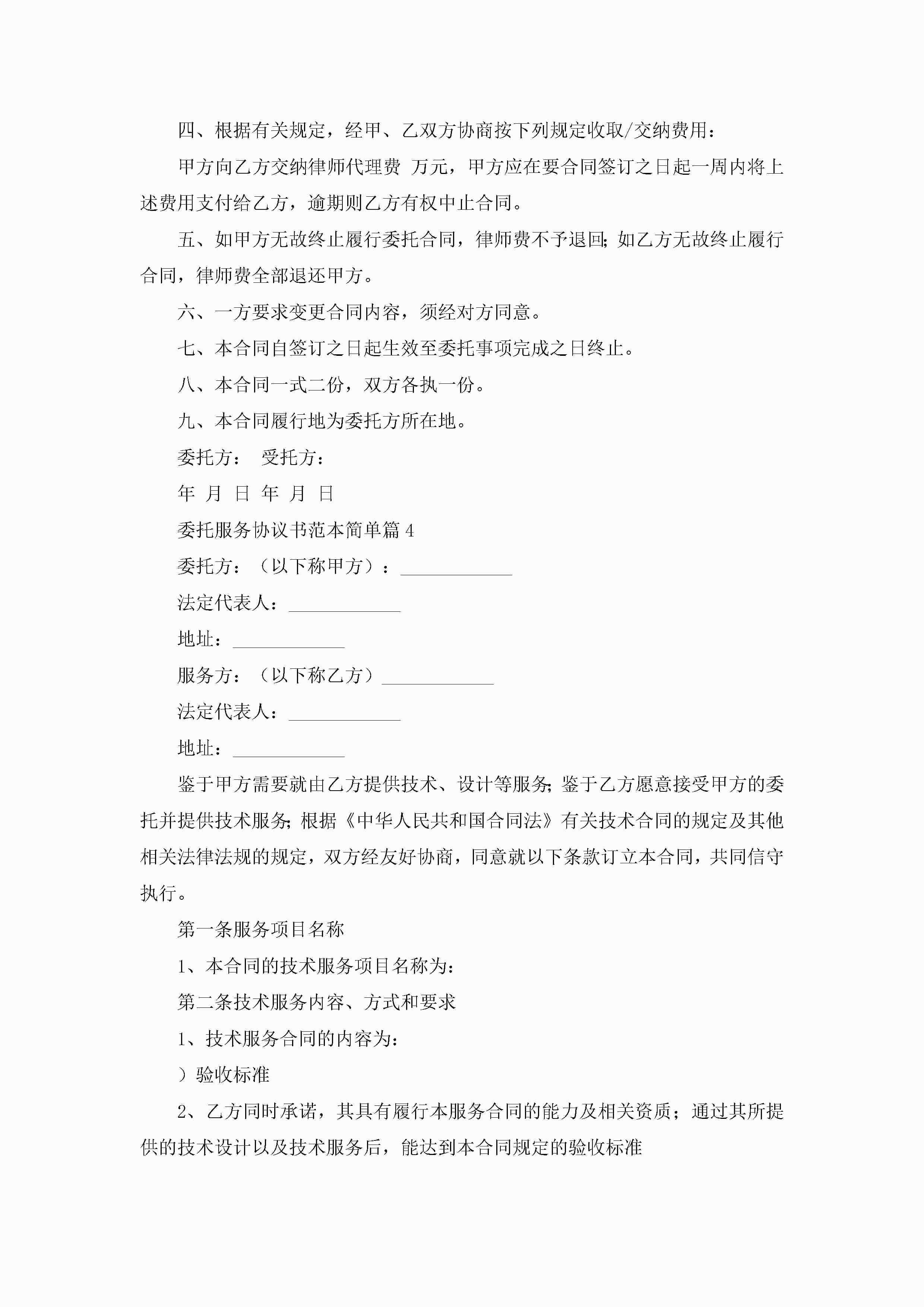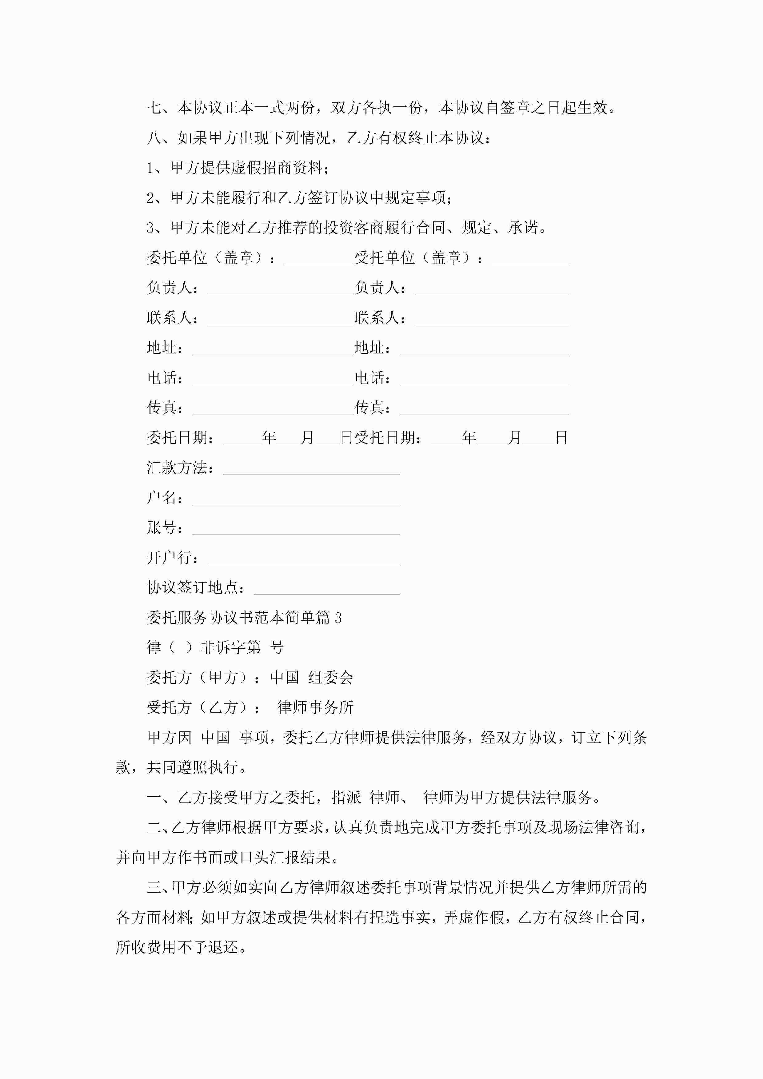 委托服务协议书范本简单(精选10篇)jugei3月22日 12:42更新关注192 委托服务协议书范本简单(精选10篇)此内容为付费资源,请付费后查看¥10.9 单篇文档限时特惠¥15个人会员开通企业会员开通立即下载无需登陆!可直接快捷下载单个模板付费资源© 版权声明THE ENDWord模板# 实用文档# 实用模板# 信函模板# 协议书 如有问题,可点击最底部“联系我们”联系客服 分享QQ空间微博QQ好友海报分享复制链接收藏