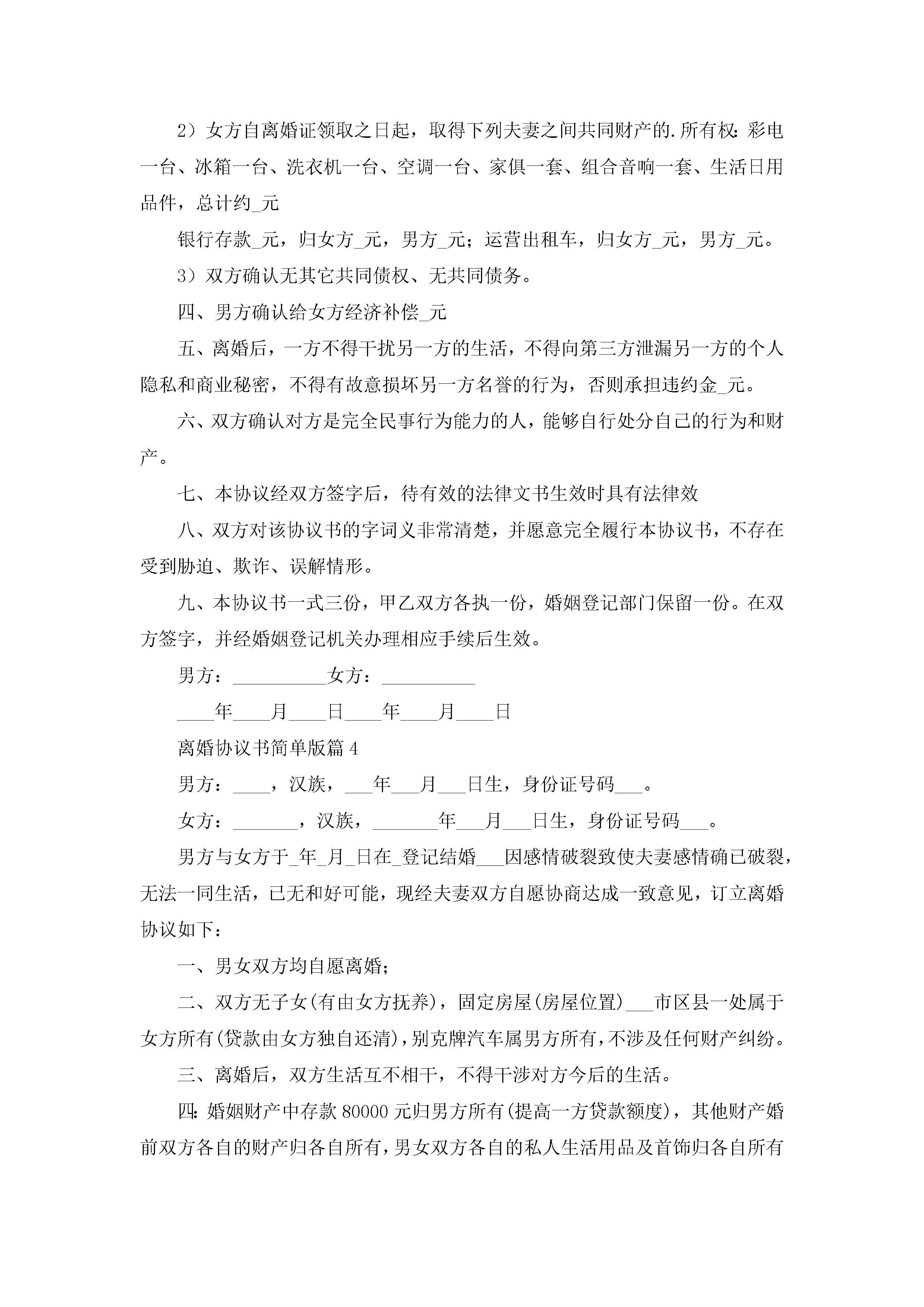 离婚协议书简单版(精选10篇)jugei3月22日 12:42更新关注302 离婚协议书简单版(精选10篇)此内容为付费资源,请付费后查看¥10.9 单篇文档限时特惠¥15个人会员开通企业会员开通立即下载无需登陆!可直接快捷下载单个模板付费资源© 版权声明THE ENDWord模板# 实用文档# 实用模板# 信函模板# 协议书 如有问题,可点击最底部“联系我们”联系客服 分享QQ空间微博QQ好友海报分享复制链接收藏
