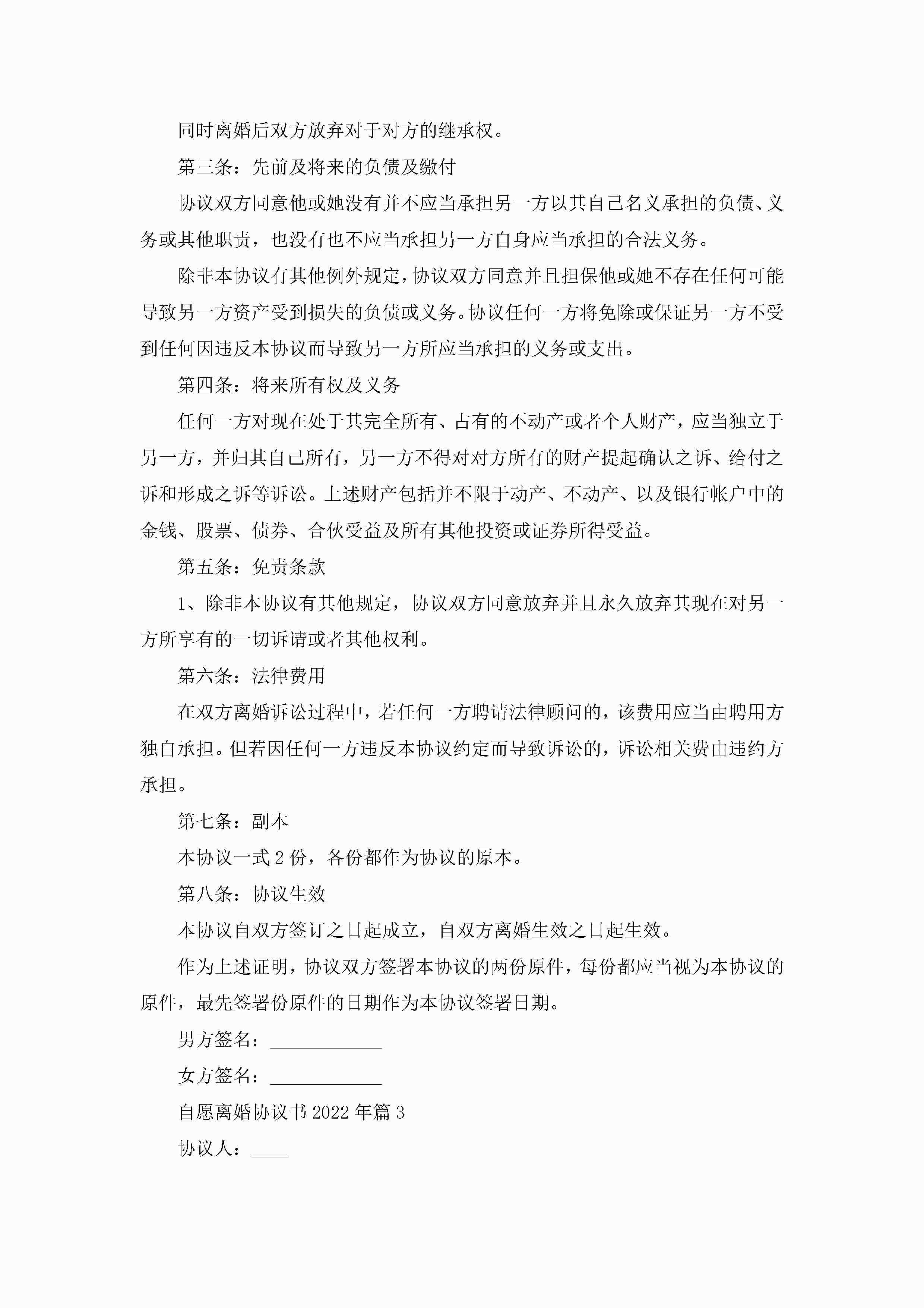 自愿离婚协议书2022年(精选10篇)jugei3月22日 12:42更新关注195 自愿离婚协议书2022年(精选10篇)此内容为付费资源,请付费后查看¥10.9 单篇文档限时特惠¥15个人会员开通企业会员开通立即下载无需登陆!可直接快捷下载单个模板付费资源© 版权声明THE ENDWord模板# 实用文档# 实用模板# 信函模板# 协议书 如有问题,可点击最底部“联系我们”联系客服 分享QQ空间微博QQ好友海报分享复制链接收藏