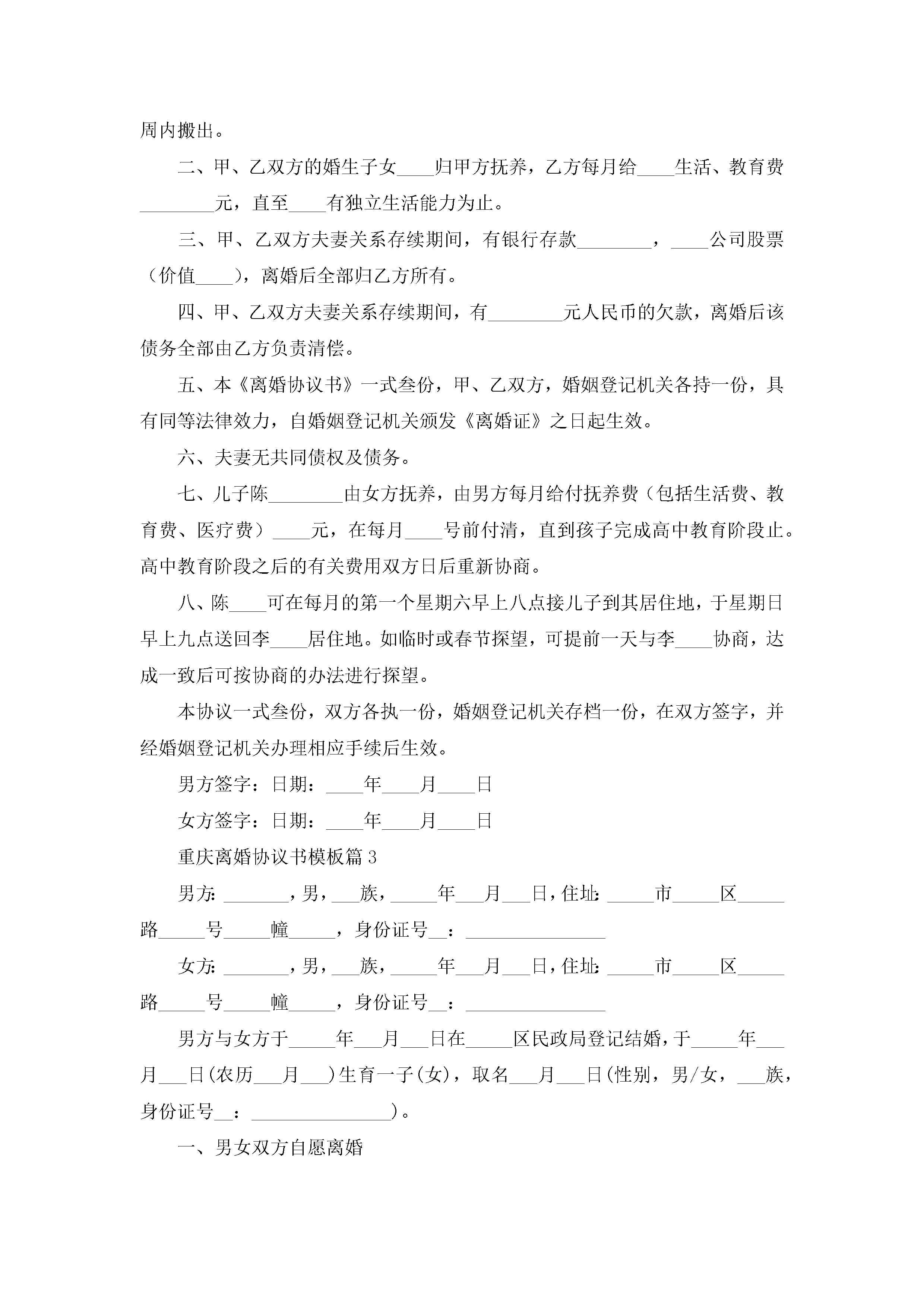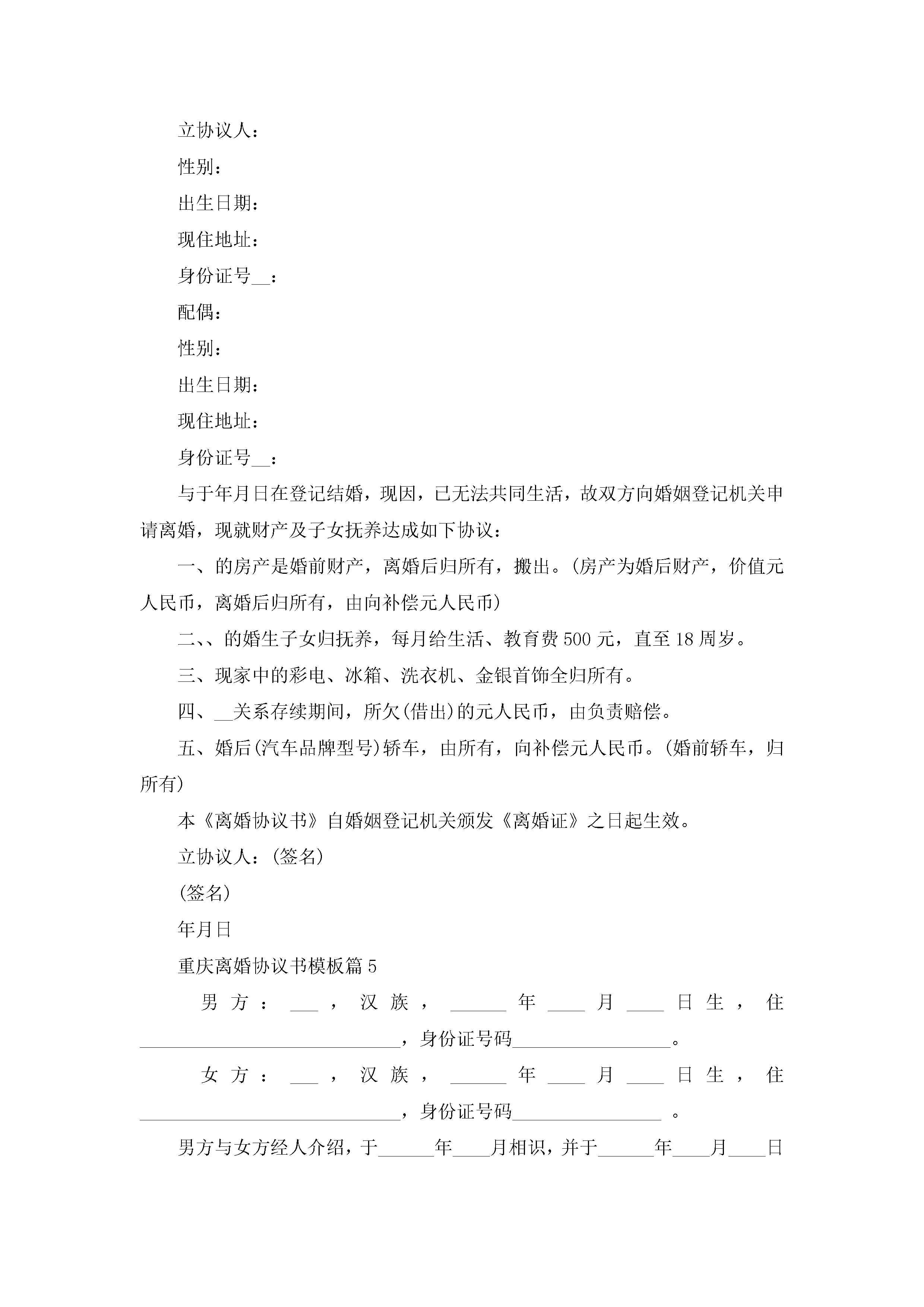 最新重庆离婚协议书模板jugei3月22日 12:42更新关注217 最新重庆离婚协议书模板此内容为付费资源,请付费后查看¥10.9 单篇文档限时特惠¥15个人会员开通企业会员开通立即下载无需登陆!可直接快捷下载单个模板付费资源© 版权声明THE ENDWord模板# 实用文档# 信函模板# 协议书# 重庆离婚协议书模板 如有问题,可点击最底部“联系我们”联系客服 分享QQ空间微博QQ好友海报分享复制链接收藏