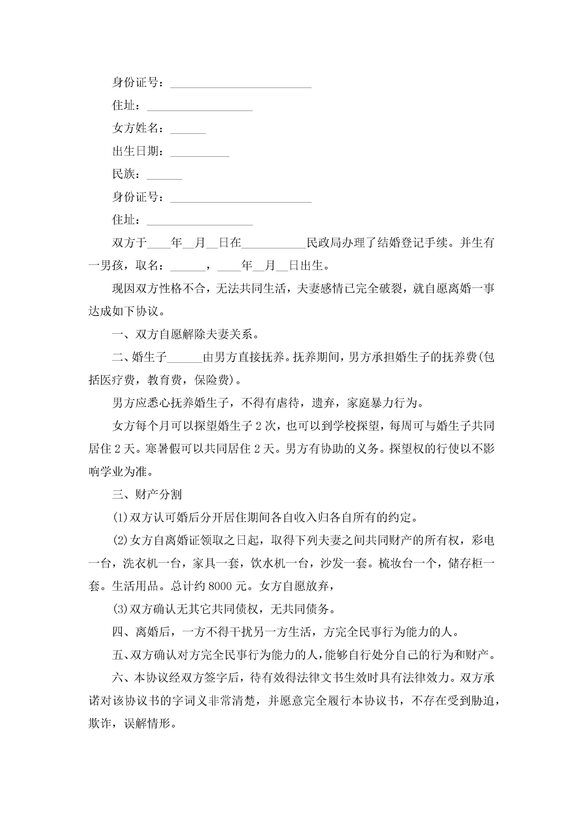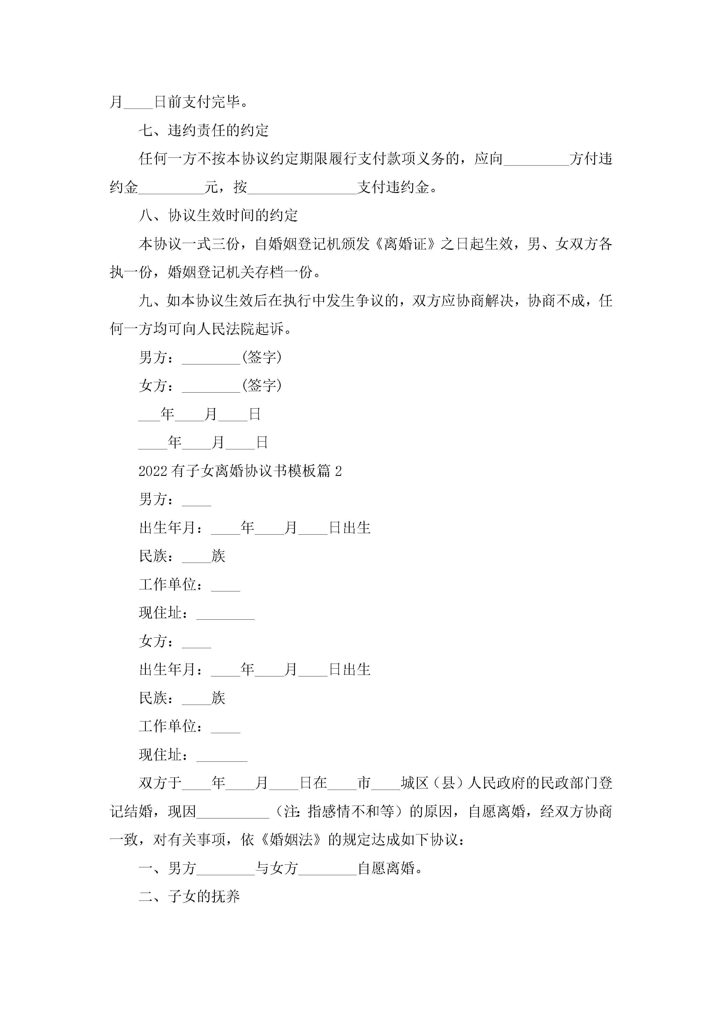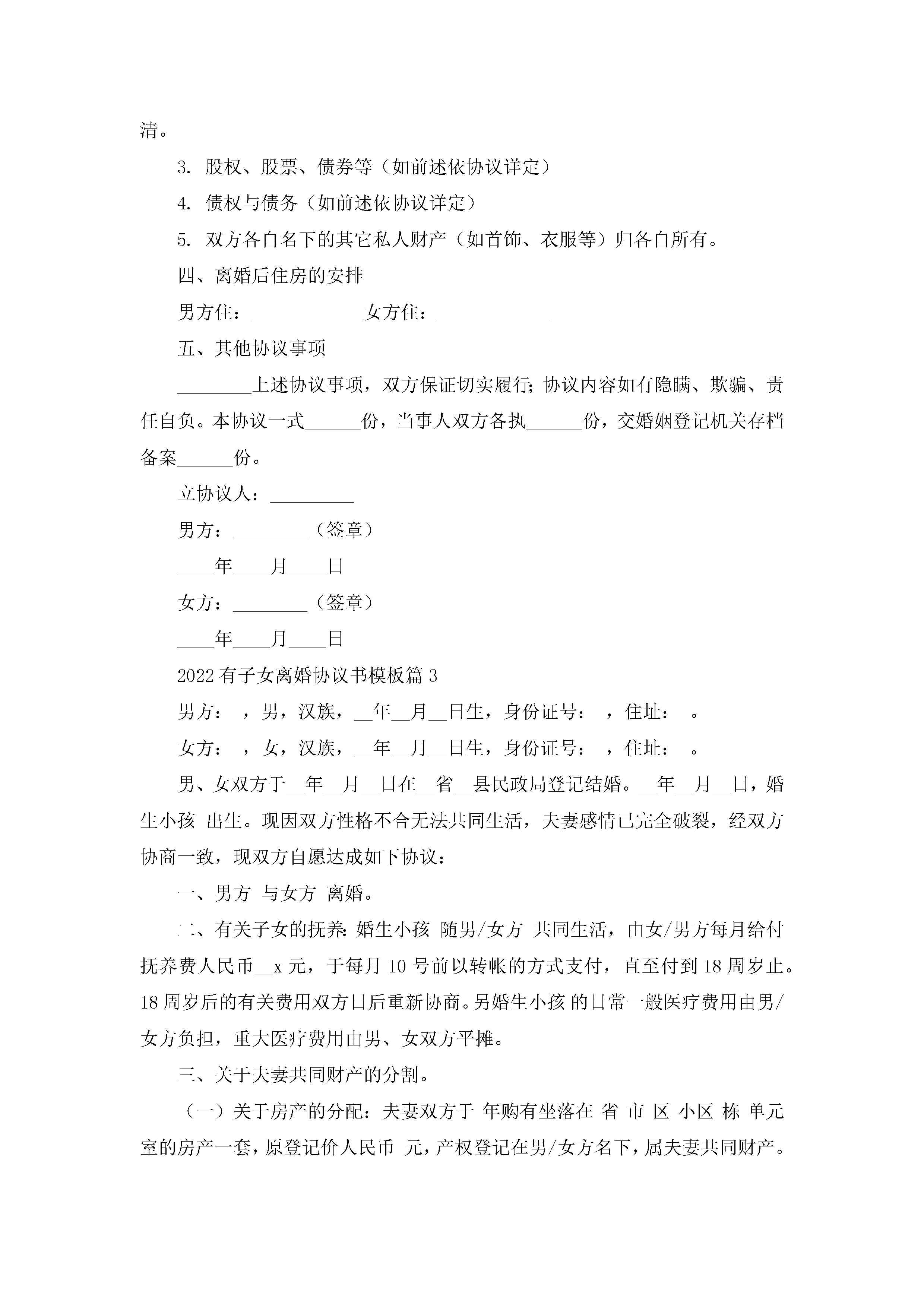 2022有子女离婚协议书模板(精选10篇)jugei3月22日 12:42更新关注213 2022有子女离婚协议书模板(精选10篇)此内容为付费资源,请付费后查看¥10.9 单篇文档限时特惠¥15个人会员开通企业会员开通立即下载无需登陆!可直接快捷下载单个模板付费资源© 版权声明THE ENDWord模板# 实用文档# 实用模板# 信函模板# 协议书 如有问题,可点击最底部“联系我们”联系客服 分享QQ空间微博QQ好友海报分享复制链接收藏