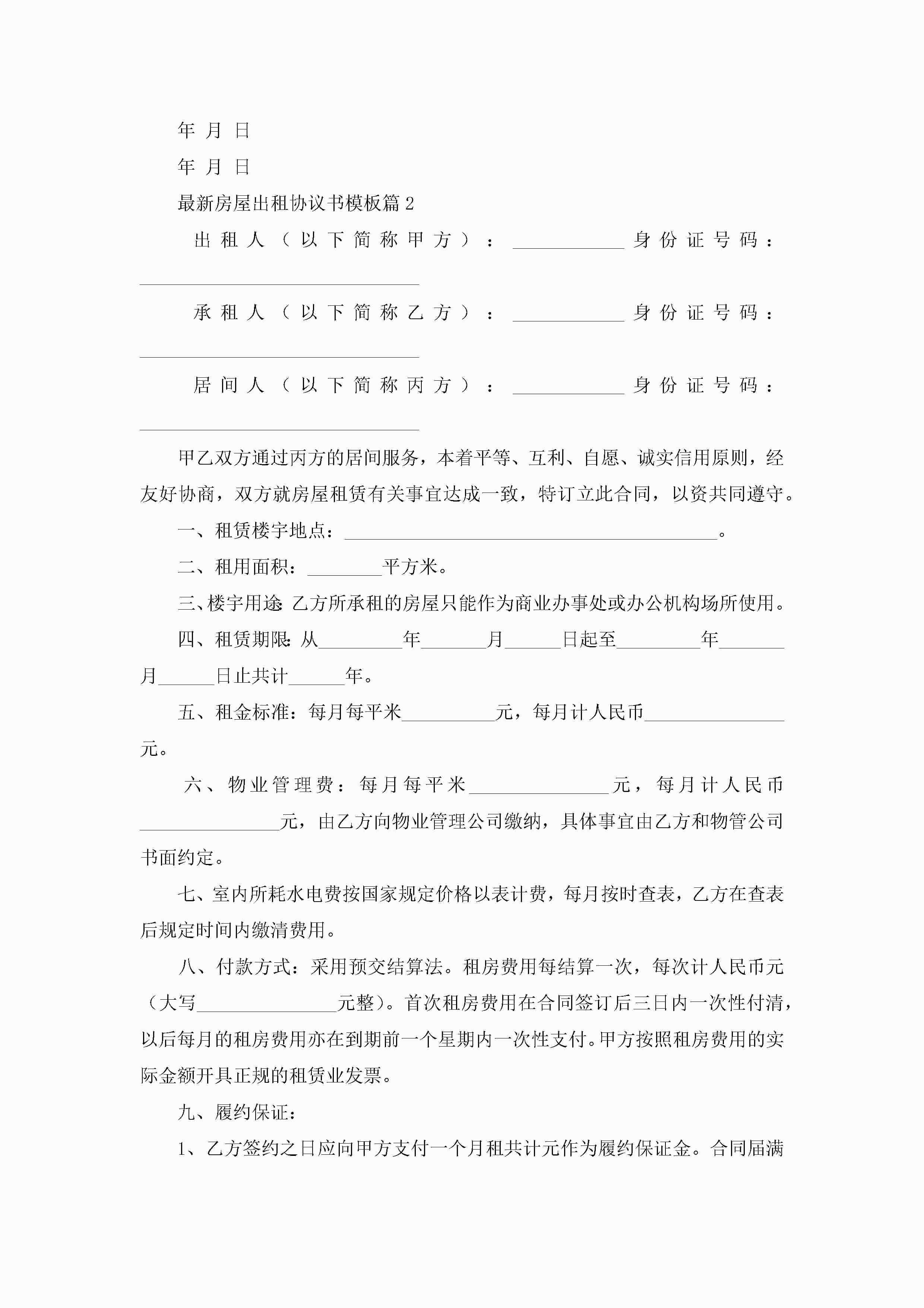 最新房屋出租协议书模板(精选10篇)jugei3月22日 12:42更新关注208 最新房屋出租协议书模板(精选10篇)此内容为付费资源,请付费后查看¥10.9 单篇文档限时特惠¥15个人会员开通企业会员开通立即下载无需登陆!可直接快捷下载单个模板付费资源© 版权声明THE ENDWord模板# 实用文档# 实用模板# 信函模板# 协议书 如有问题,可点击最底部“联系我们”联系客服 分享QQ空间微博QQ好友海报分享复制链接收藏