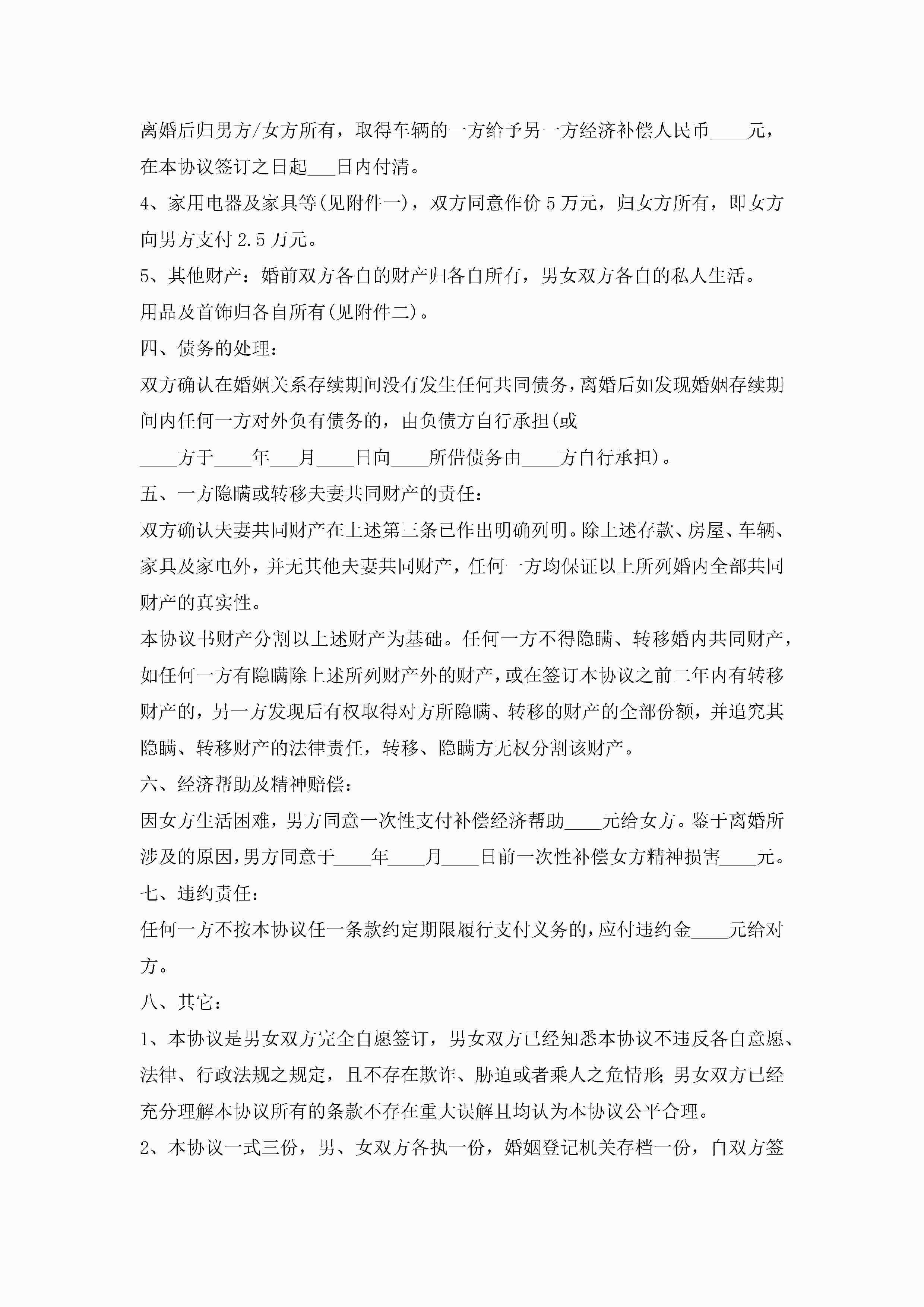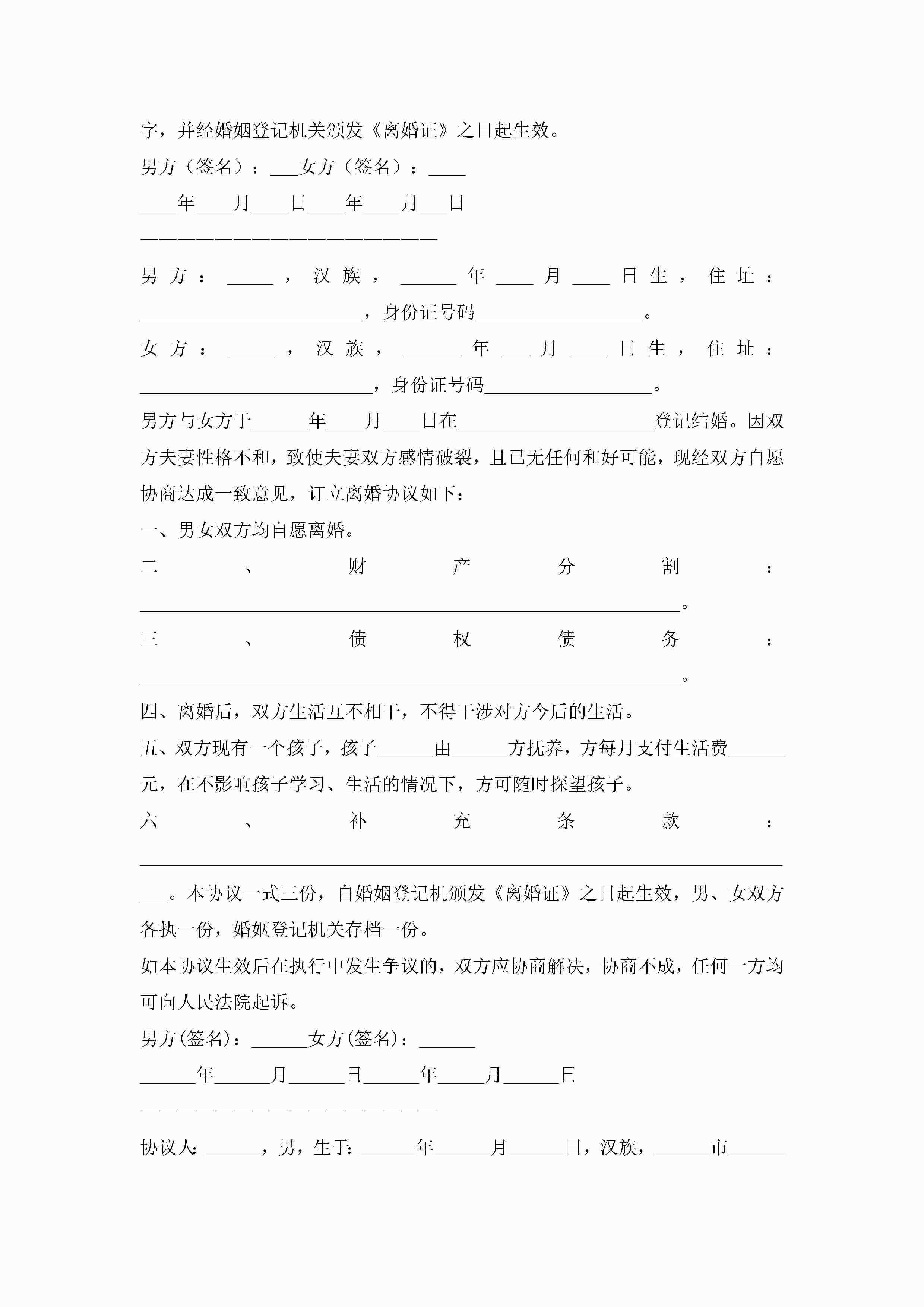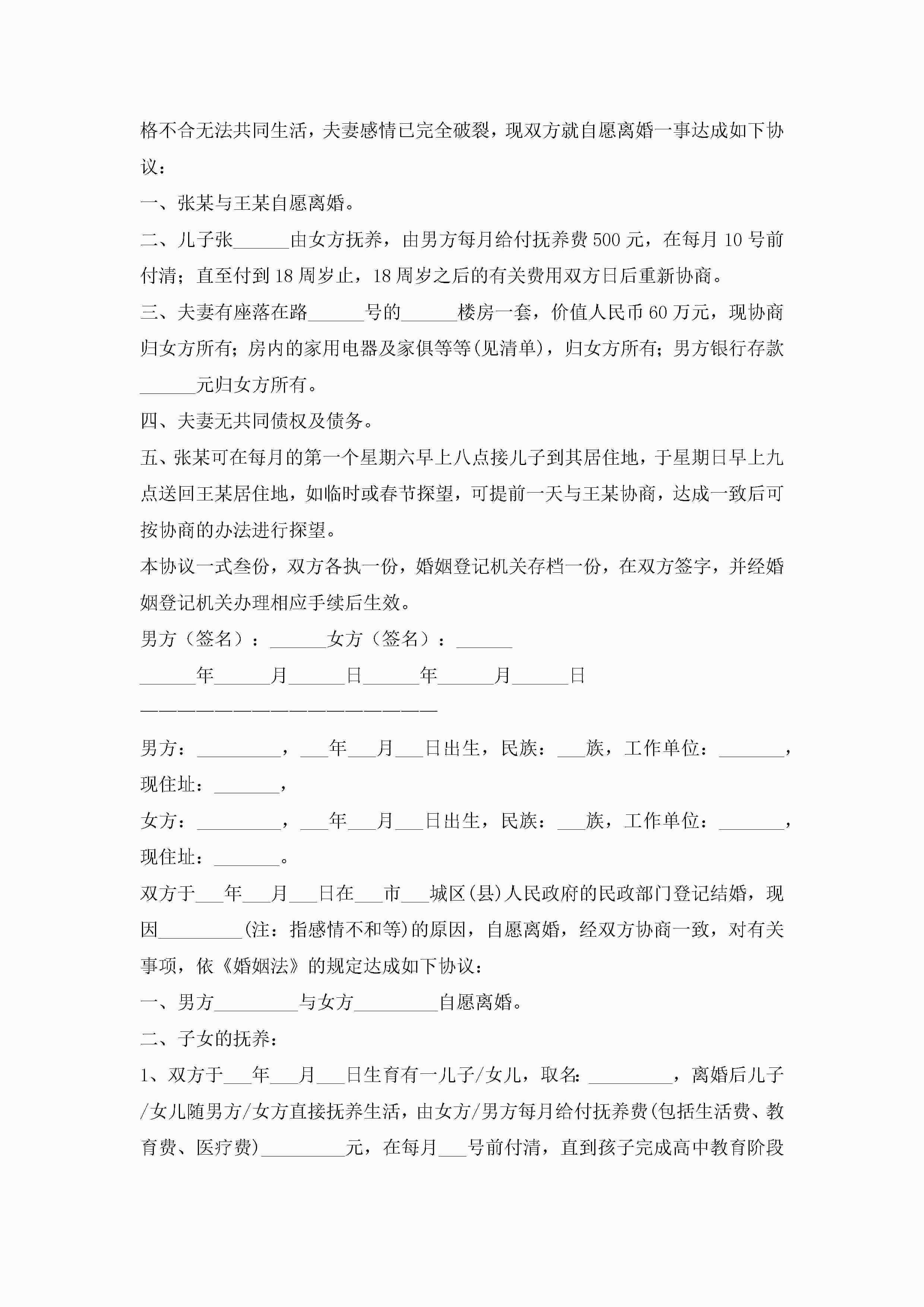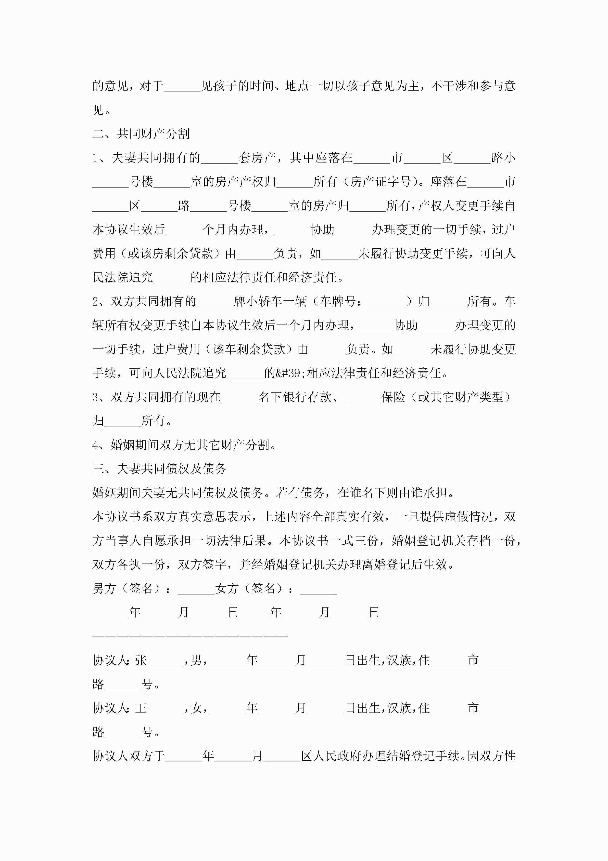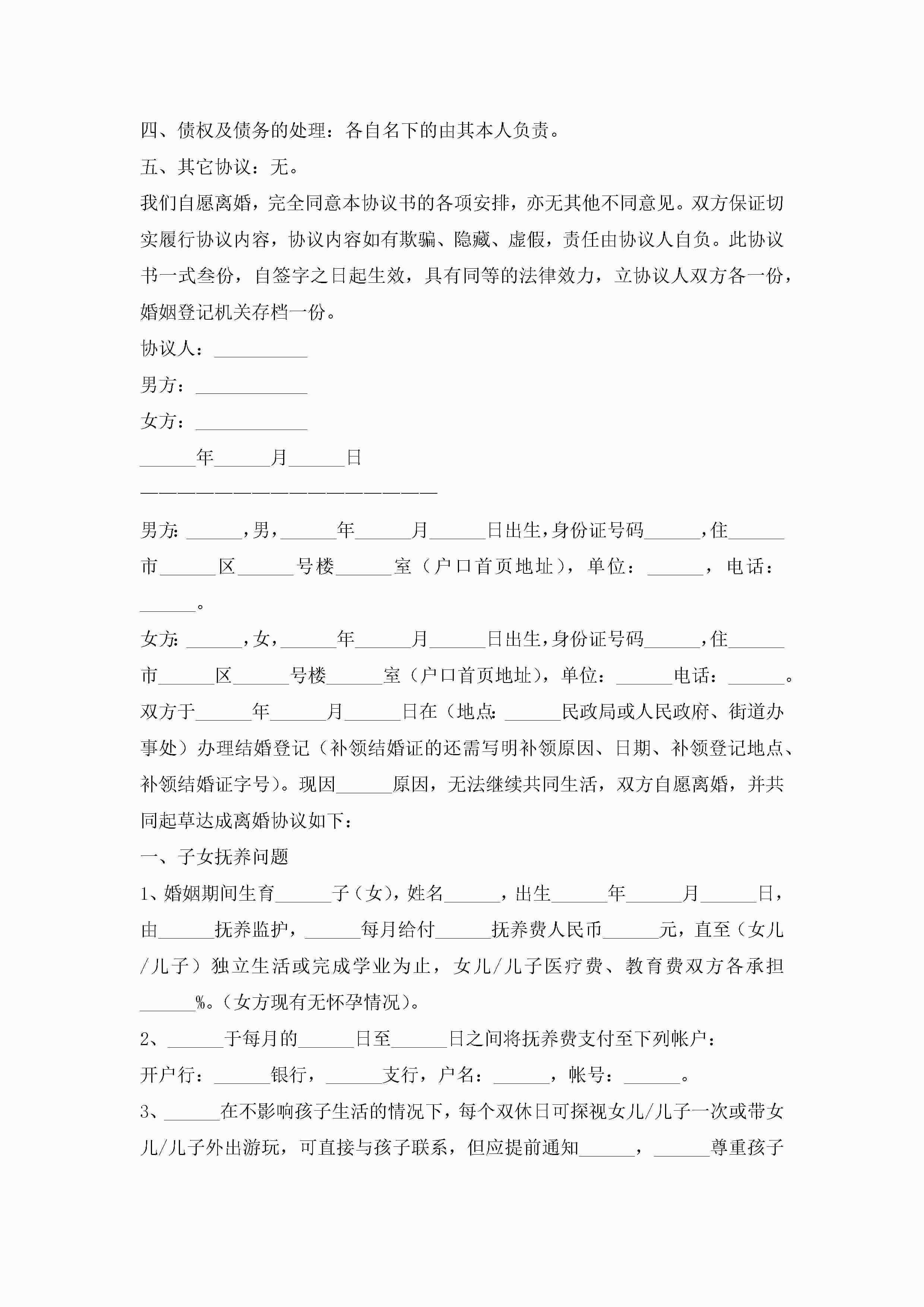 关于离婚的协议书范本(精选10篇)jugei3月22日 12:42更新关注207 关于离婚的协议书范本(精选10篇)此内容为付费资源,请付费后查看¥10.9 单篇文档限时特惠¥15个人会员开通企业会员开通立即下载无需登陆!可直接快捷下载单个模板付费资源© 版权声明THE ENDWord模板# 实用文档# 实用模板# 信函模板# 协议书 如有问题,可点击最底部“联系我们”联系客服 分享QQ空间微博QQ好友海报分享复制链接收藏