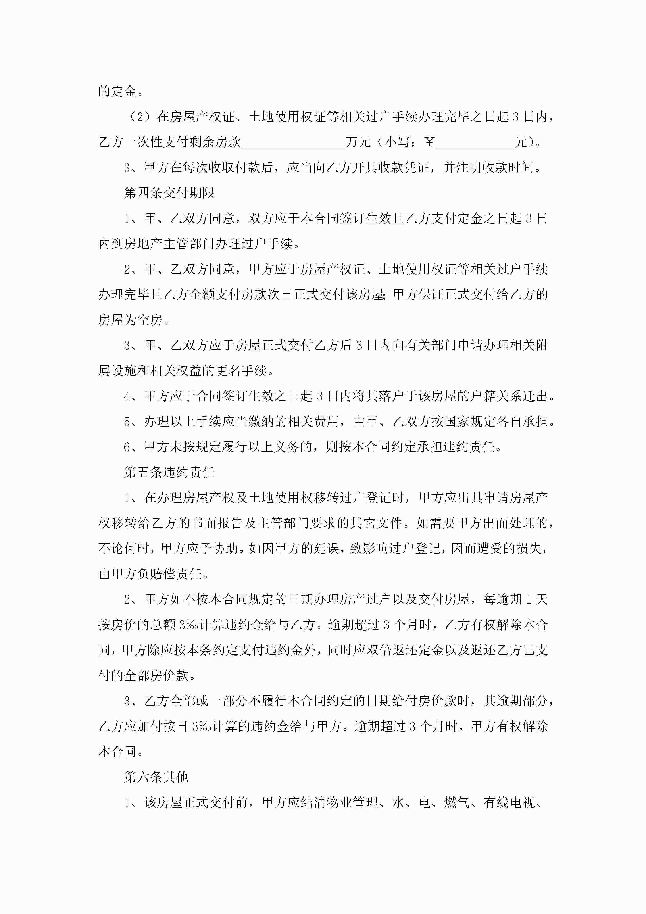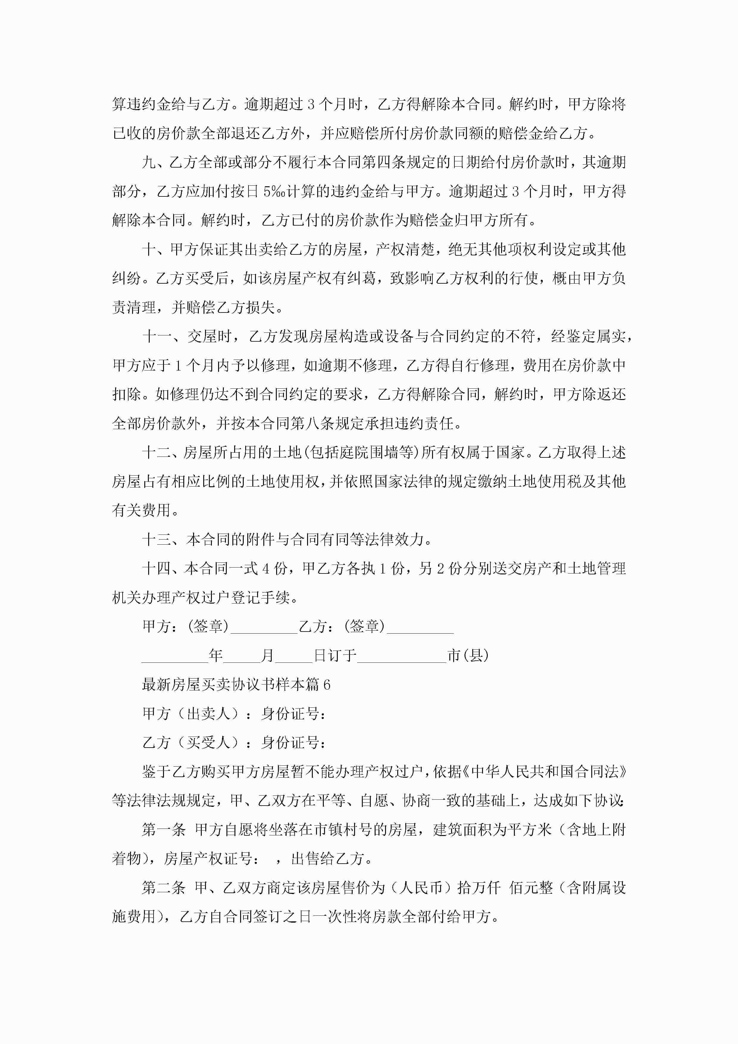 最新房屋买卖协议书样本(精选10篇)jugei3月22日 12:42更新关注264 最新房屋买卖协议书样本(精选10篇)此内容为付费资源,请付费后查看¥10.9 单篇文档限时特惠¥15个人会员开通企业会员开通立即下载无需登陆!可直接快捷下载单个模板付费资源© 版权声明THE ENDWord模板# 实用文档# 实用模板# 信函模板# 协议书 如有问题,可点击最底部“联系我们”联系客服 分享QQ空间微博QQ好友海报分享复制链接收藏