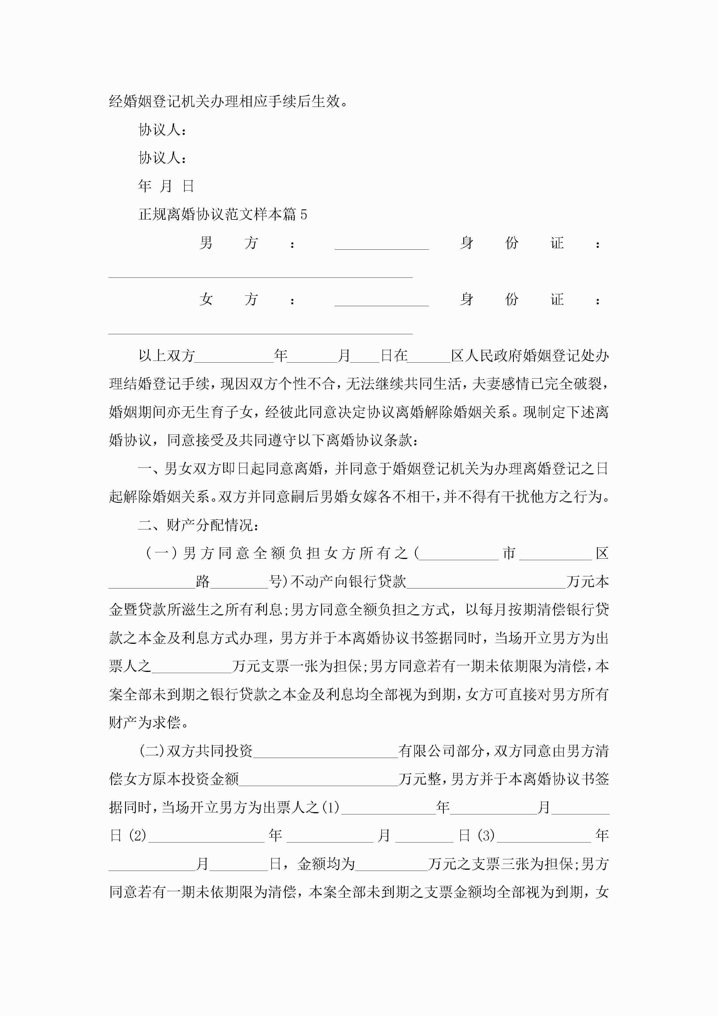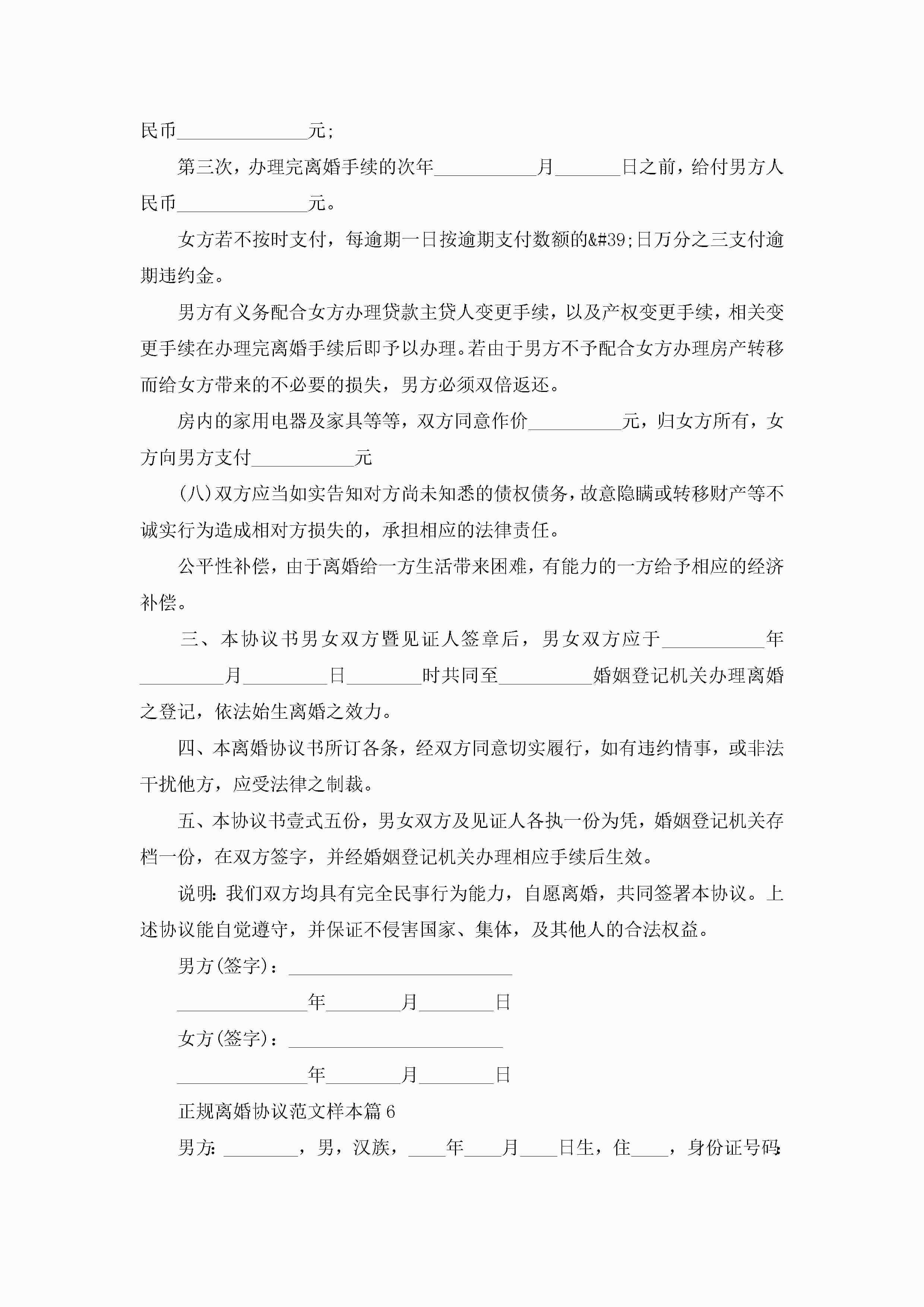 正规离婚协议范文样本(精选10篇)jugei3月22日 12:42更新关注208 正规离婚协议范文样本(精选10篇)此内容为付费资源,请付费后查看¥10.9 单篇文档限时特惠¥15个人会员开通企业会员开通立即下载无需登陆!可直接快捷下载单个模板付费资源© 版权声明THE ENDWord模板# 实用文档# 实用模板# 信函模板# 协议书 如有问题,可点击最底部“联系我们”联系客服 分享QQ空间微博QQ好友海报分享复制链接收藏