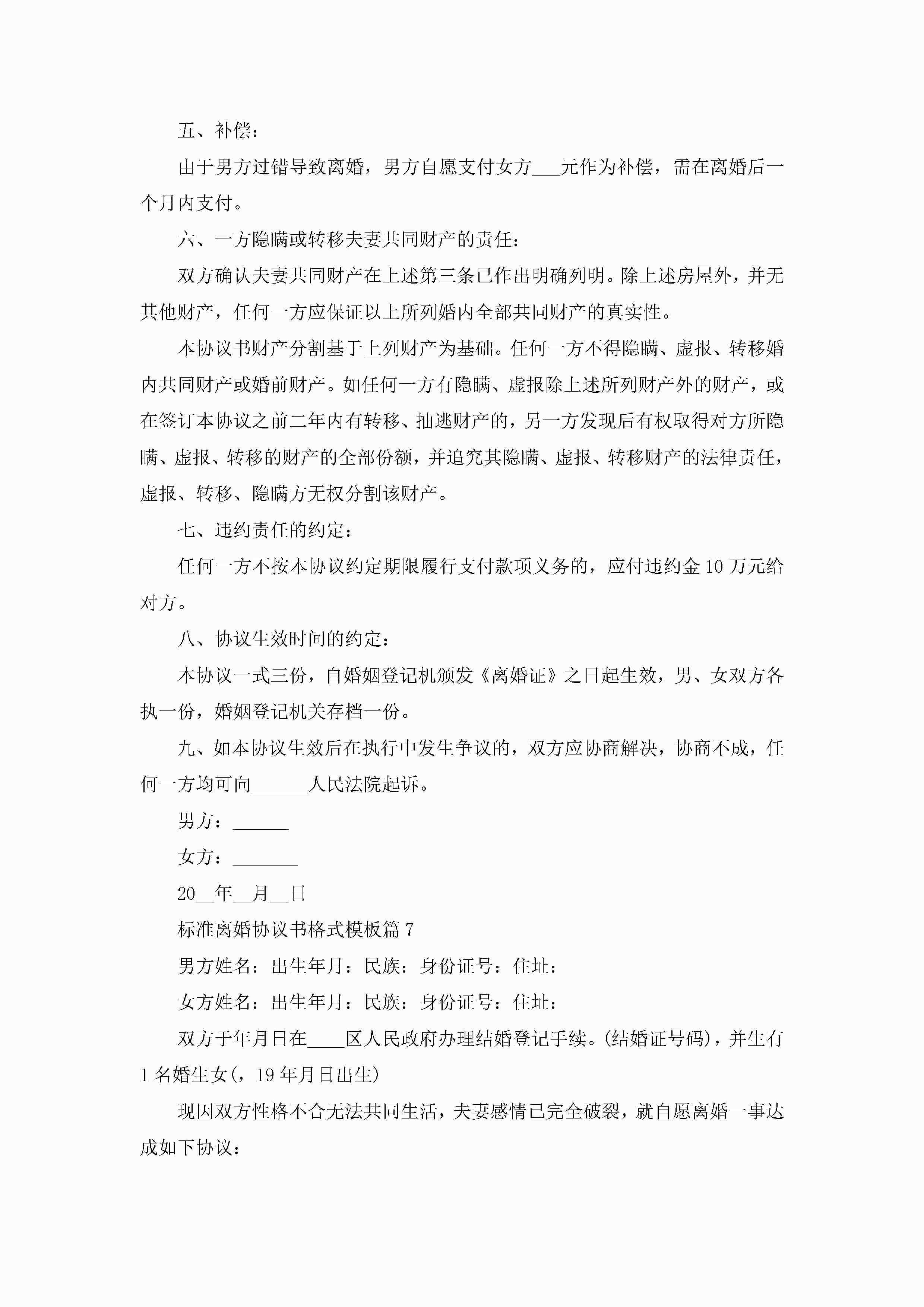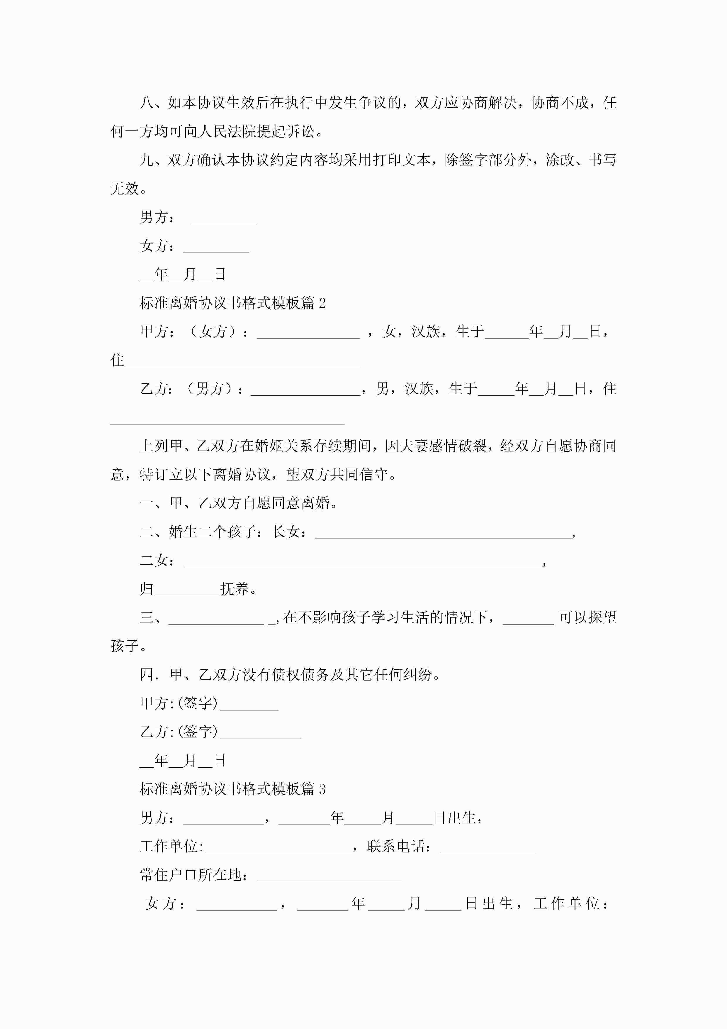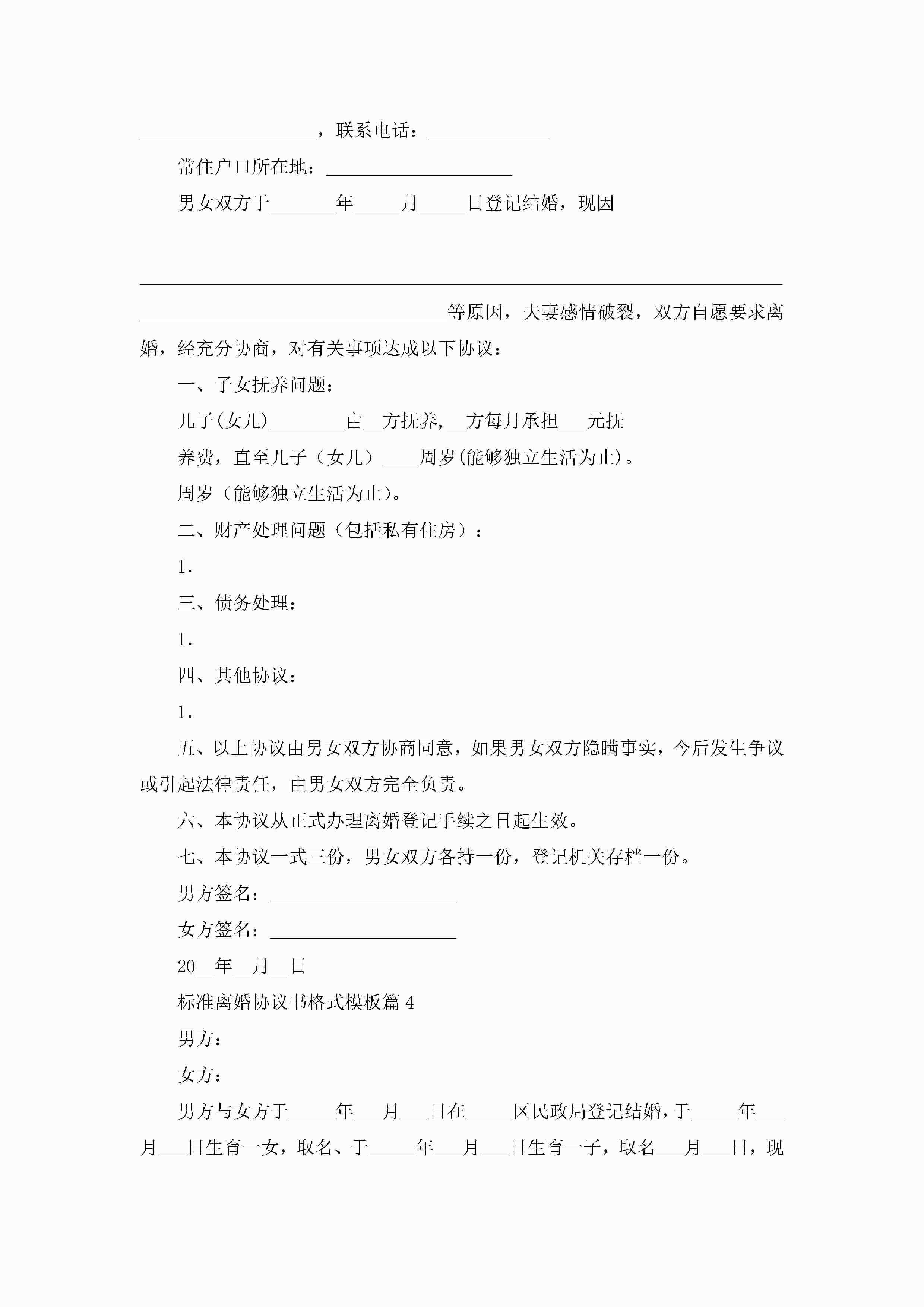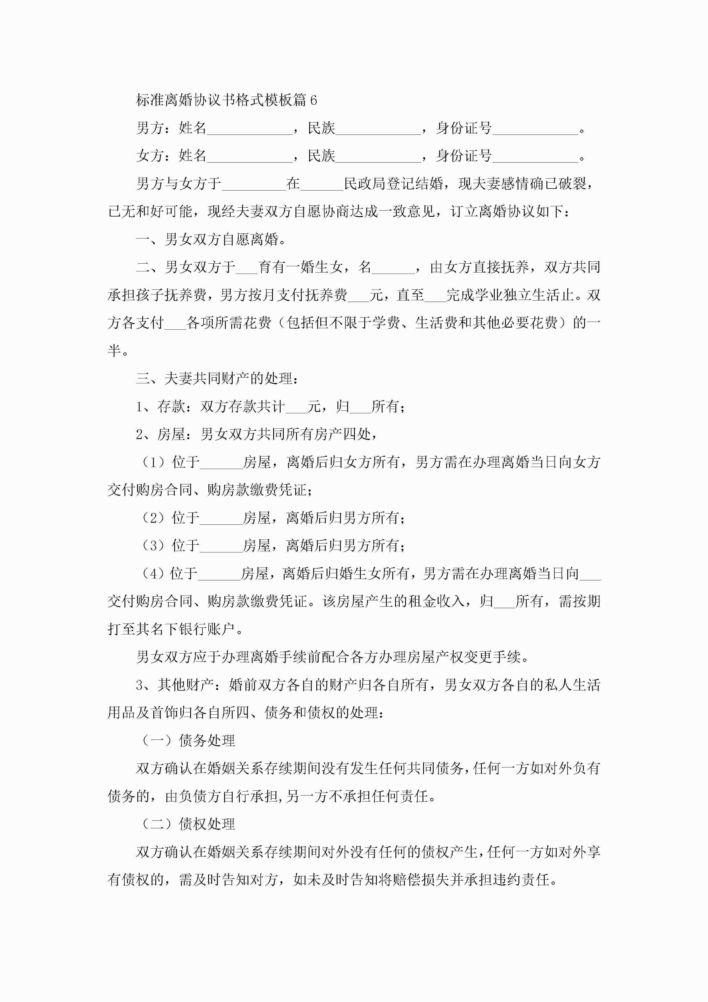 标准离婚协议书格式模板(精选10篇)jugei3月22日 12:42更新关注213 标准离婚协议书格式模板(精选10篇)此内容为付费资源,请付费后查看¥10.9 单篇文档限时特惠¥15个人会员开通企业会员开通立即下载无需登陆!可直接快捷下载单个模板付费资源© 版权声明THE ENDWord模板# 实用文档# 实用模板# 信函模板# 协议书 如有问题,可点击最底部“联系我们”联系客服 分享QQ空间微博QQ好友海报分享复制链接收藏