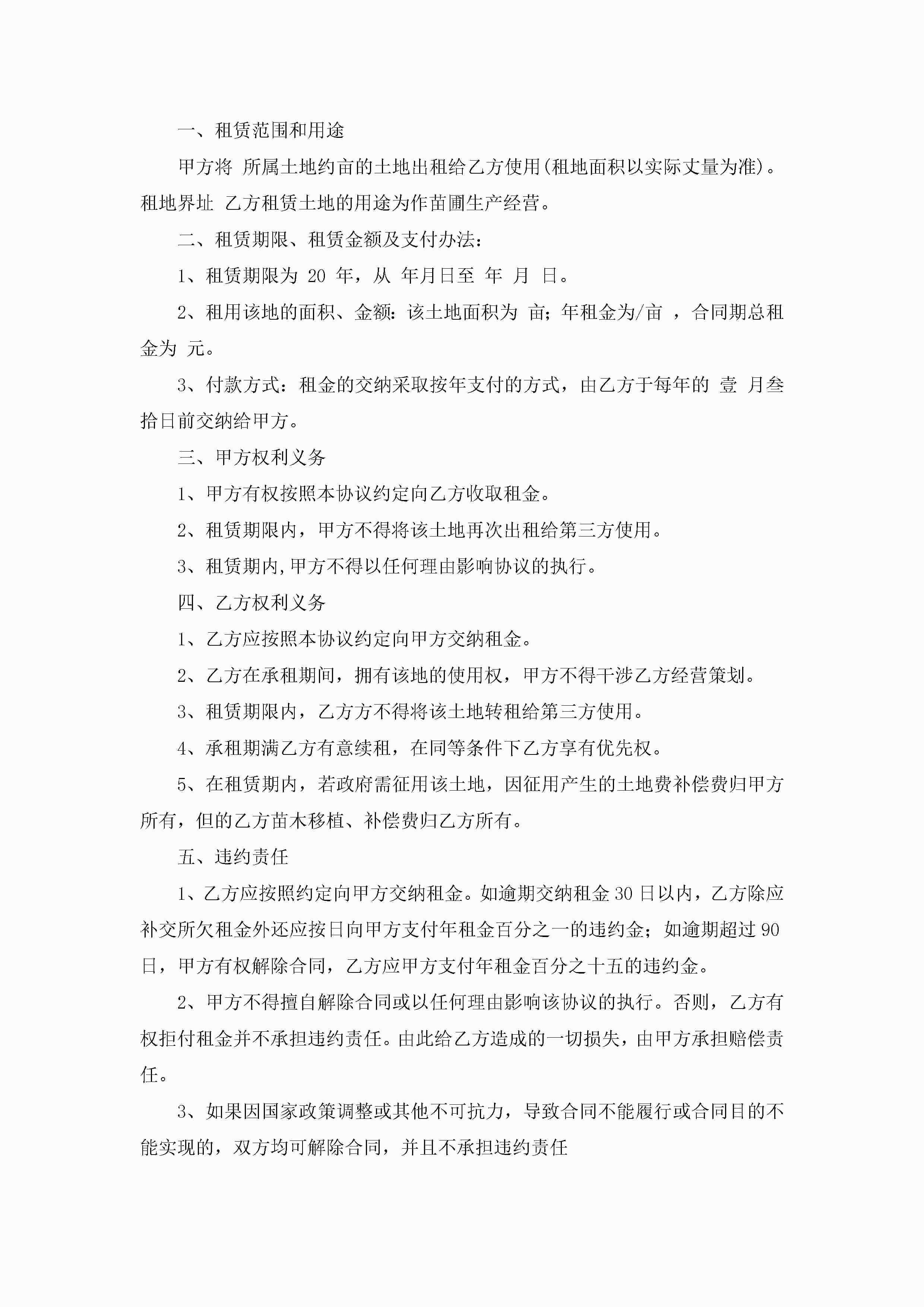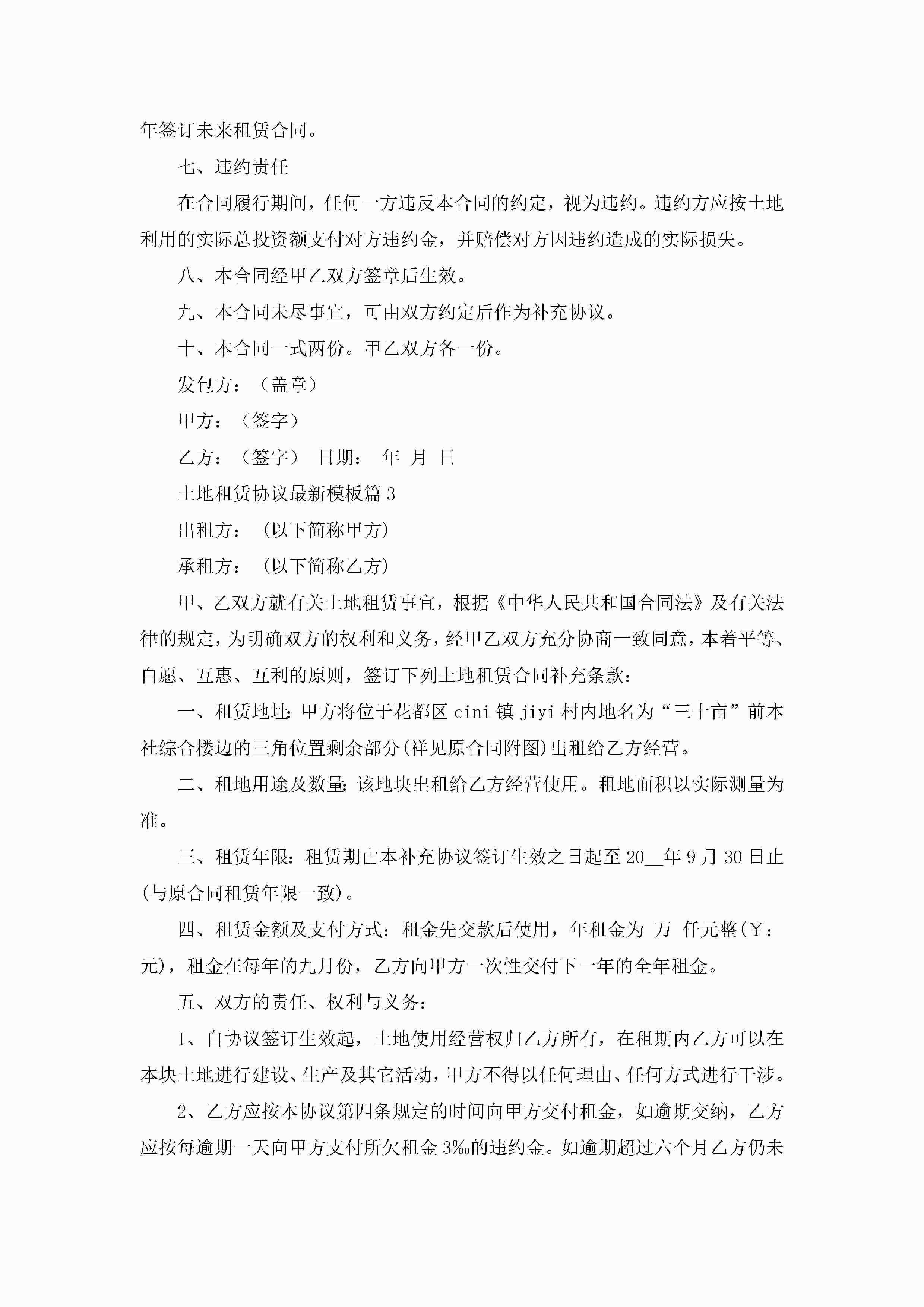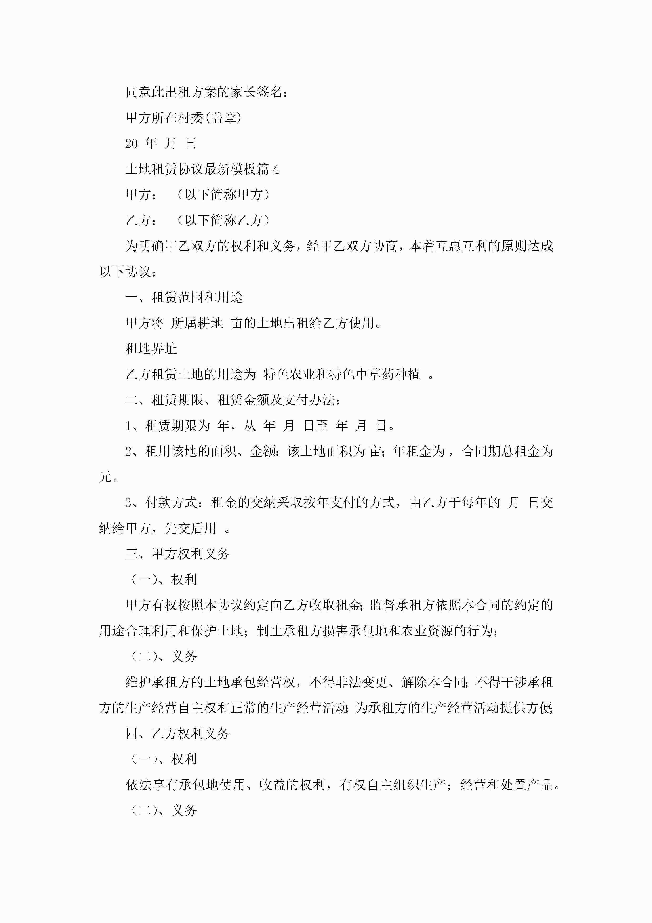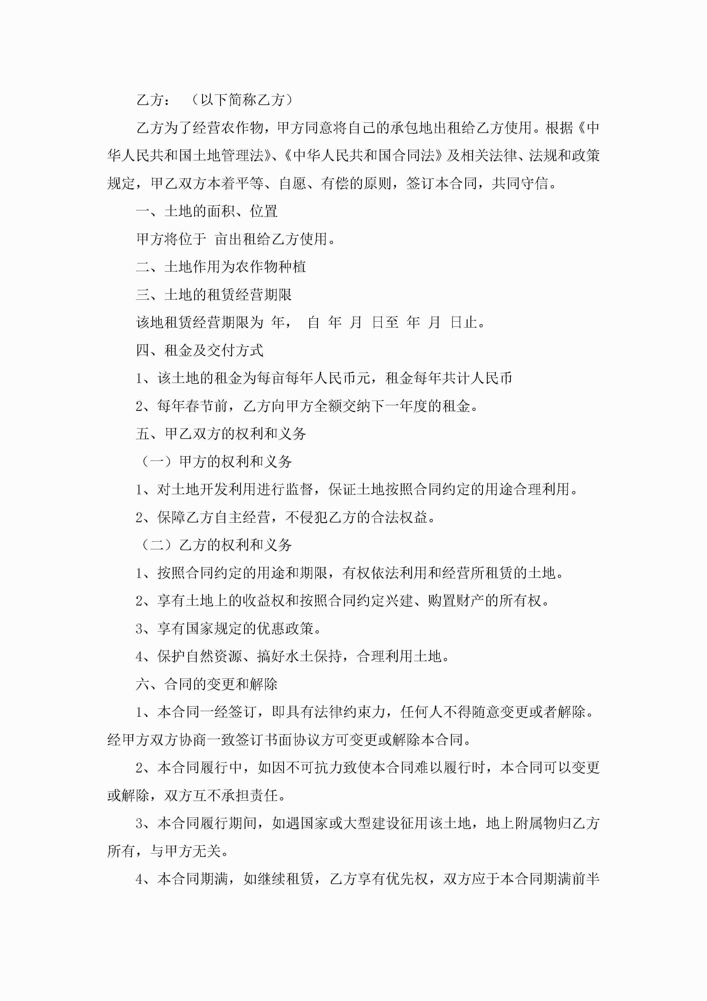 土地租赁协议最新模板(精选10篇)jugei3月22日 12:42更新关注229 土地租赁协议最新模板(精选10篇)此内容为付费资源,请付费后查看¥10.9 单篇文档限时特惠¥15个人会员开通企业会员开通立即下载无需登陆!可直接快捷下载单个模板付费资源© 版权声明THE ENDWord模板# 实用文档# 实用模板# 信函模板# 协议书 如有问题,可点击最底部“联系我们”联系客服 分享QQ空间微博QQ好友海报分享复制链接收藏