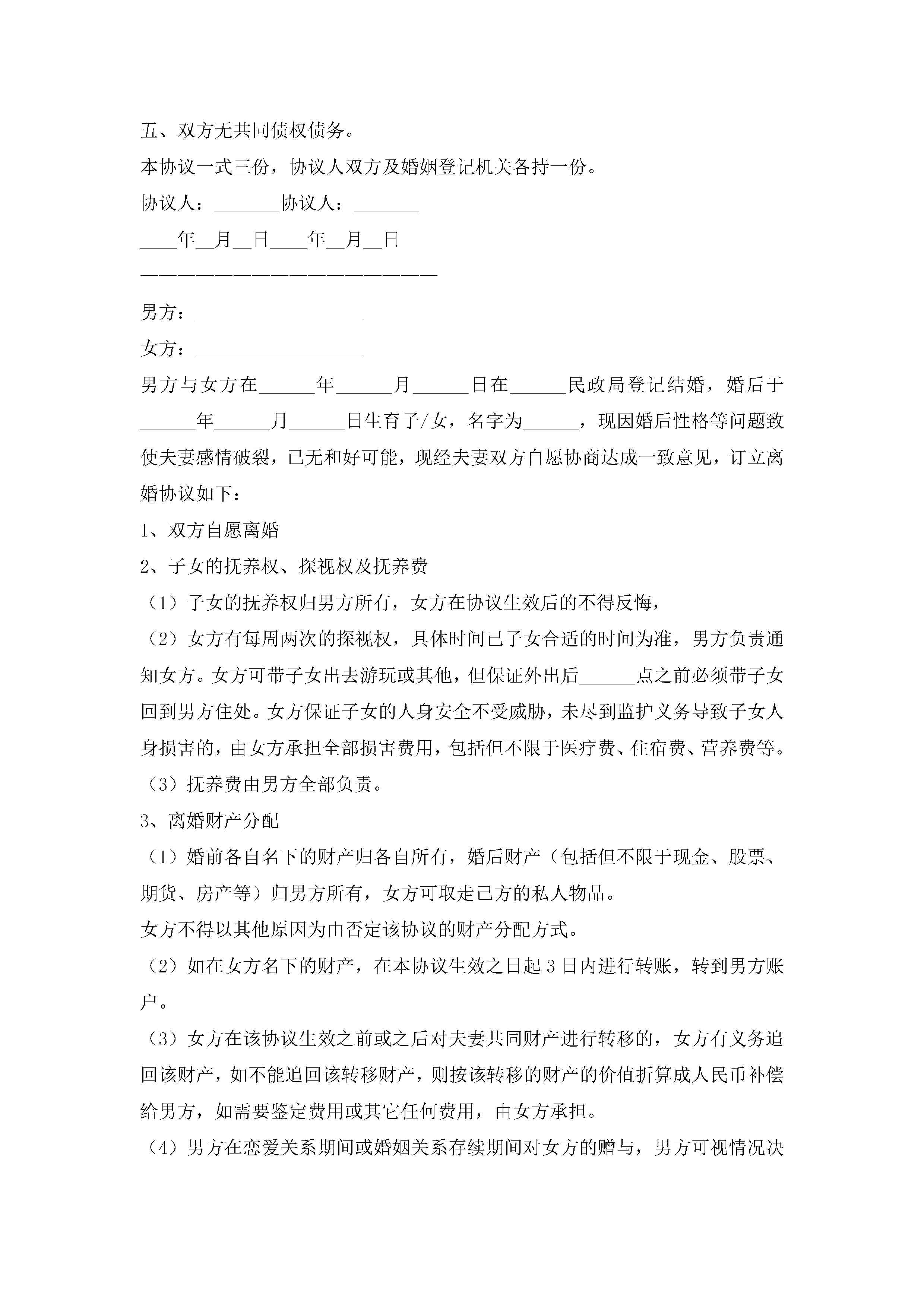 夫妻双方离婚协议书怎么写(10篇)jugei3月22日 12:42更新关注210 夫妻双方离婚协议书怎么写(10篇)此内容为付费资源,请付费后查看¥10.9 单篇文档限时特惠¥15个人会员开通企业会员开通立即下载无需登陆!可直接快捷下载单个模板付费资源© 版权声明THE ENDWord模板# 实用文档# 实用模板# 信函模板# 协议书 如有问题,可点击最底部“联系我们”联系客服 分享QQ空间微博QQ好友海报分享复制链接收藏
