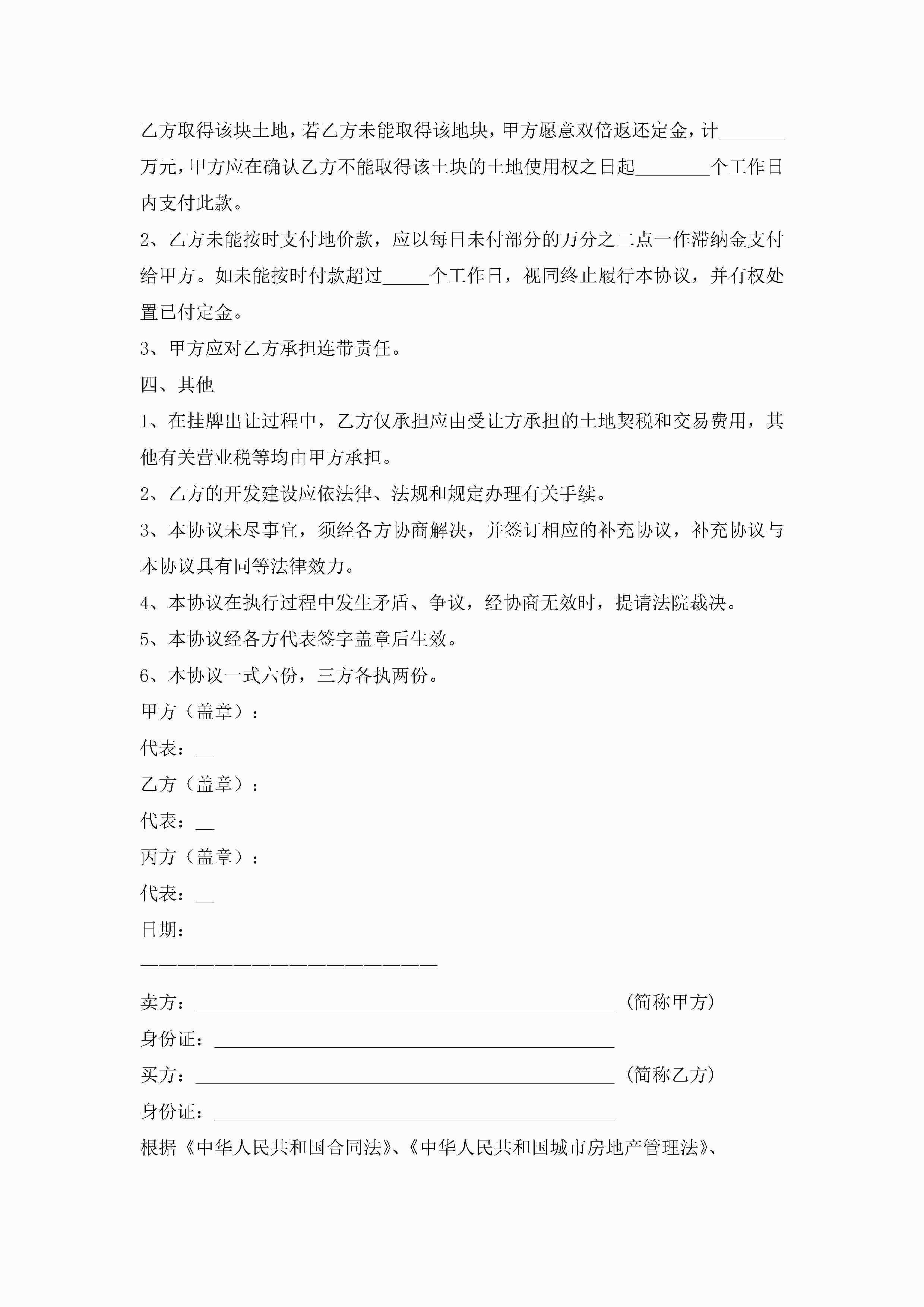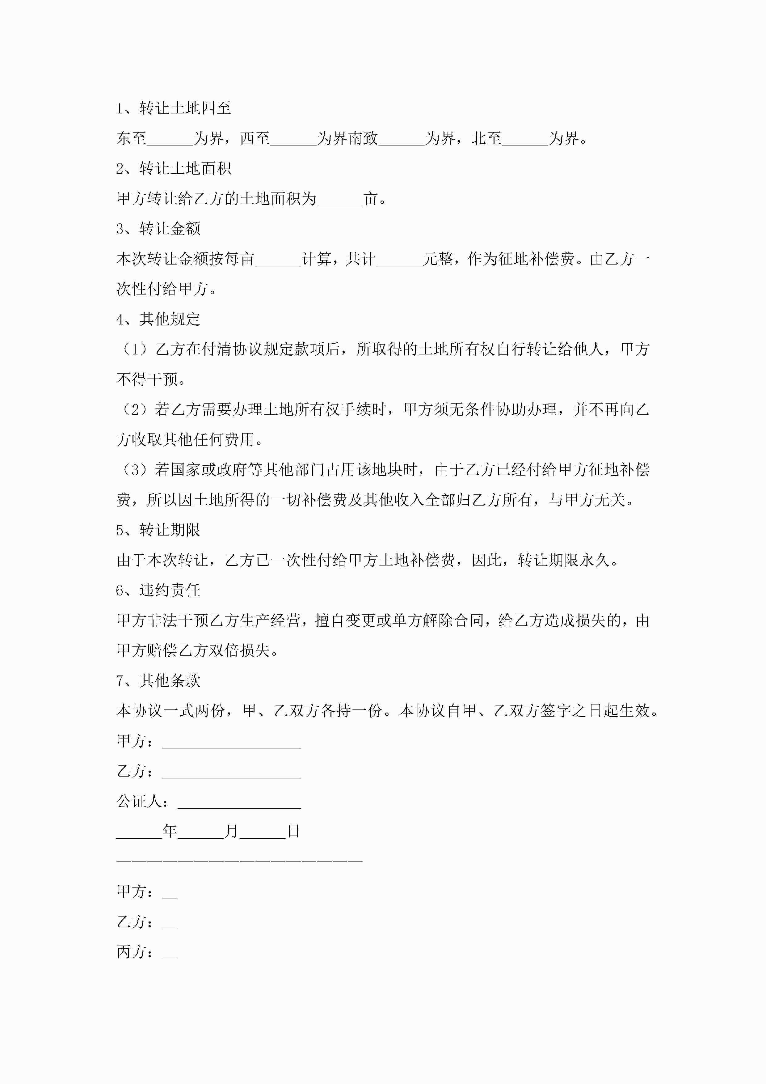 土地转让协议书模板(精选10篇)jugei3月22日 12:42更新关注236 土地转让协议书模板(精选10篇)此内容为付费资源,请付费后查看¥10.9 单篇文档限时特惠¥15个人会员开通企业会员开通立即下载无需登陆!可直接快捷下载单个模板付费资源© 版权声明THE ENDWord模板# 实用文档# 实用模板# 信函模板# 协议书 如有问题,可点击最底部“联系我们”联系客服 分享QQ空间微博QQ好友海报分享复制链接收藏