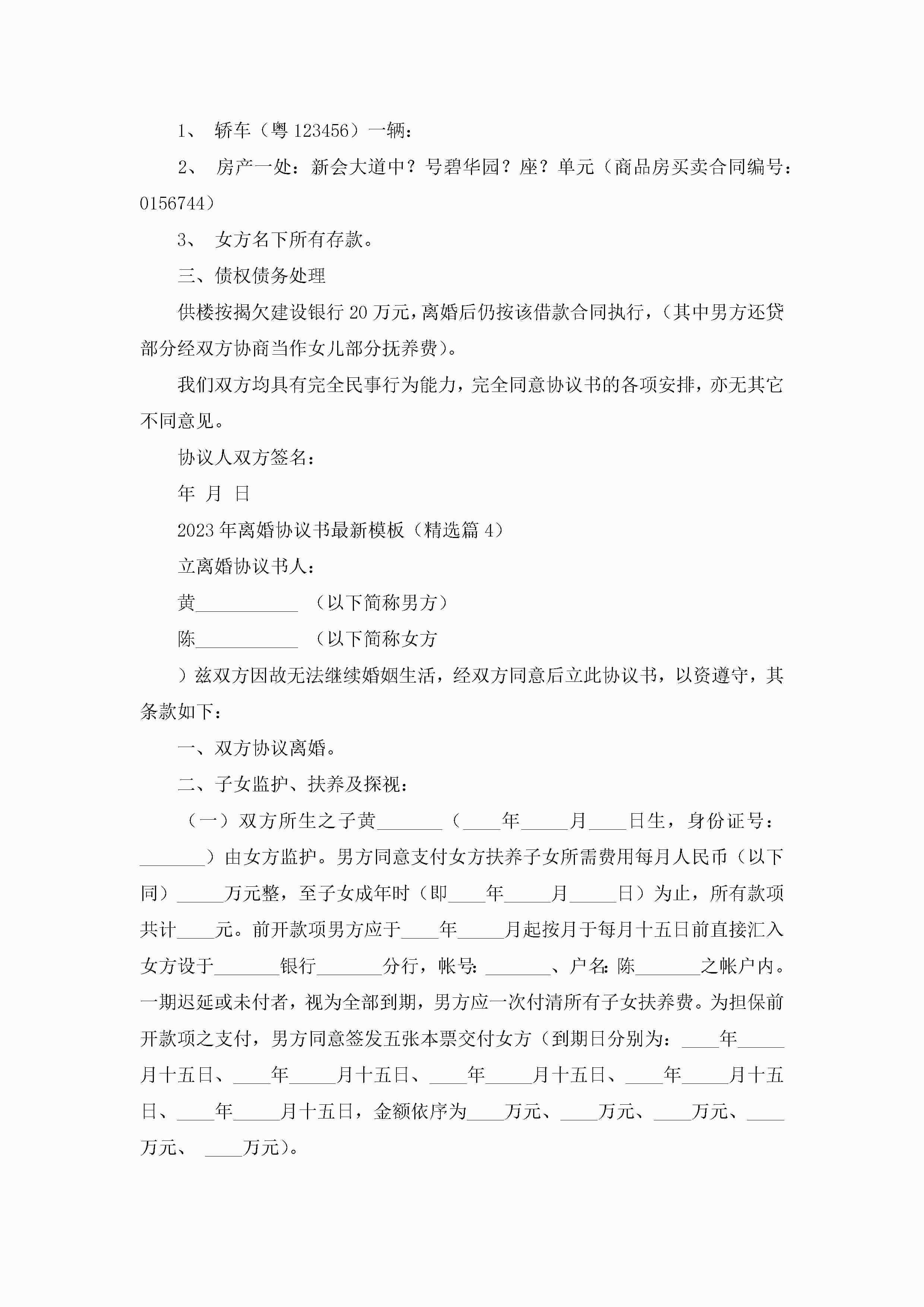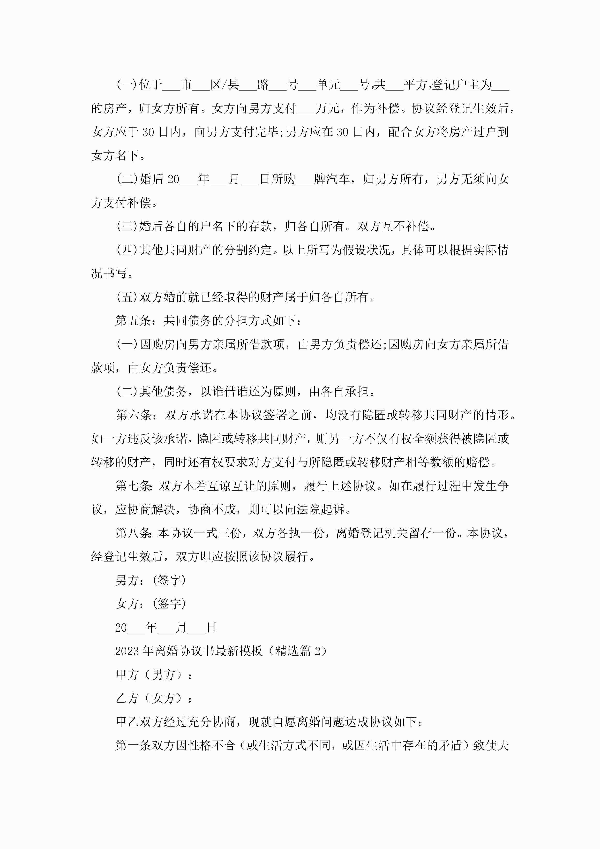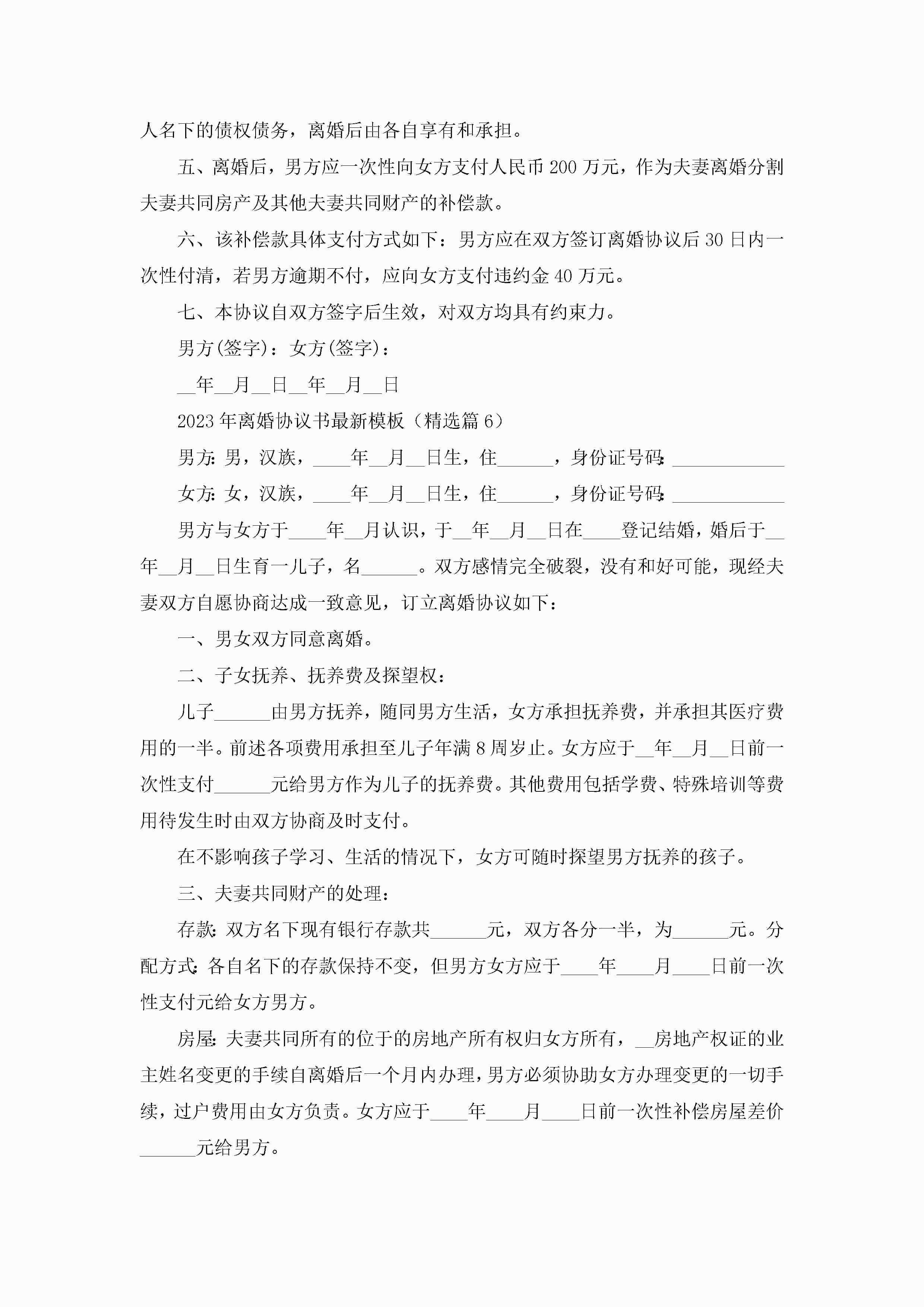 2023年离婚协议书最新模板(10篇)jugei3月22日 12:42更新关注305 2023年离婚协议书最新模板(10篇)此内容为付费资源,请付费后查看¥10.9 单篇文档限时特惠¥15个人会员开通企业会员开通立即下载无需登陆!可直接快捷下载单个模板付费资源© 版权声明THE ENDWord模板# 实用文档# 实用模板# 信函模板# 协议书 如有问题,可点击最底部“联系我们”联系客服 分享QQ空间微博QQ好友海报分享复制链接收藏