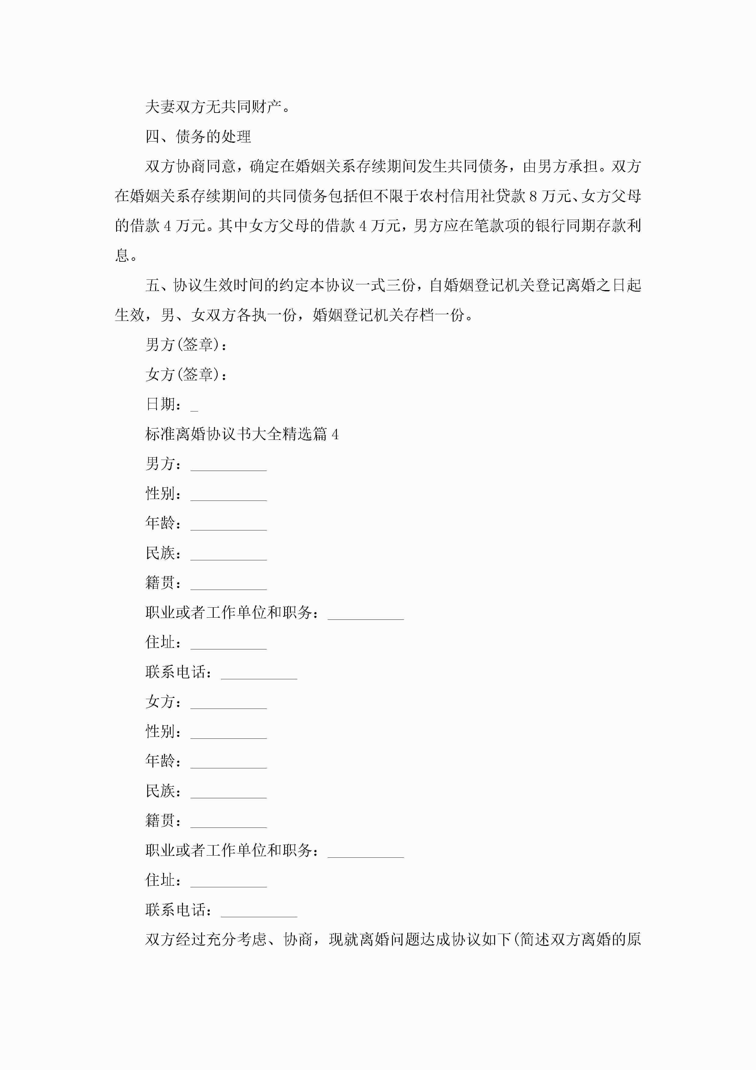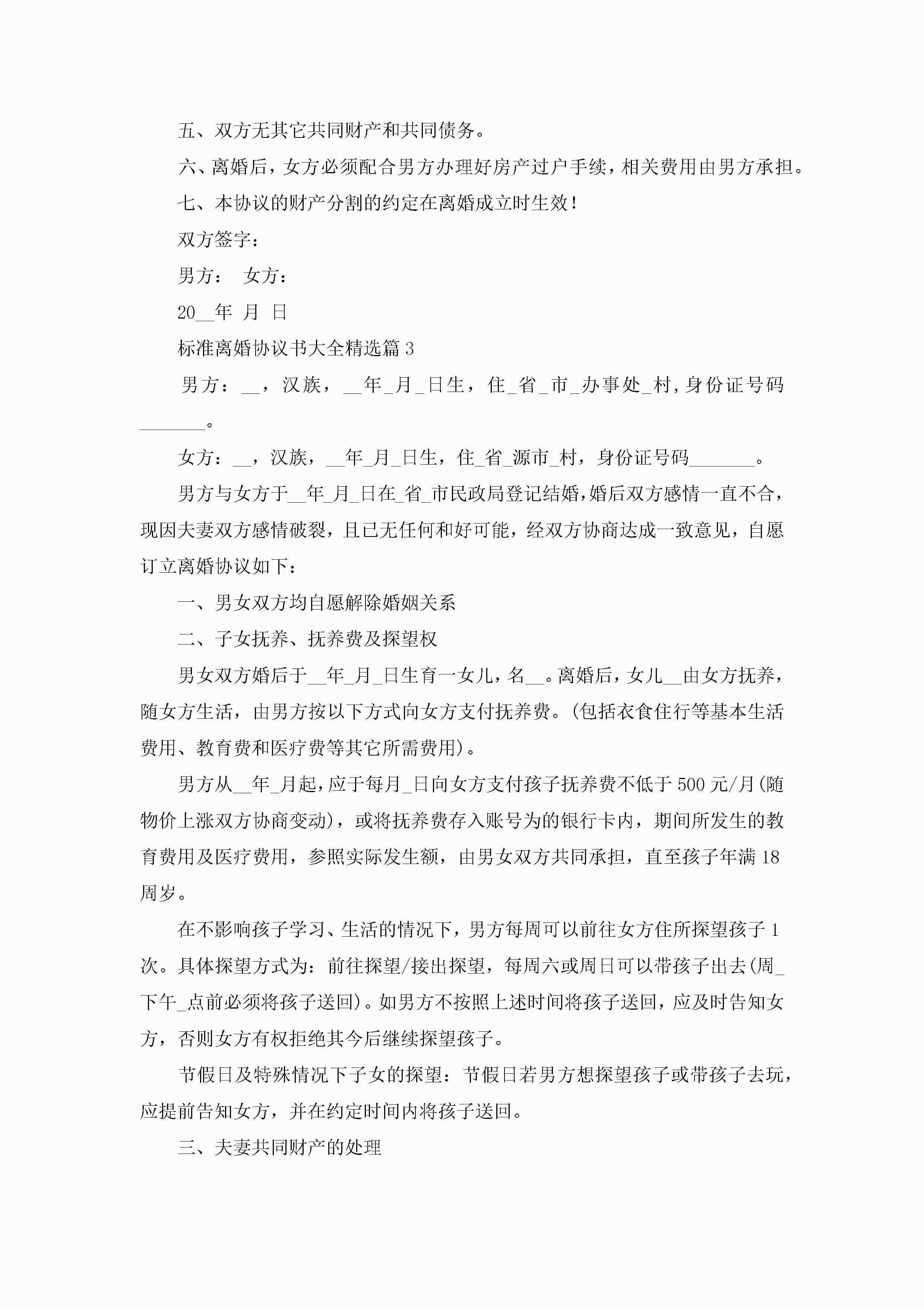 标准离婚协议书大全(11篇)jugei3月22日 12:42更新关注189 标准离婚协议书大全(11篇)此内容为付费资源,请付费后查看¥10.9 单篇文档限时特惠¥15个人会员开通企业会员开通立即下载无需登陆!可直接快捷下载单个模板付费资源© 版权声明THE ENDWord模板# 实用文档# 实用模板# 信函模板# 协议书 如有问题,可点击最底部“联系我们”联系客服 分享QQ空间微博QQ好友海报分享复制链接收藏