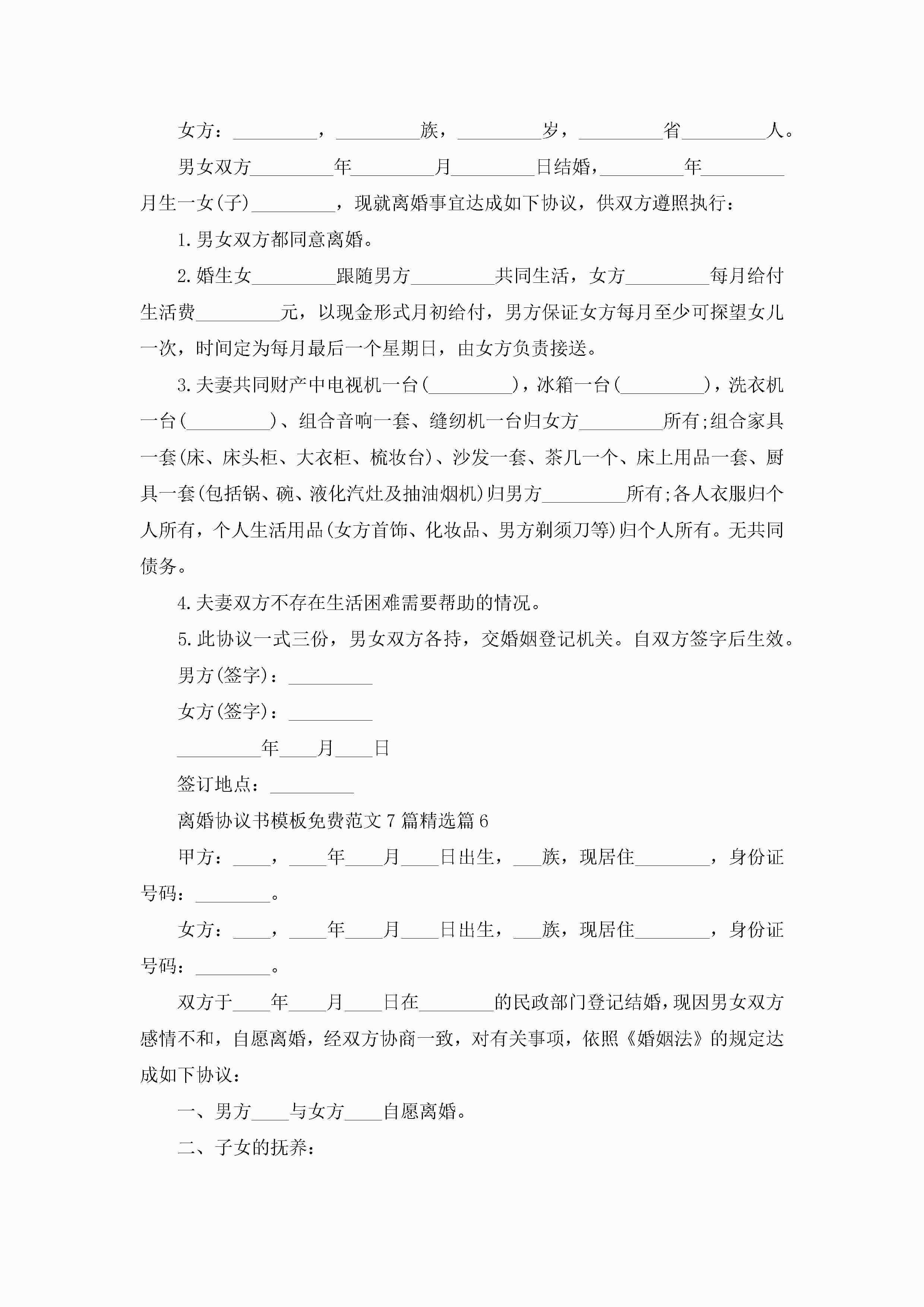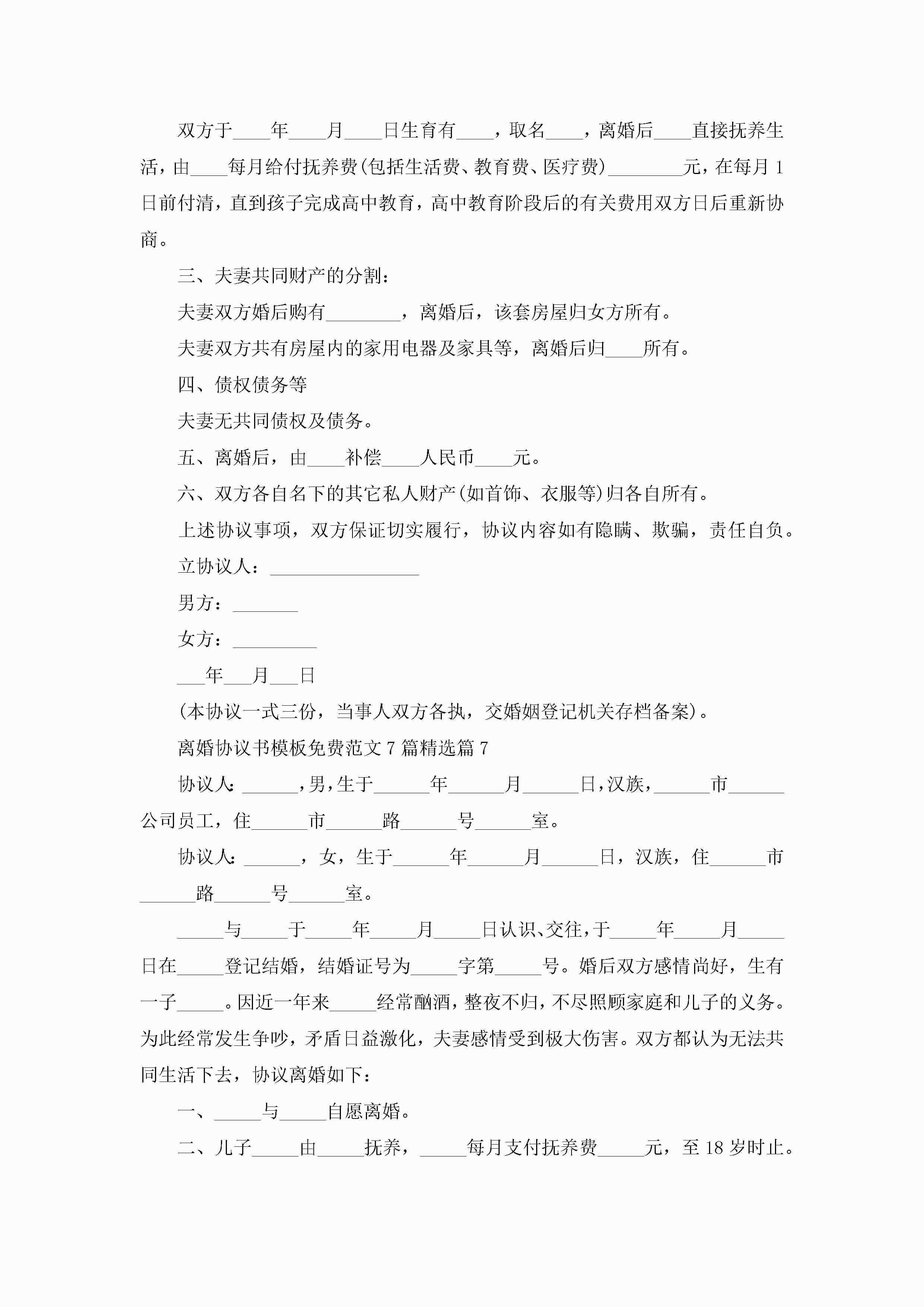 离婚协议书模板免费范文(7篇)jugei3月22日 12:42更新关注217 离婚协议书模板免费范文(7篇)此内容为付费资源,请付费后查看¥10.9 单篇文档限时特惠¥15个人会员开通企业会员开通立即下载无需登陆!可直接快捷下载单个模板付费资源© 版权声明THE ENDWord模板# 实用文档# 实用模板# 信函模板# 协议书 如有问题,可点击最底部“联系我们”联系客服 分享QQ空间微博QQ好友海报分享复制链接收藏