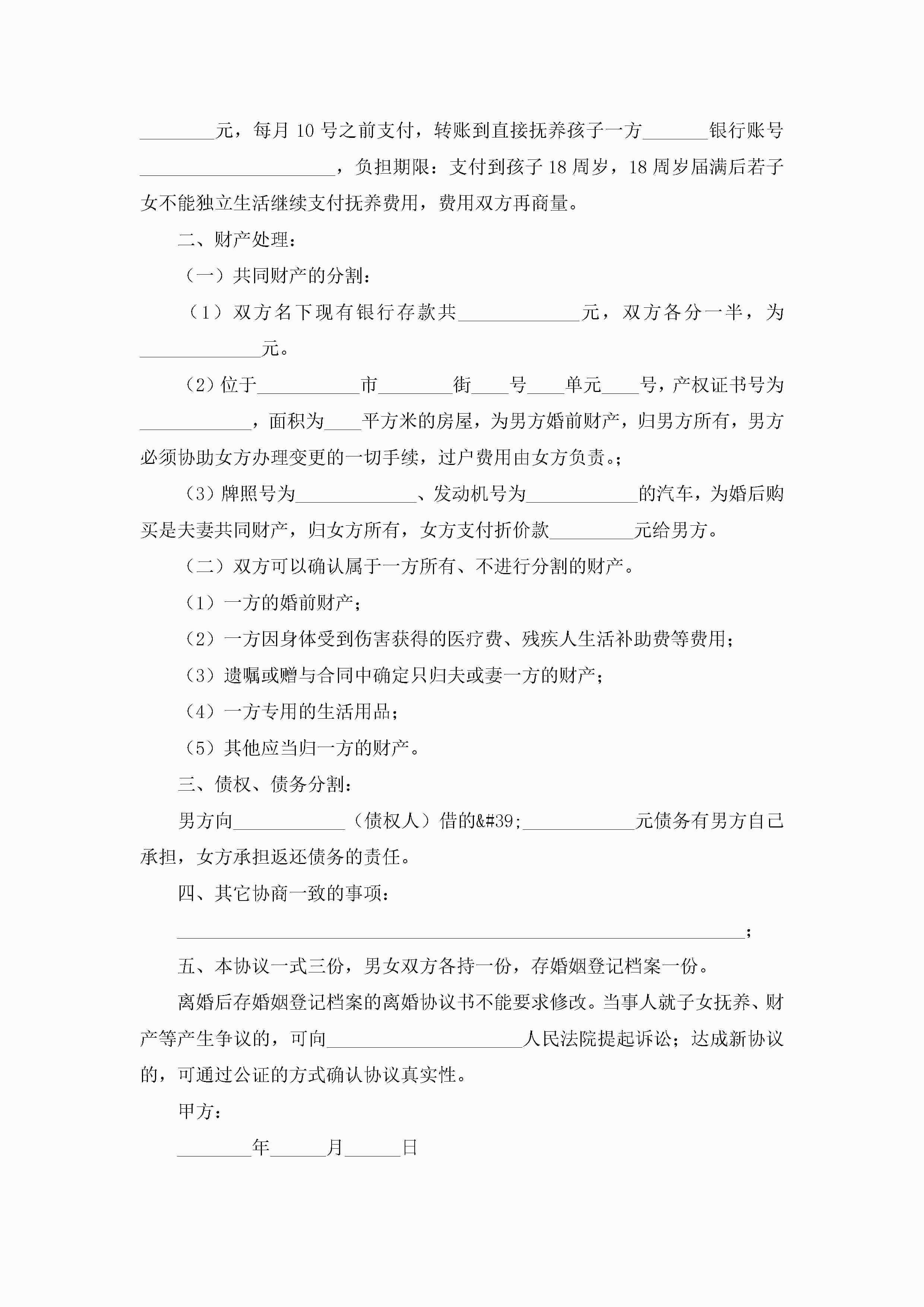 离婚协议书通用模板【通用8篇】jugei3月22日 12:42更新关注216 离婚协议书通用模板【通用8篇】此内容为付费资源,请付费后查看¥10.9 单篇文档限时特惠¥15个人会员开通企业会员开通立即下载无需登陆!可直接快捷下载单个模板付费资源© 版权声明THE ENDWord模板# 实用文档# 实用模板# 信函模板# 协议书 如有问题,可点击最底部“联系我们”联系客服 分享QQ空间微博QQ好友海报分享复制链接收藏