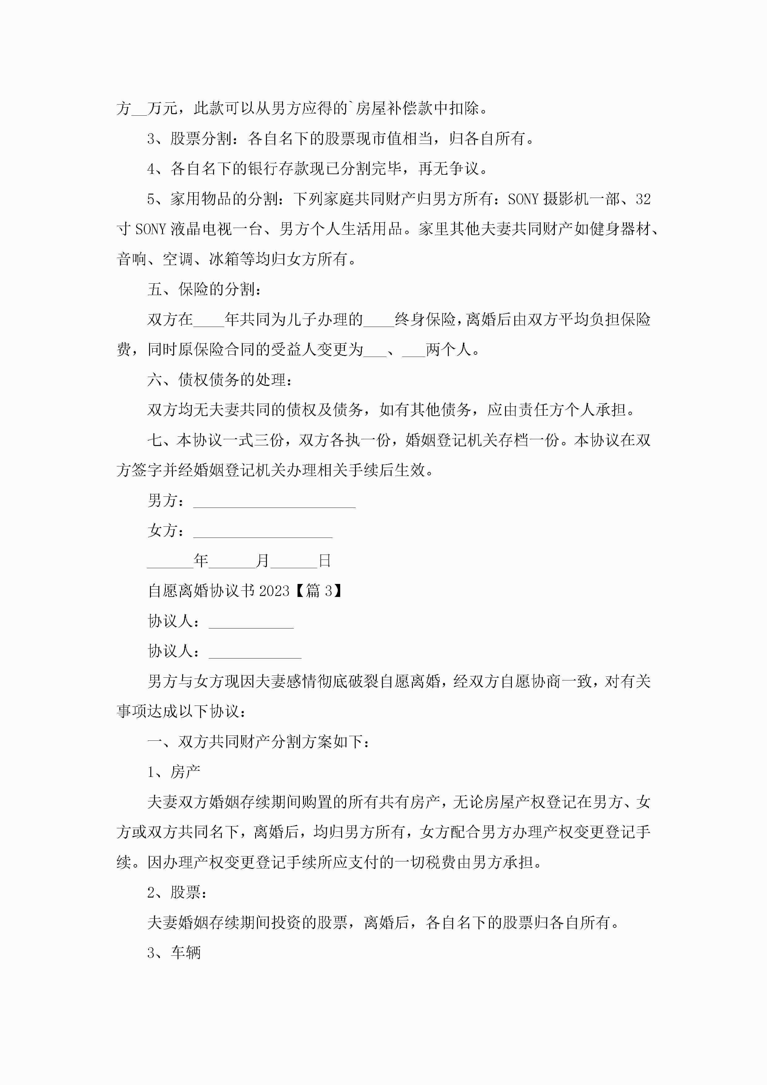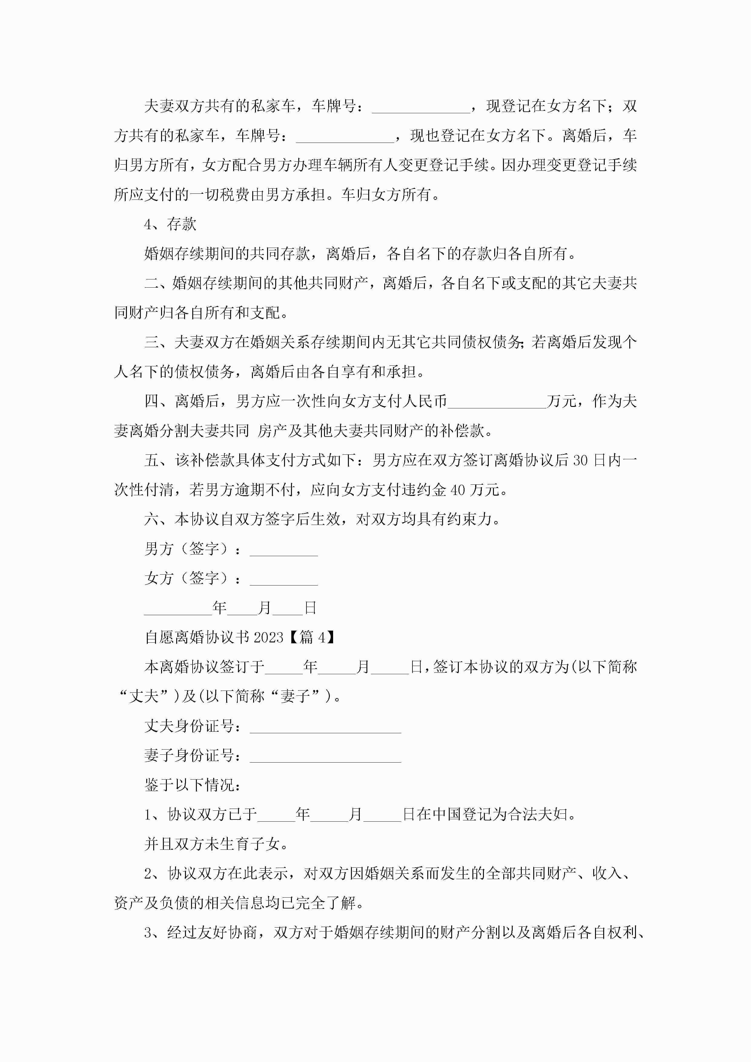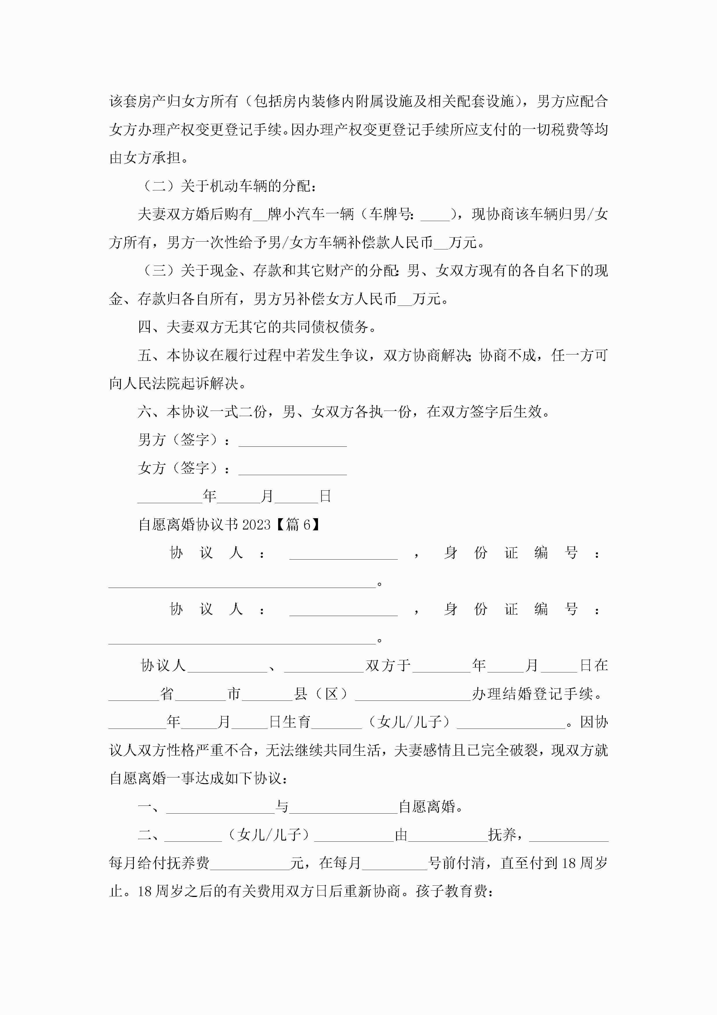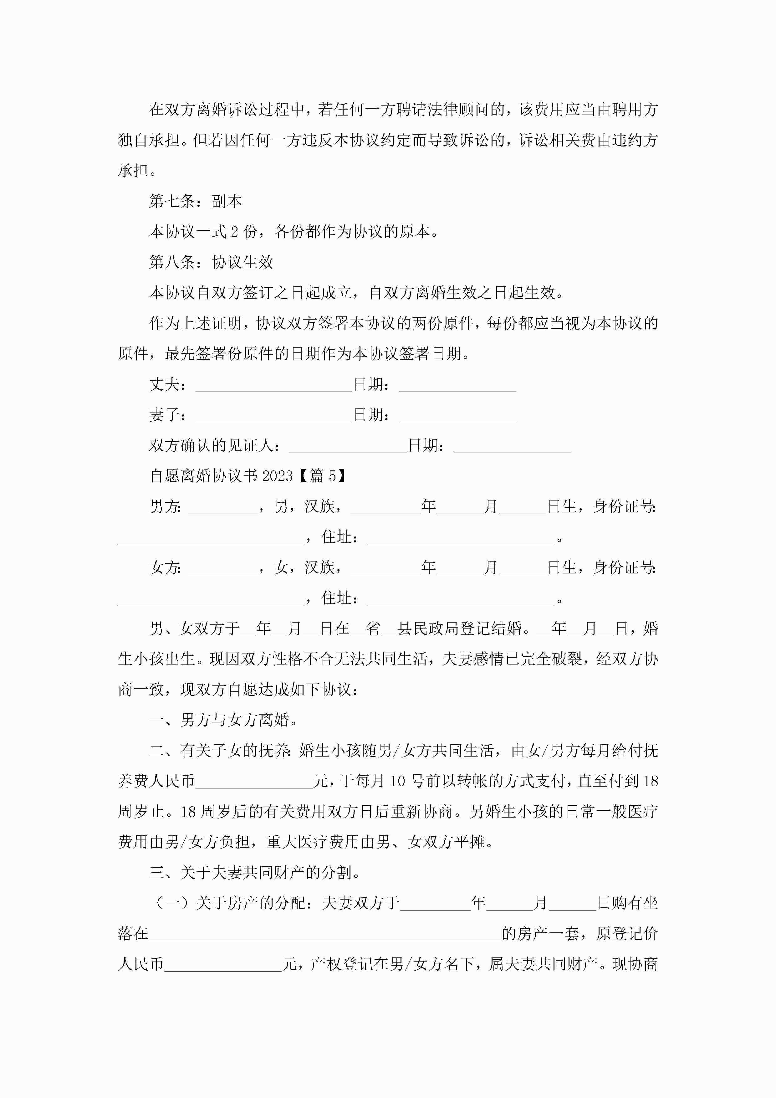 自愿离婚协议书七篇jugei3月22日 12:42更新关注199 自愿离婚协议书七篇此内容为付费资源,请付费后查看¥10.9 单篇文档限时特惠¥15个人会员开通企业会员开通立即下载无需登陆!可直接快捷下载单个模板付费资源© 版权声明THE ENDWord模板# 实用文档# 实用模板# 信函模板# 协议书 如有问题,可点击最底部“联系我们”联系客服 分享QQ空间微博QQ好友海报分享复制链接收藏