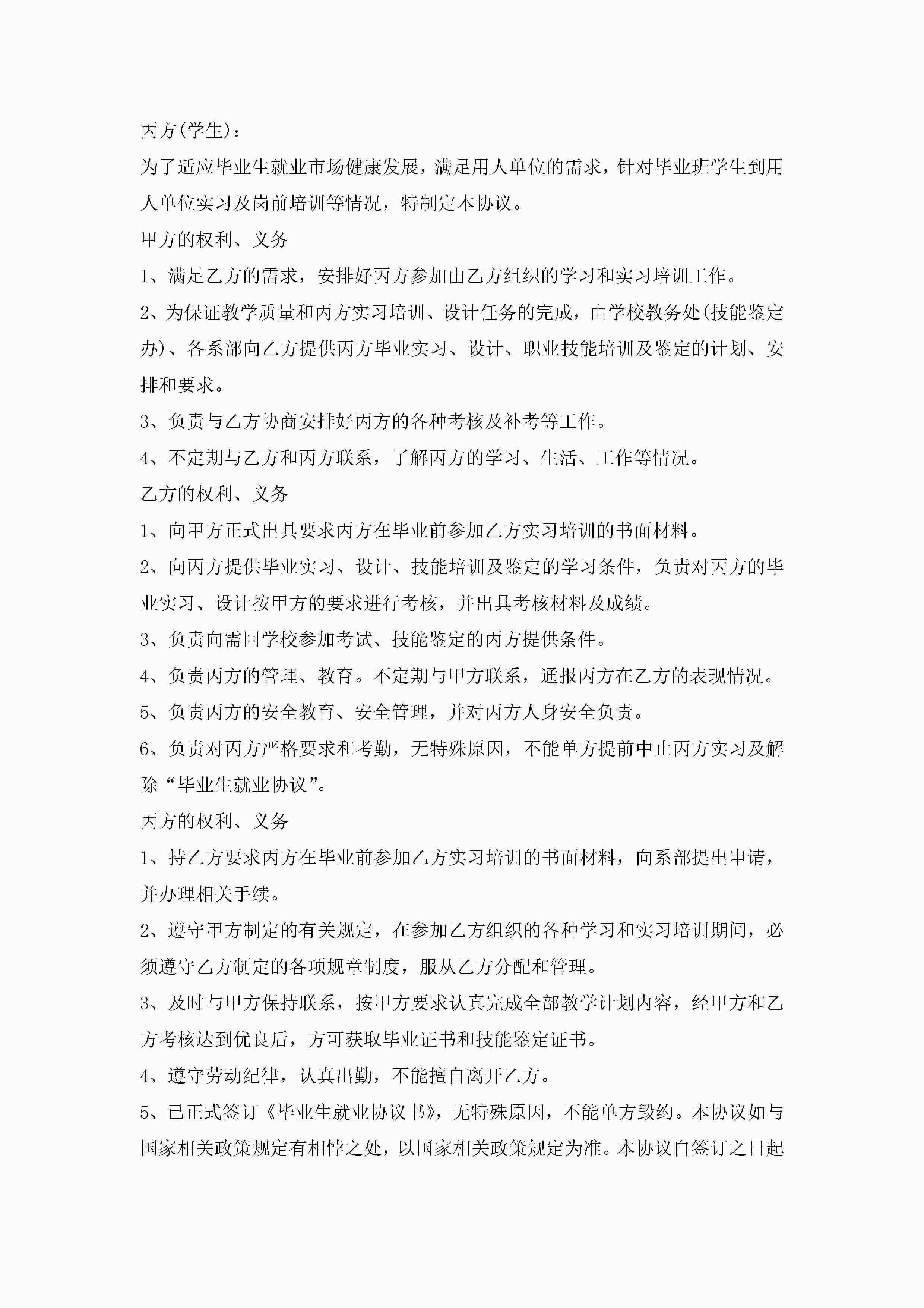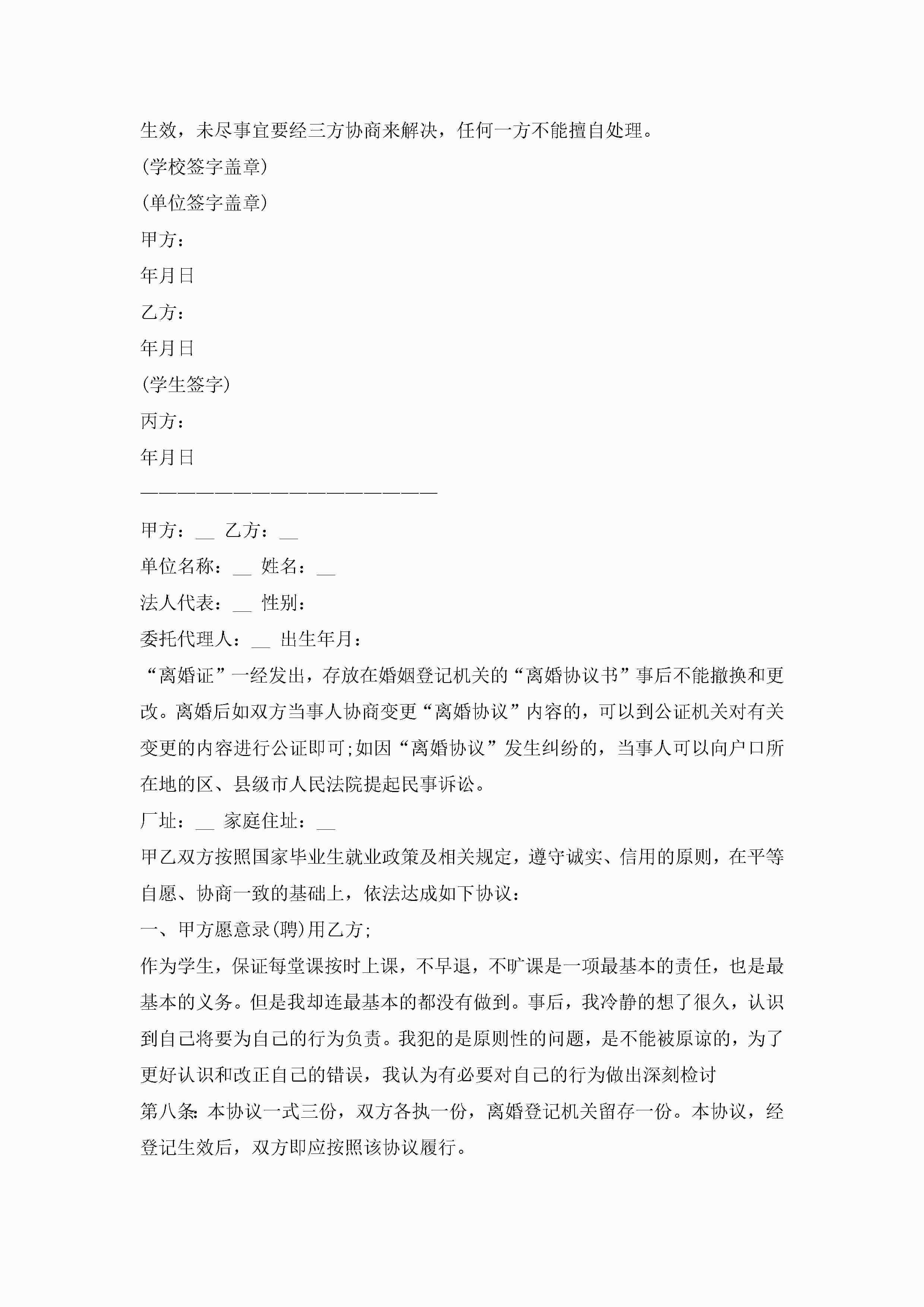 大学生毕业就业协议书模板(精选10篇)jugei3月22日 12:42更新关注191 大学生毕业就业协议书模板(精选10篇)此内容为付费资源,请付费后查看¥10.9 单篇文档限时特惠¥15个人会员开通企业会员开通立即下载无需登陆!可直接快捷下载单个模板付费资源© 版权声明THE ENDWord模板# 实用文档# 实用模板# 信函模板# 协议书 如有问题,可点击最底部“联系我们”联系客服 分享QQ空间微博QQ好友海报分享复制链接收藏