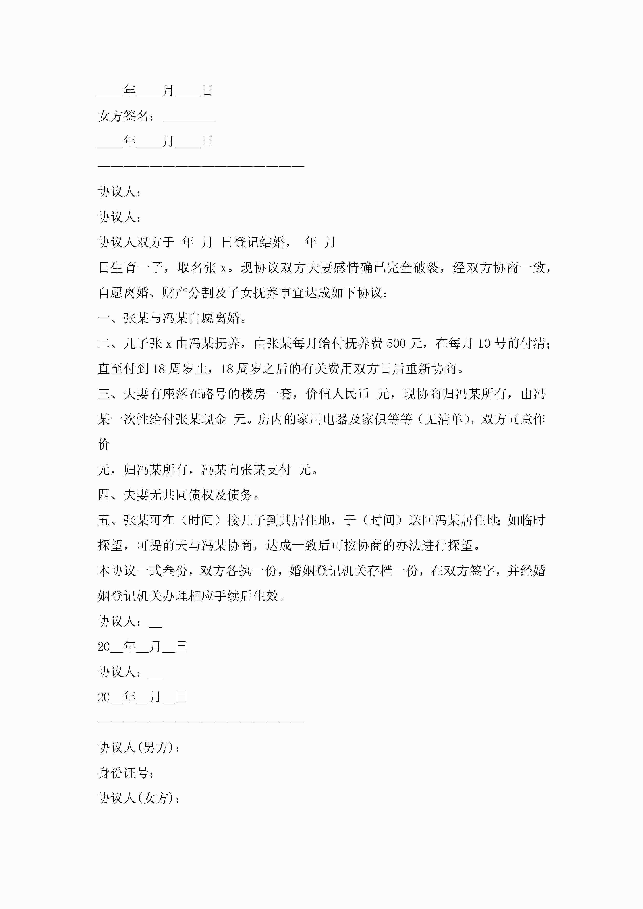 正规离婚协议书范文模板(精选10篇)jugei3月22日 12:42更新关注217 正规离婚协议书范文模板(精选10篇)此内容为付费资源,请付费后查看¥10.9 单篇文档限时特惠¥15个人会员开通企业会员开通立即下载无需登陆!可直接快捷下载单个模板付费资源© 版权声明THE ENDWord模板# 实用文档# 实用模板# 信函模板# 协议书 如有问题,可点击最底部“联系我们”联系客服 分享QQ空间微博QQ好友海报分享复制链接收藏