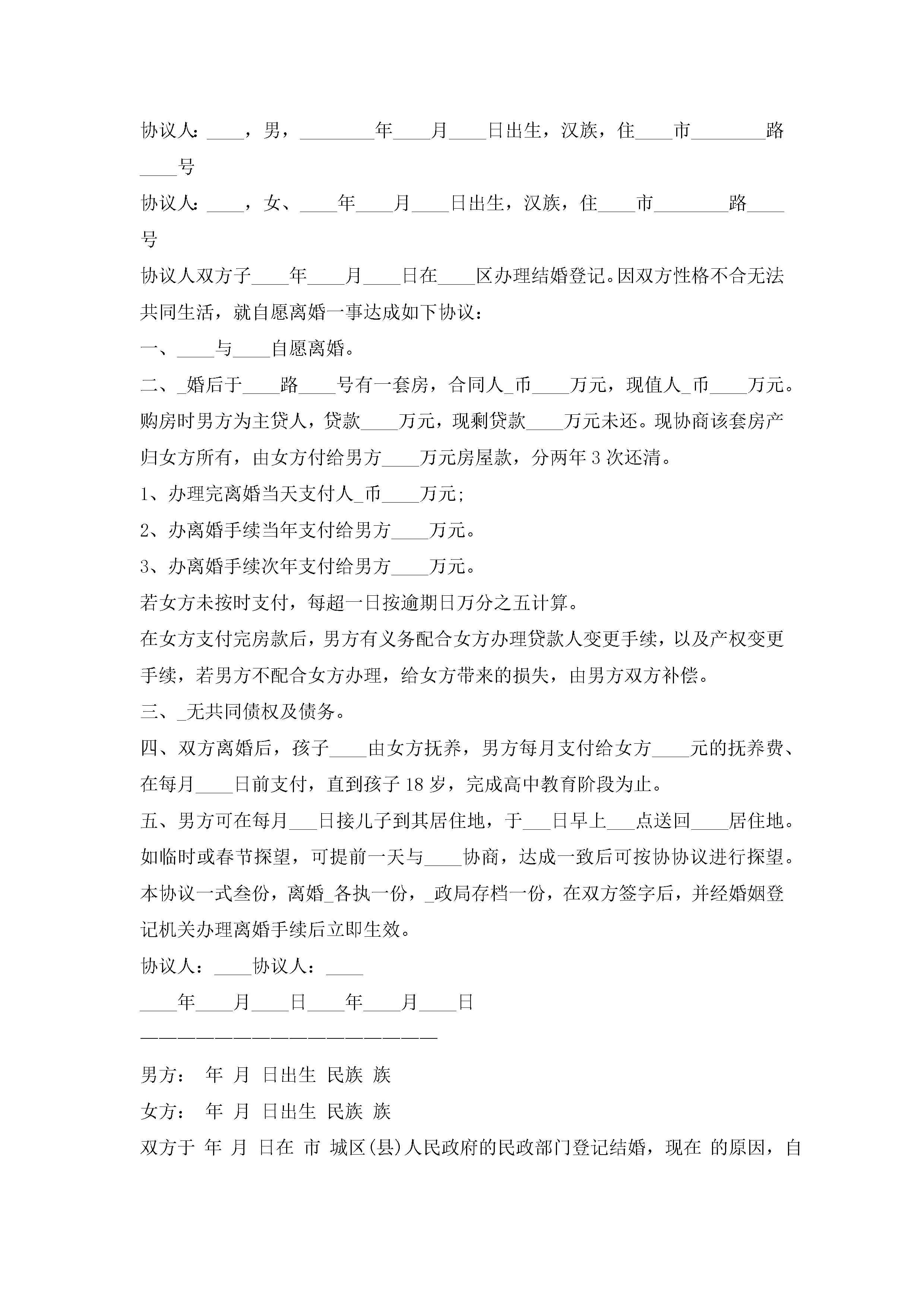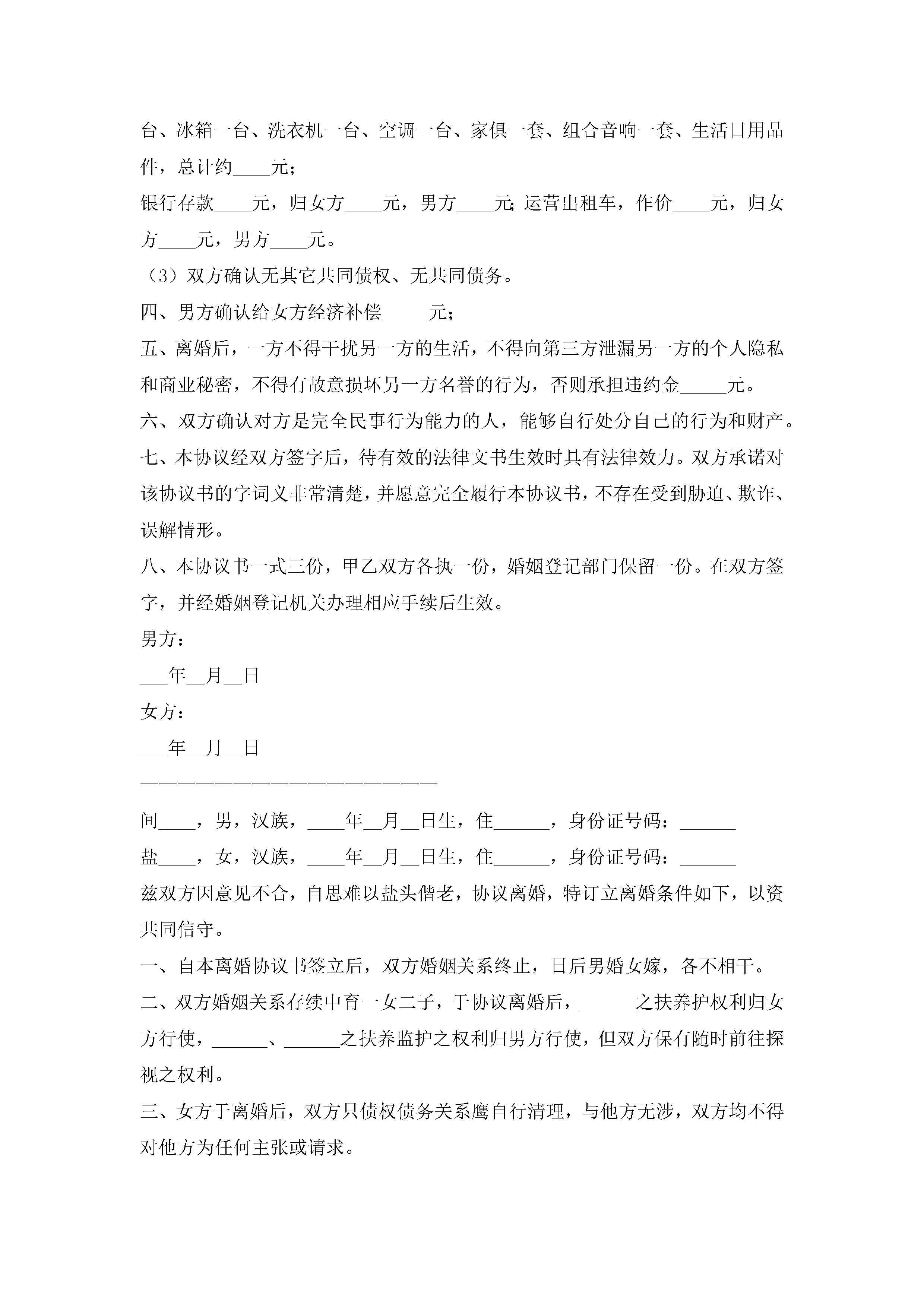 离婚协议书范本(8篇)jugei3月22日 12:42更新关注194 离婚协议书范本(8篇)此内容为付费资源,请付费后查看¥10.9 单篇文档限时特惠¥15个人会员开通企业会员开通立即下载无需登陆!可直接快捷下载单个模板付费资源© 版权声明THE ENDWord模板# 实用文档# 实用模板# 信函模板# 协议书 如有问题,可点击最底部“联系我们”联系客服 分享QQ空间微博QQ好友海报分享复制链接收藏