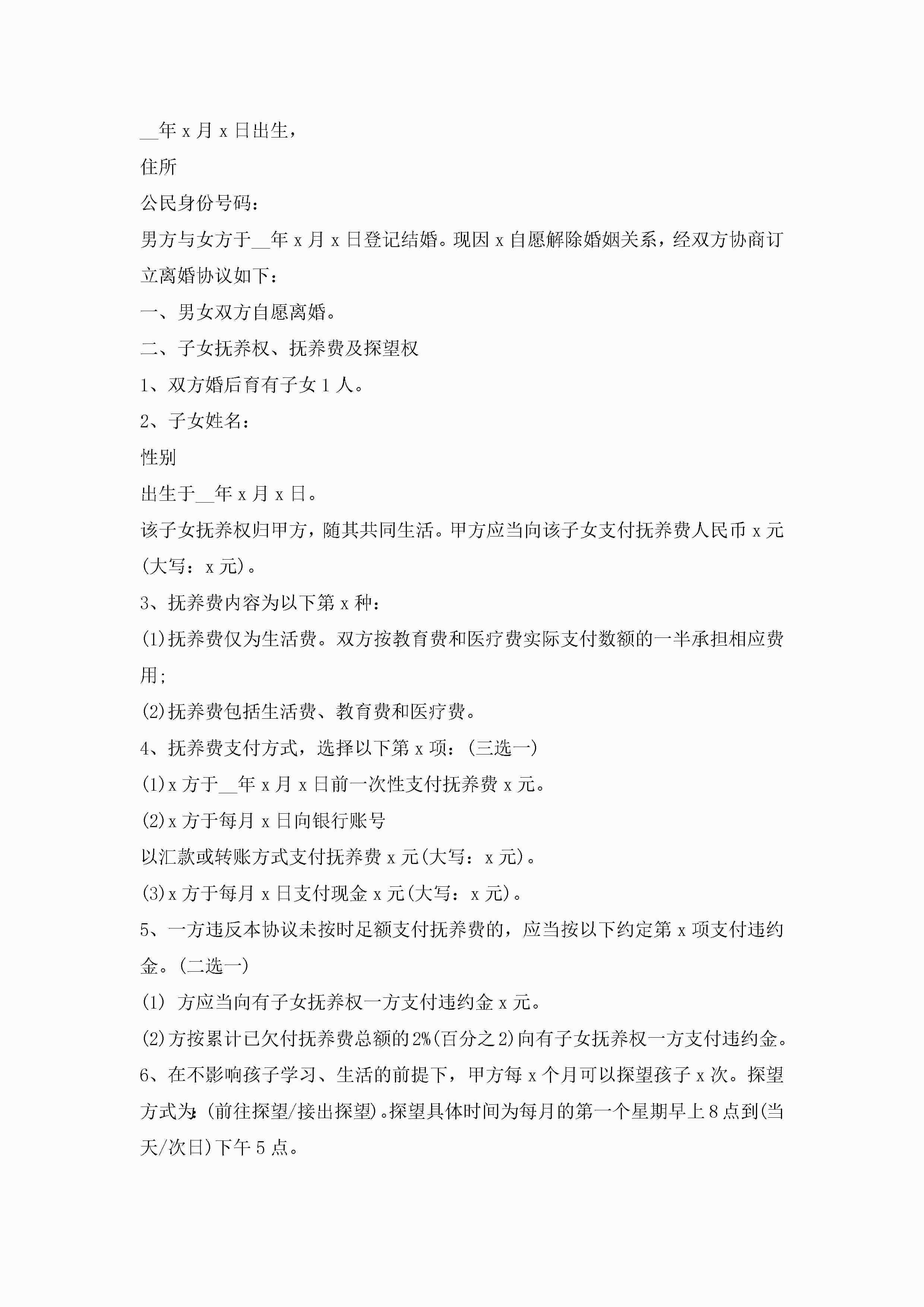 离婚协议书模板标准版【9篇】jugei3月22日 12:42更新关注214 离婚协议书模板标准版【9篇】此内容为付费资源,请付费后查看¥10.9 单篇文档限时特惠¥15个人会员开通企业会员开通立即下载无需登陆!可直接快捷下载单个模板付费资源© 版权声明THE ENDWord模板# 实用文档# 实用模板# 信函模板# 协议书 如有问题,可点击最底部“联系我们”联系客服 分享QQ空间微博QQ好友海报分享复制链接收藏
