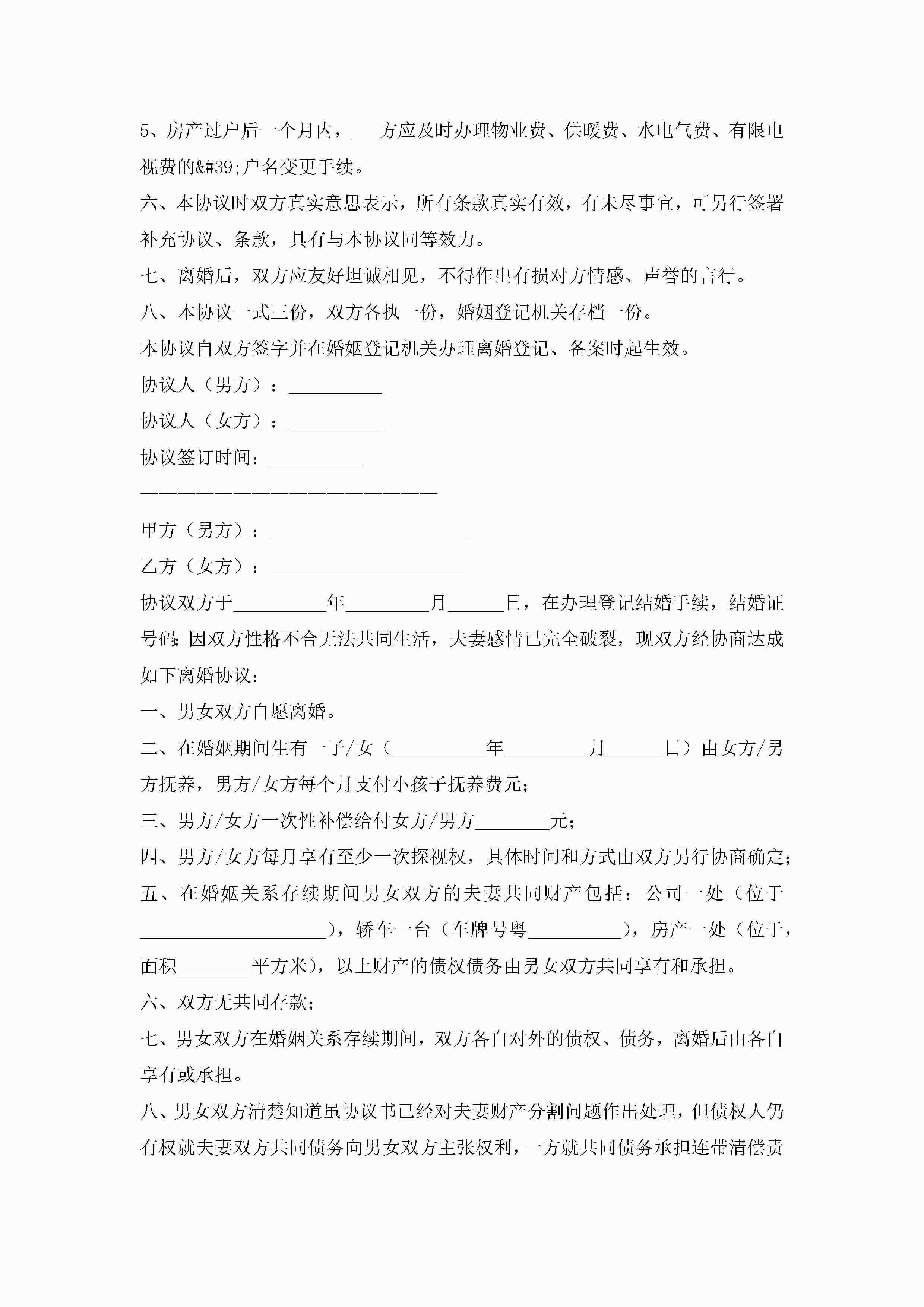离婚协议书2023标准版(10篇)jugei3月22日 12:42更新关注191 离婚协议书2023标准版(10篇)此内容为付费资源,请付费后查看¥10.9 单篇文档限时特惠¥15个人会员开通企业会员开通立即下载无需登陆!可直接快捷下载单个模板付费资源© 版权声明THE ENDWord模板# 实用文档# 实用模板# 信函模板# 协议书 如有问题,可点击最底部“联系我们”联系客服 分享QQ空间微博QQ好友海报分享复制链接收藏