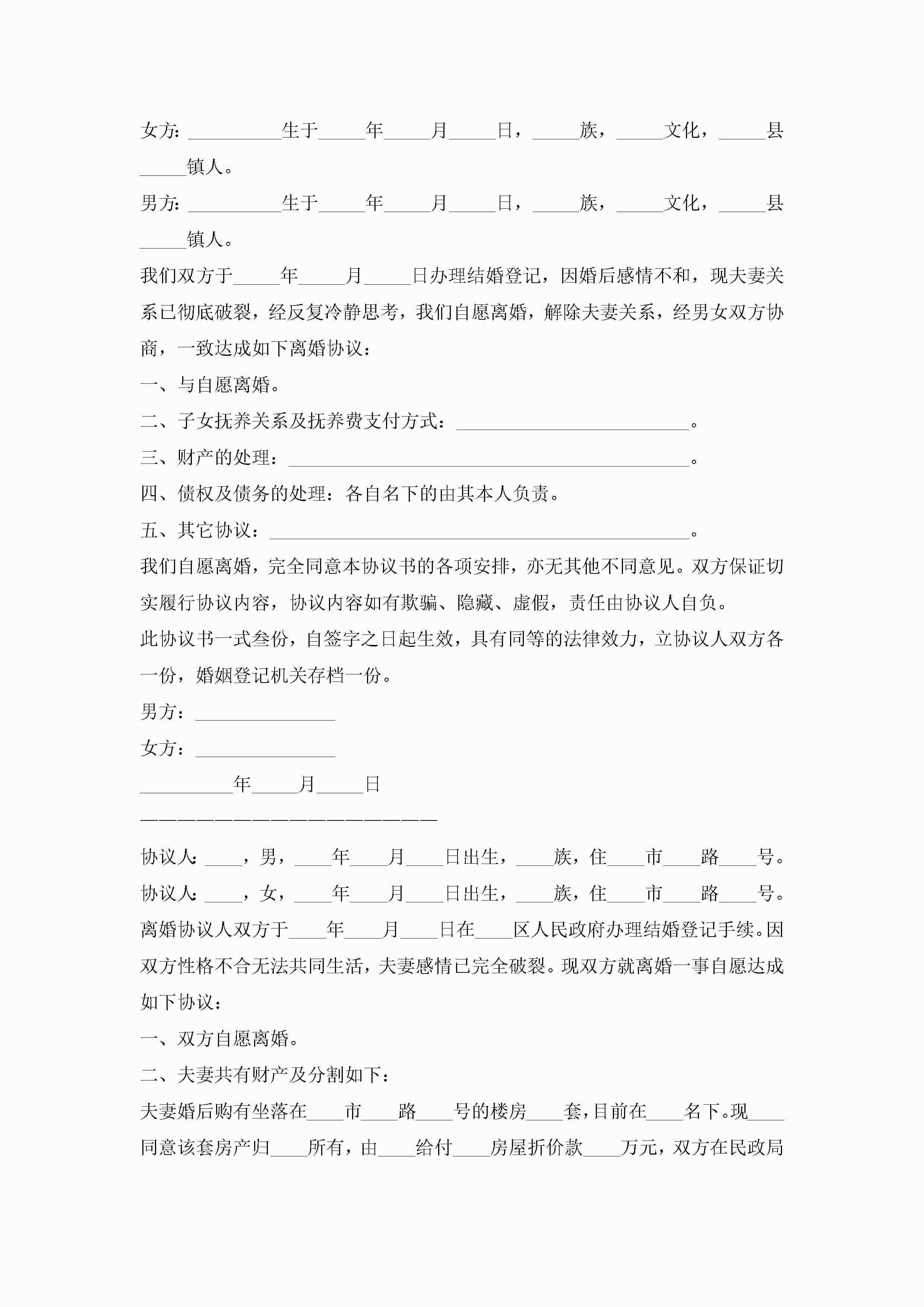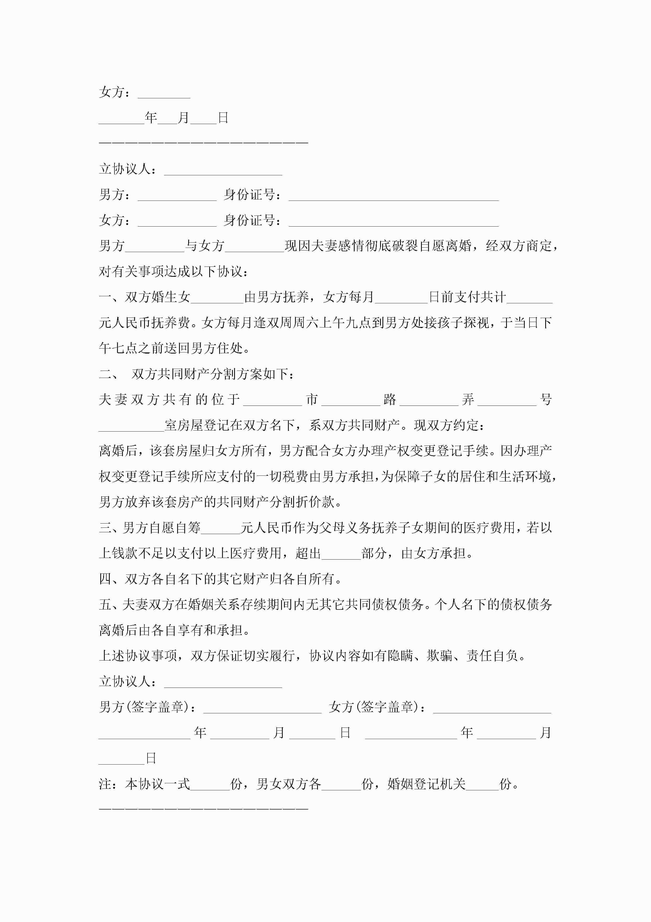 离婚协议书范本电子版(8篇)jugei3月22日 12:42更新关注276 离婚协议书范本电子版(8篇)此内容为付费资源,请付费后查看¥10.9 单篇文档限时特惠¥15个人会员开通企业会员开通立即下载无需登陆!可直接快捷下载单个模板付费资源© 版权声明THE ENDWord模板# 实用文档# 实用模板# 信函模板# 协议书 如有问题,可点击最底部“联系我们”联系客服 分享QQ空间微博QQ好友海报分享复制链接收藏