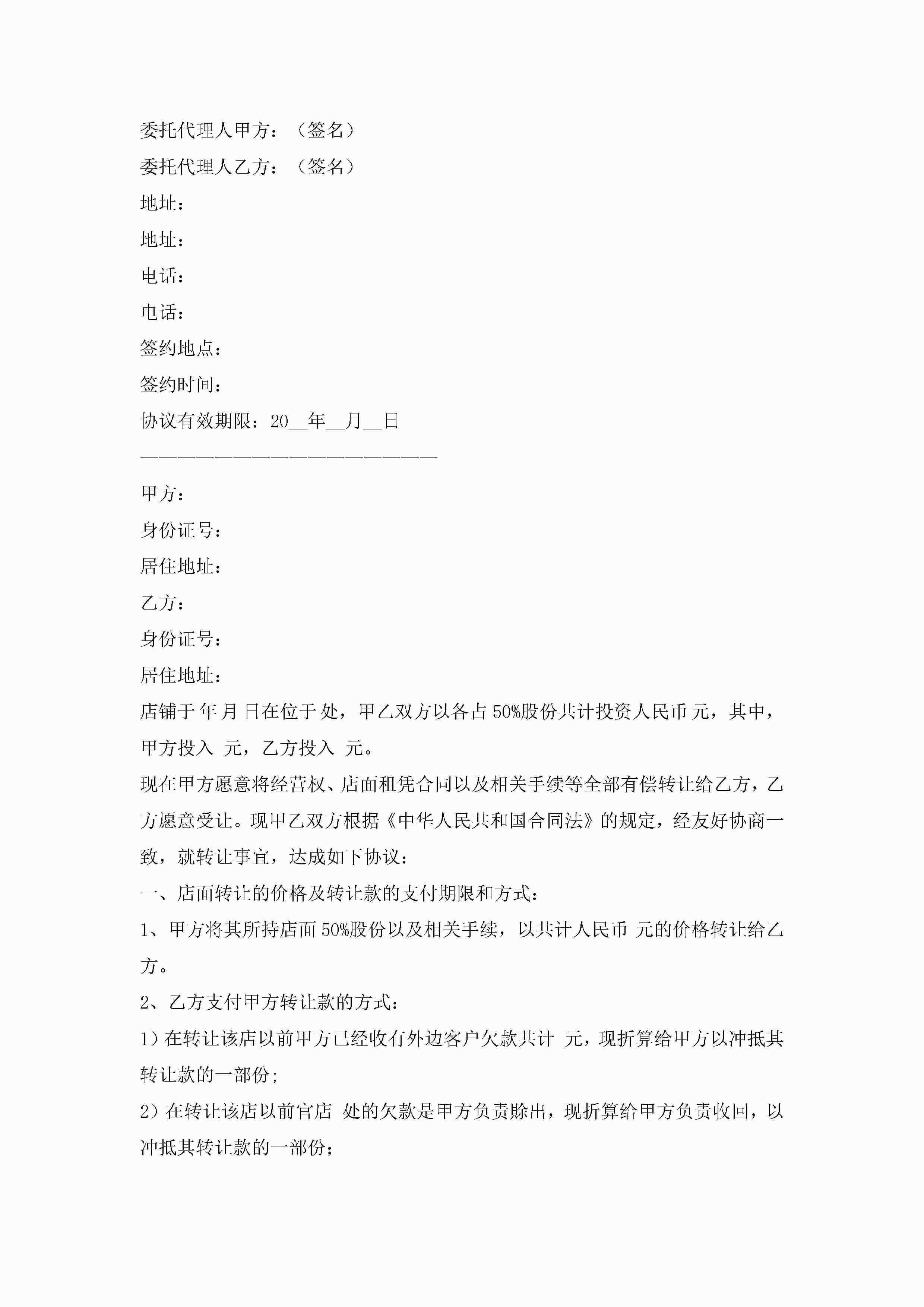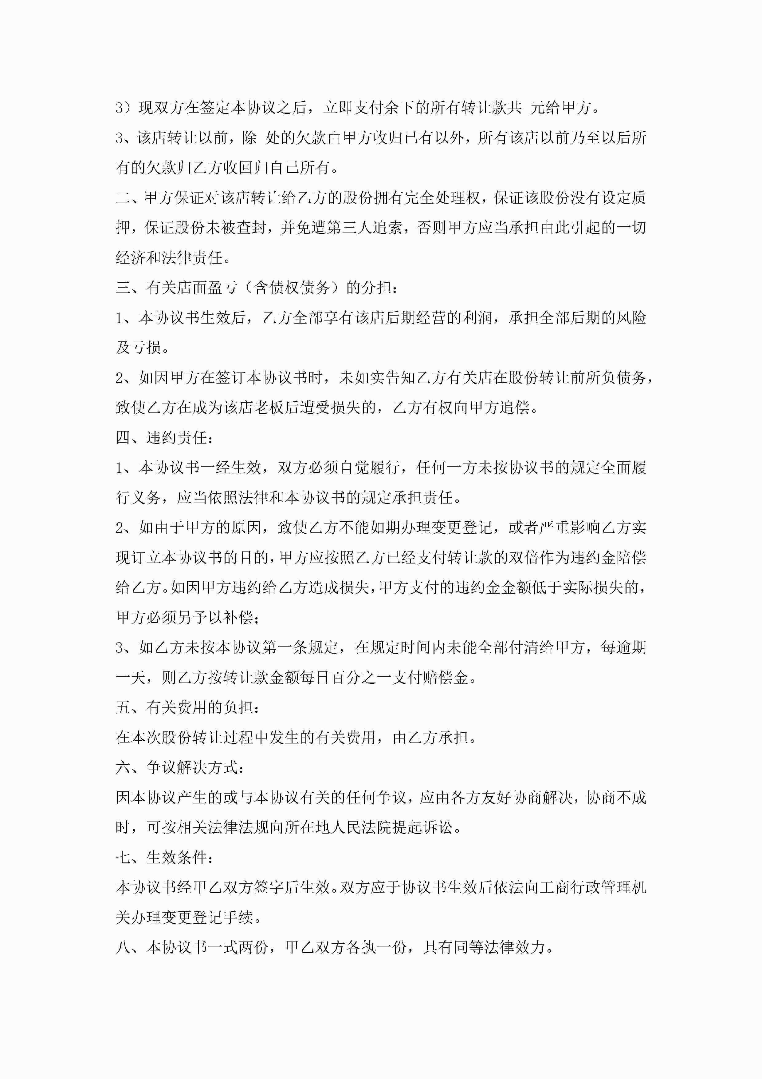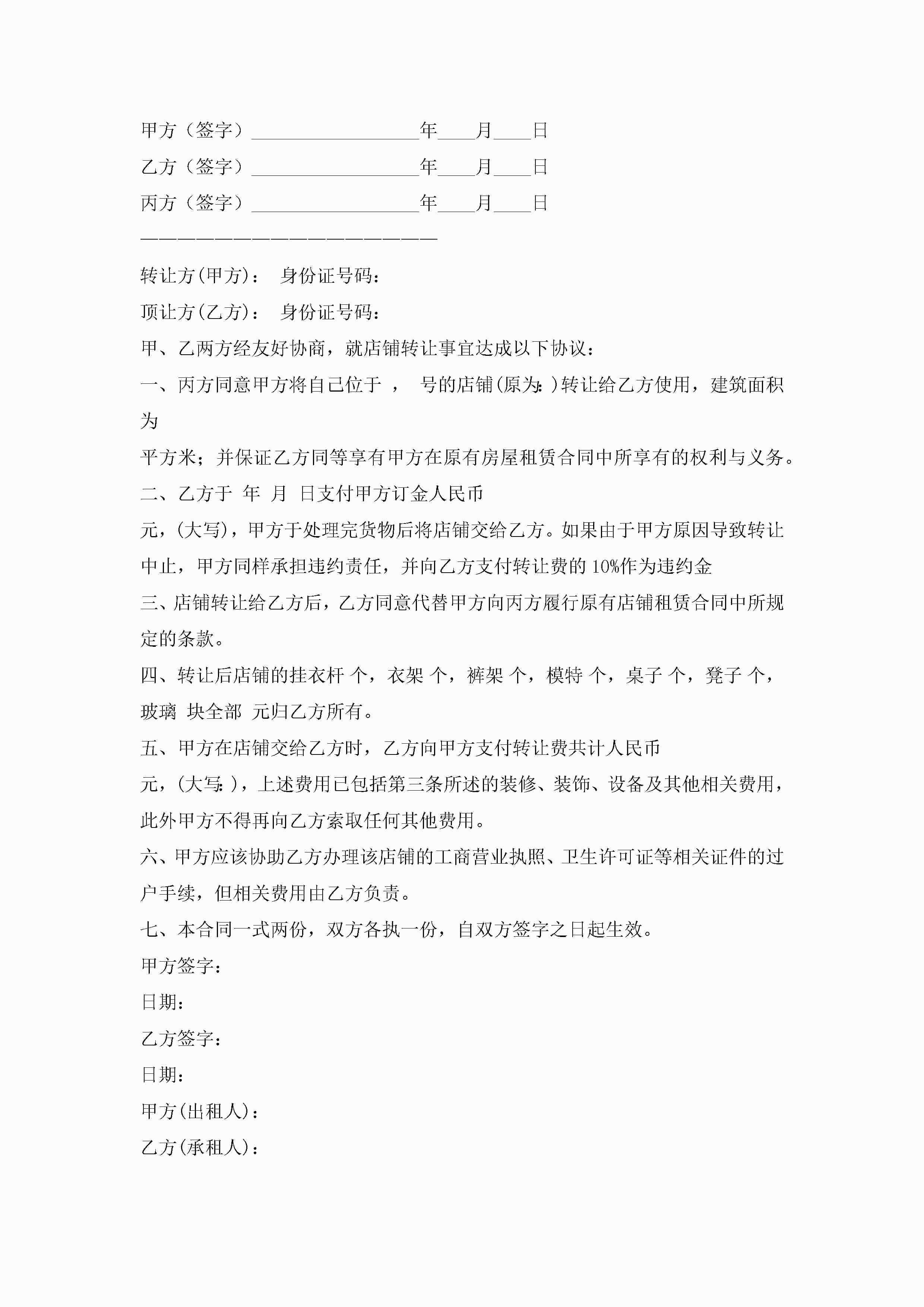 店面转让协议书范本格式(精选10篇)jugei3月22日 12:42更新关注199 店面转让协议书范本格式(精选10篇)此内容为付费资源,请付费后查看¥10.9 单篇文档限时特惠¥15个人会员开通企业会员开通立即下载无需登陆!可直接快捷下载单个模板付费资源© 版权声明THE ENDWord模板# 实用文档# 实用模板# 信函模板# 协议书 如有问题,可点击最底部“联系我们”联系客服 分享QQ空间微博QQ好友海报分享复制链接收藏