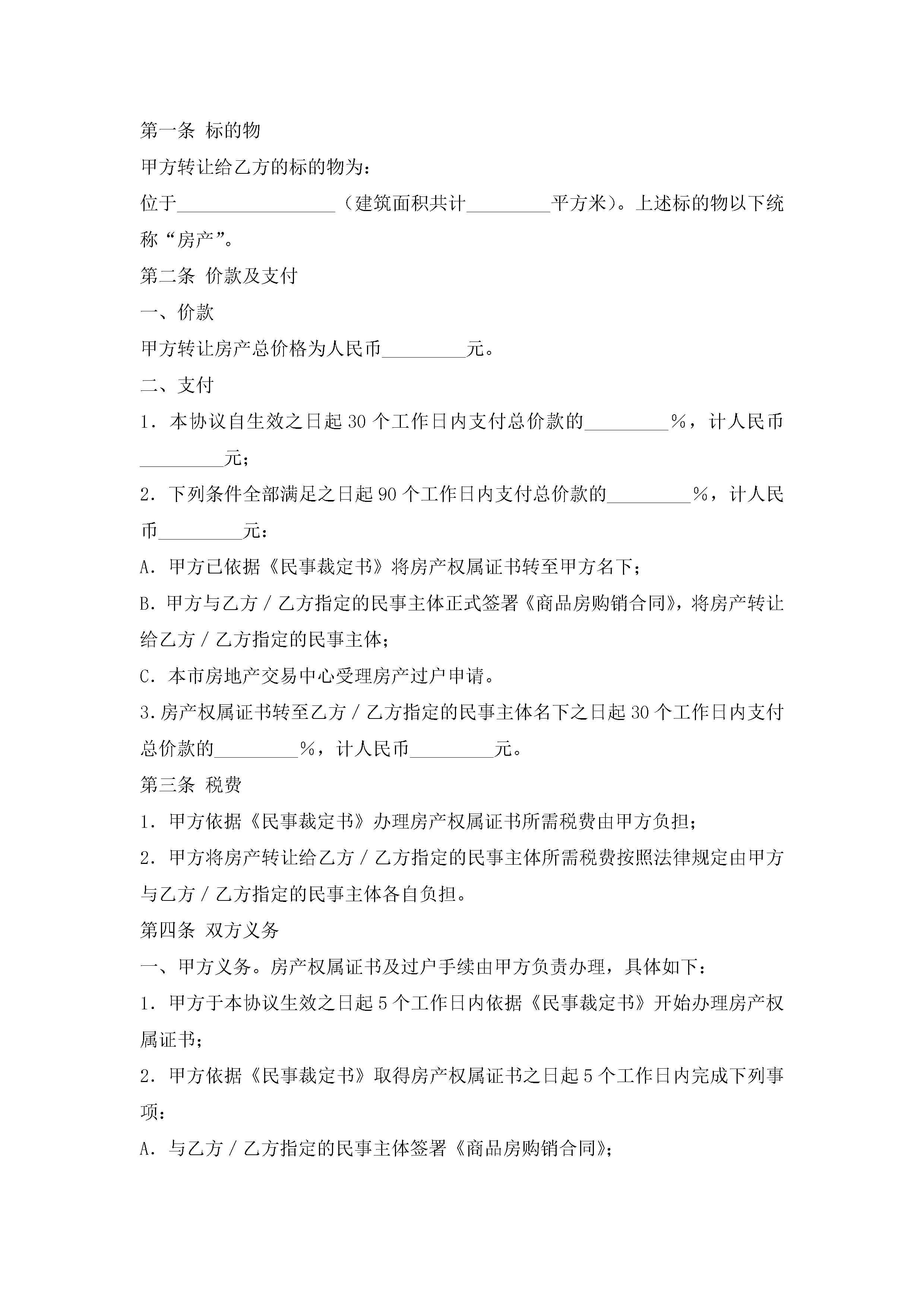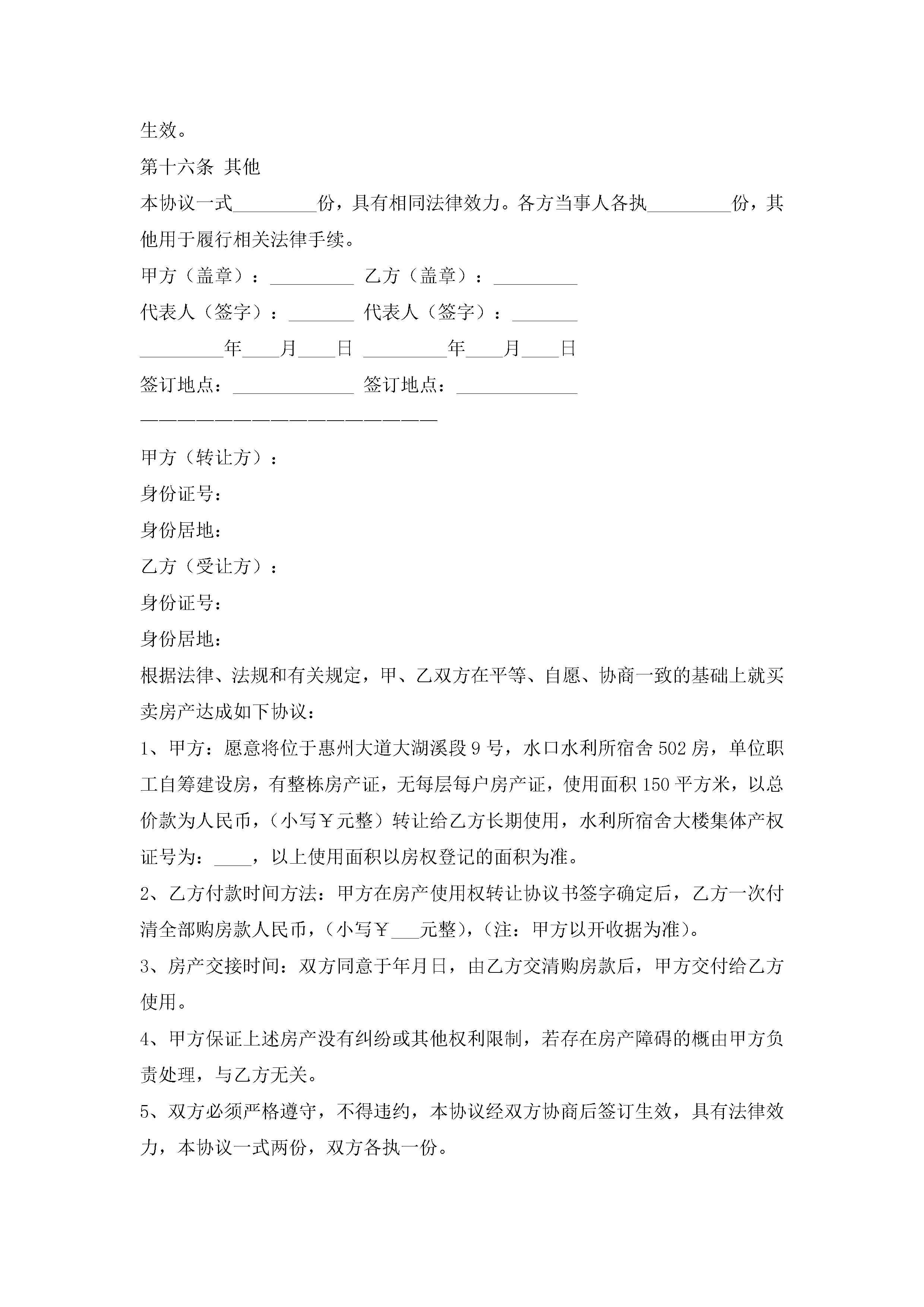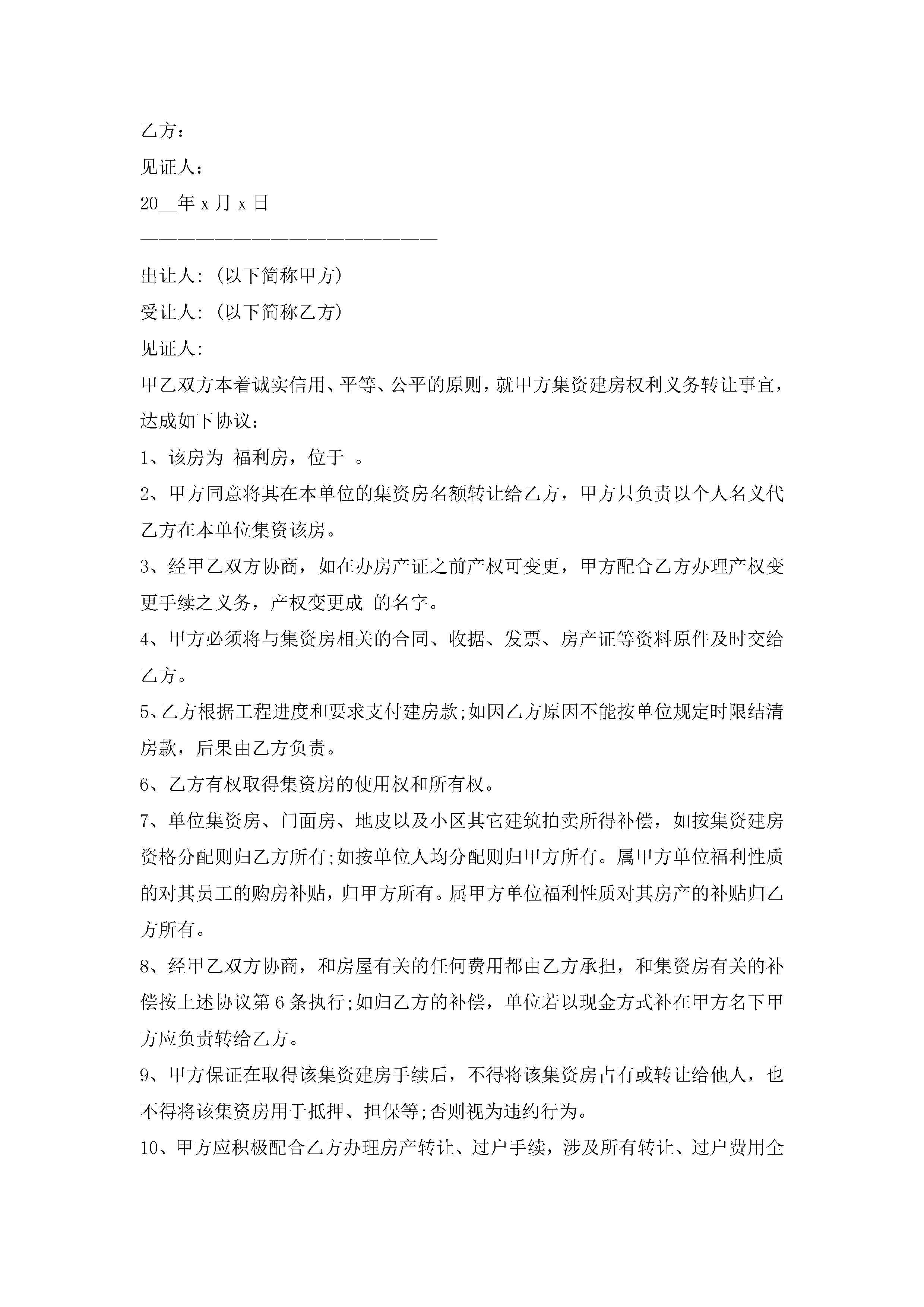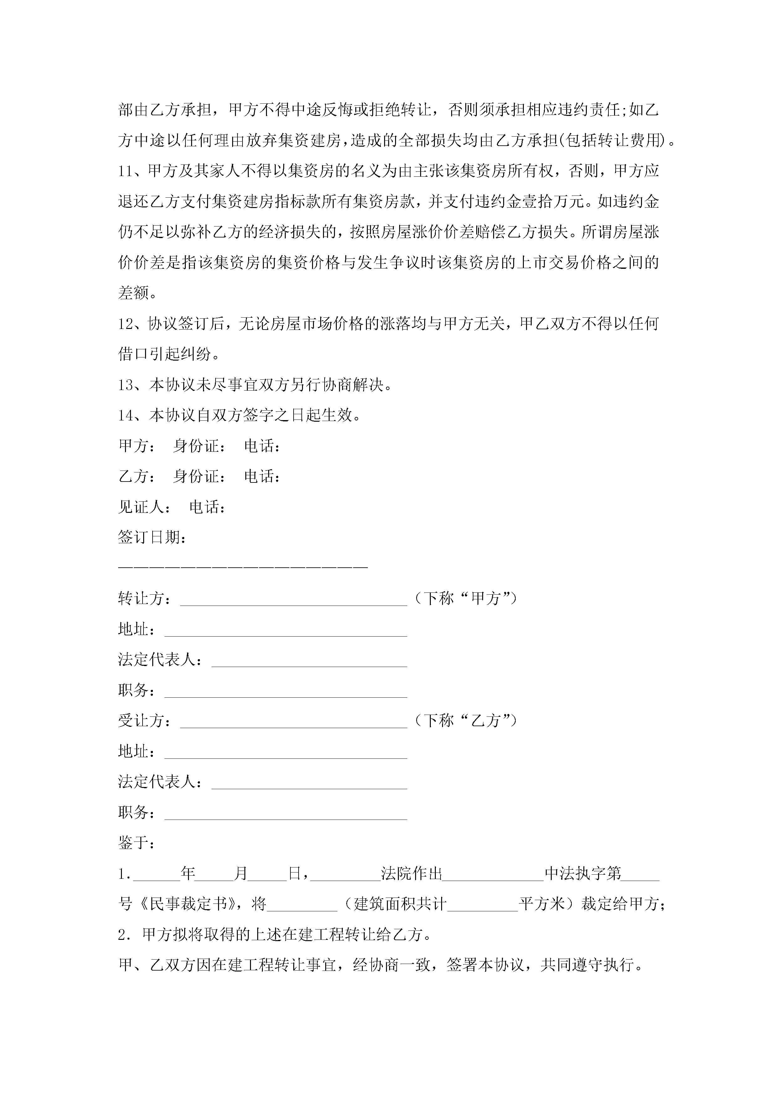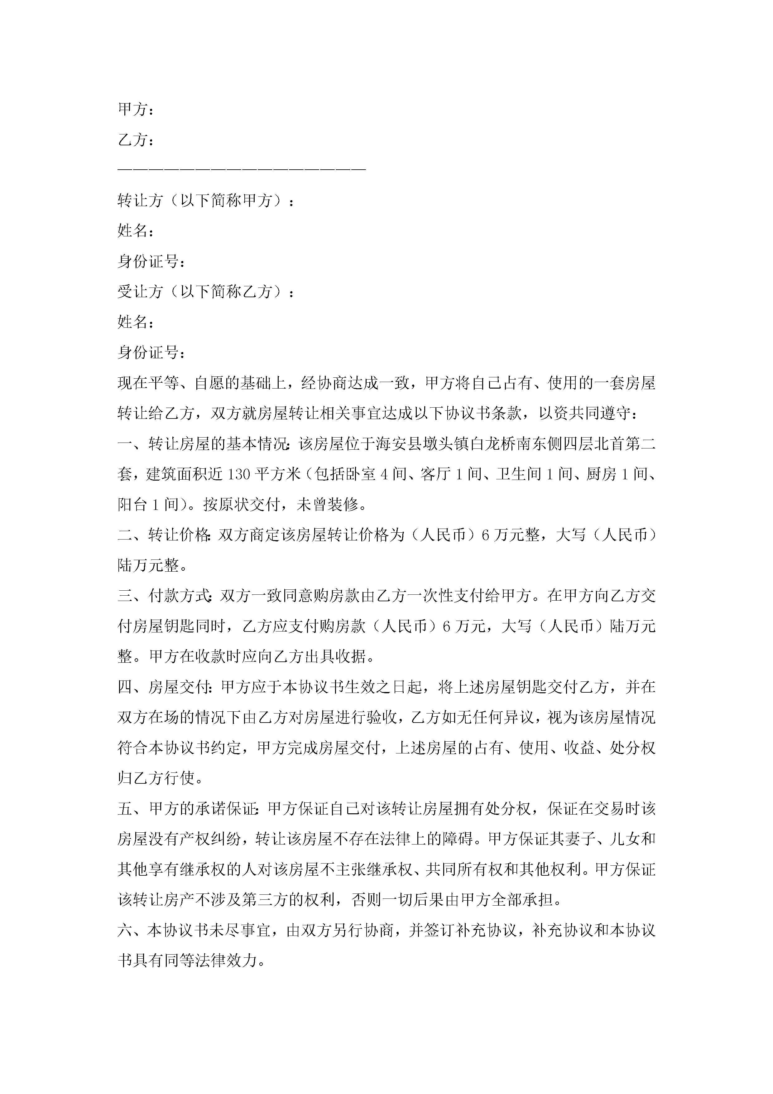 关于房屋转让协议书范本(精选10篇)jugei3月22日 12:42更新关注215 关于房屋转让协议书范本(精选10篇)此内容为付费资源,请付费后查看¥10.9 单篇文档限时特惠¥15个人会员开通企业会员开通立即下载无需登陆!可直接快捷下载单个模板付费资源© 版权声明THE ENDWord模板# 实用文档# 实用模板# 信函模板# 协议书 如有问题,可点击最底部“联系我们”联系客服 分享QQ空间微博QQ好友海报分享复制链接收藏