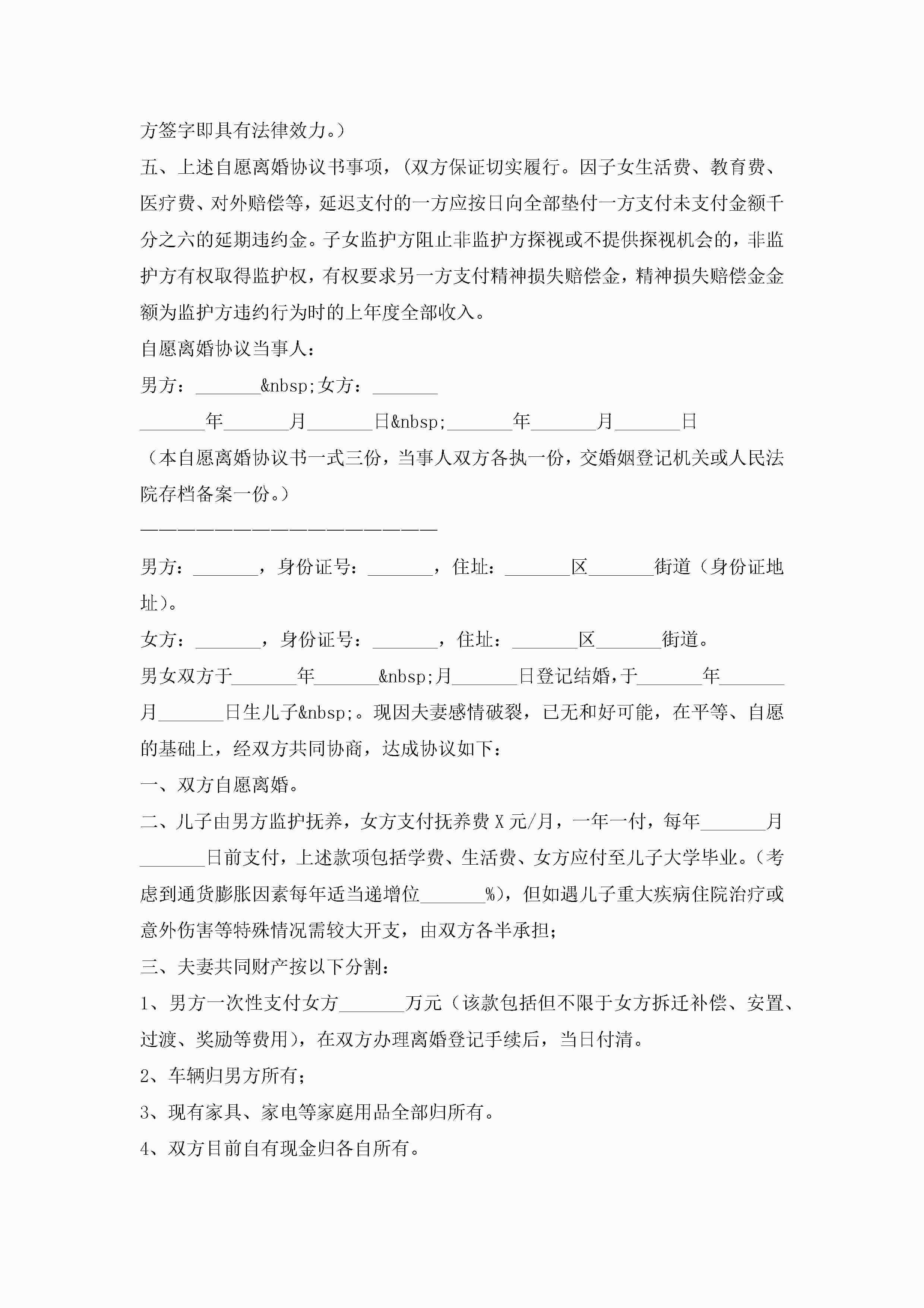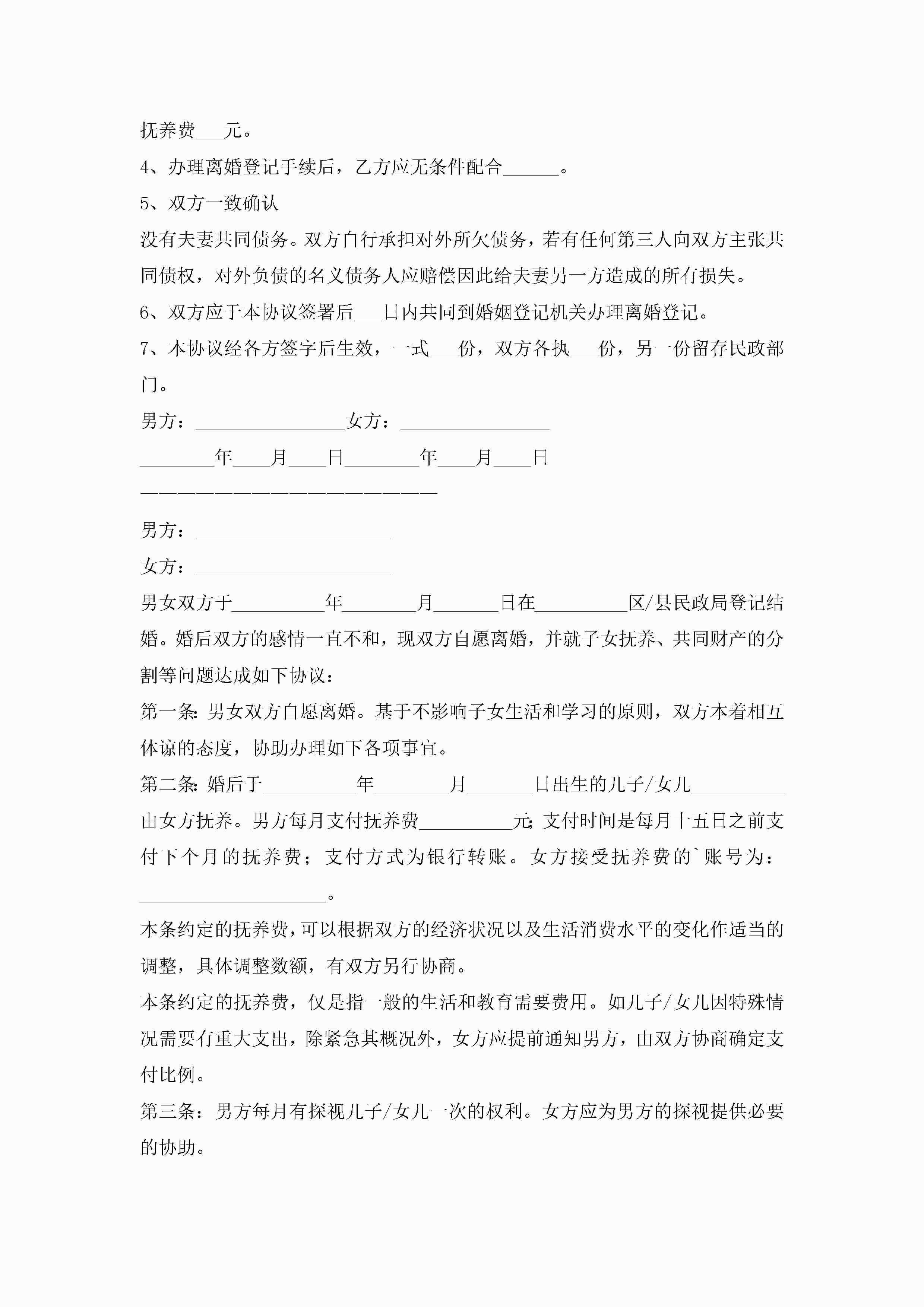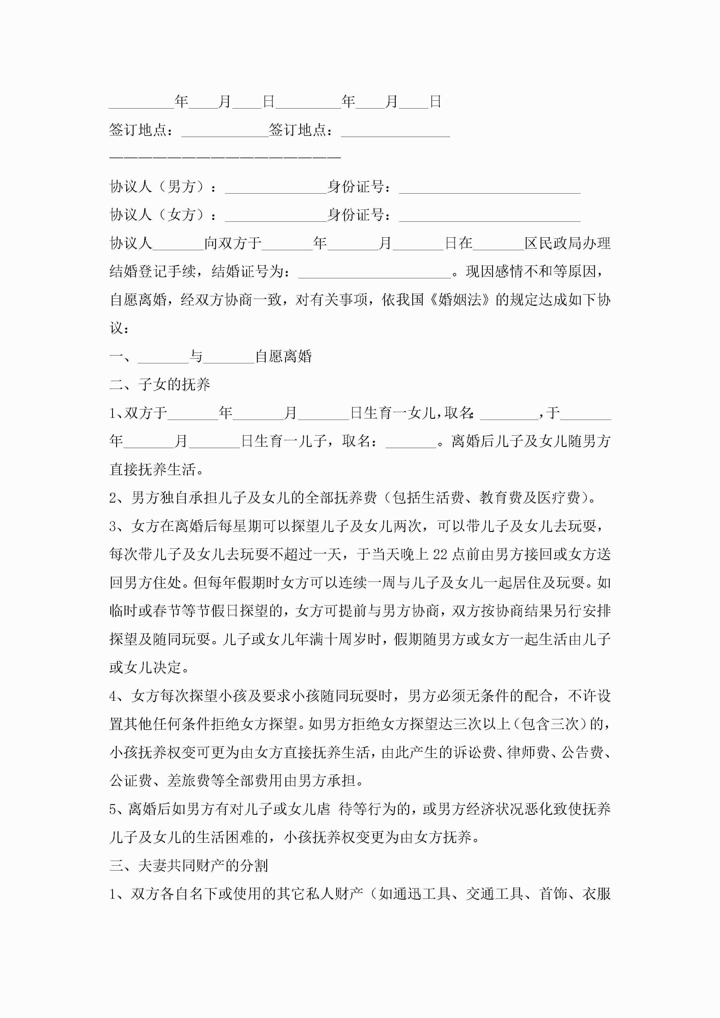 夫妻离婚协议书模板(10篇)jugei3月22日 12:42更新关注198 夫妻离婚协议书模板(10篇)此内容为付费资源,请付费后查看¥10.9 单篇文档限时特惠¥15个人会员开通企业会员开通立即下载无需登陆!可直接快捷下载单个模板付费资源© 版权声明THE ENDWord模板# 实用文档# 实用模板# 信函模板# 协议书 如有问题,可点击最底部“联系我们”联系客服 分享QQ空间微博QQ好友海报分享复制链接收藏