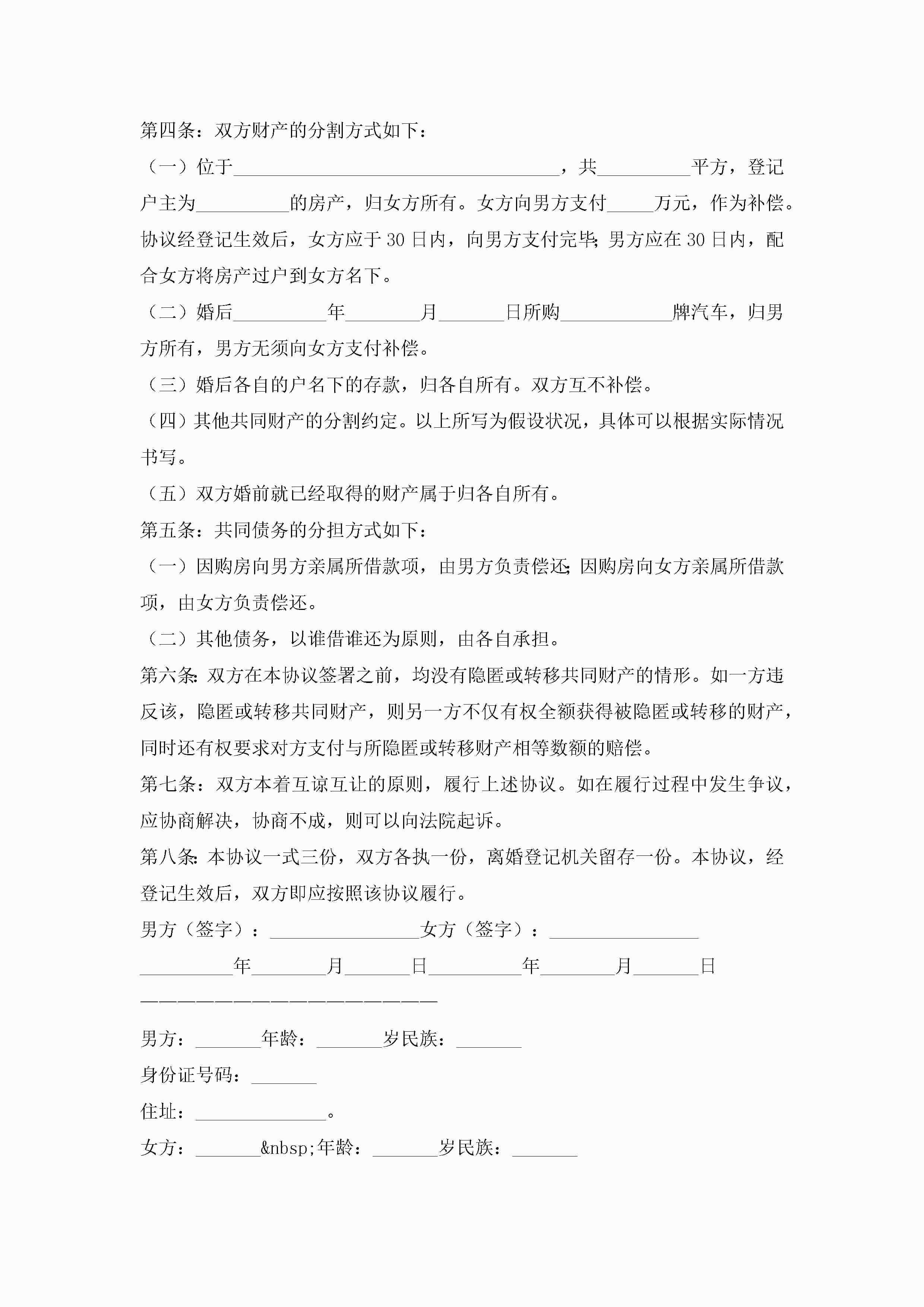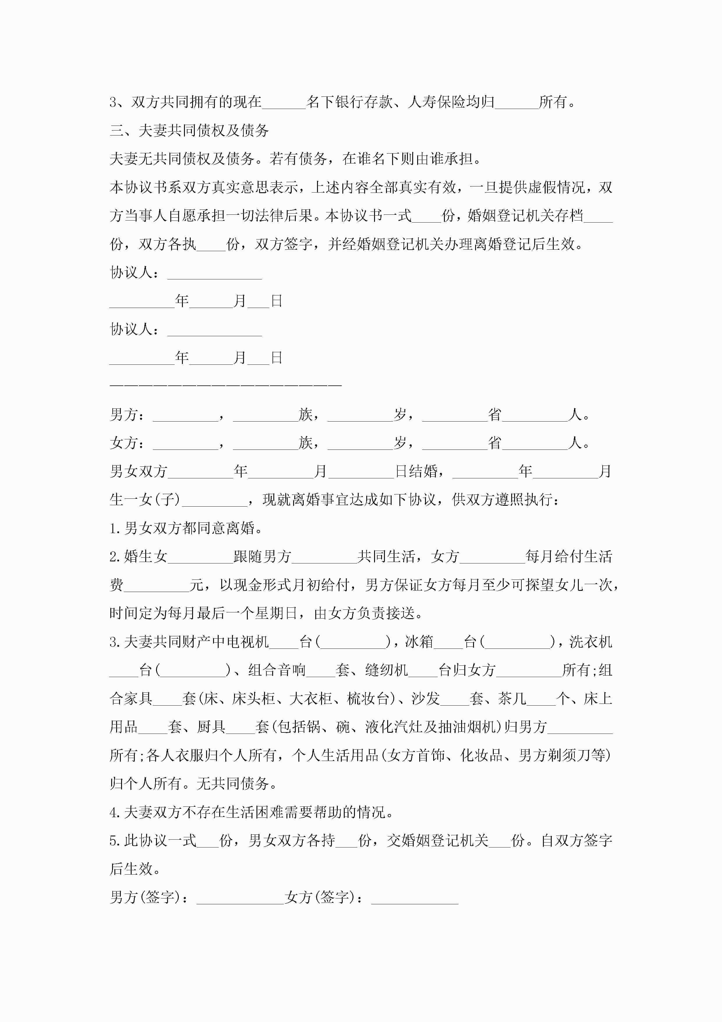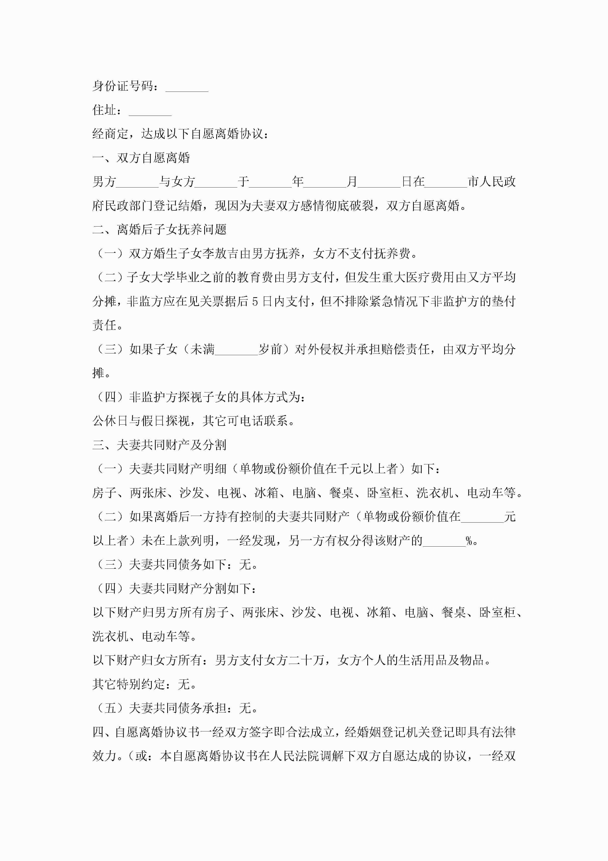 夫妻离婚协议书模板(10篇)jugei3月22日 12:42更新关注198 夫妻离婚协议书模板(10篇)此内容为付费资源,请付费后查看¥10.9 单篇文档限时特惠¥15个人会员开通企业会员开通立即下载无需登陆!可直接快捷下载单个模板付费资源© 版权声明THE ENDWord模板# 实用文档# 实用模板# 信函模板# 协议书 如有问题,可点击最底部“联系我们”联系客服 分享QQ空间微博QQ好友海报分享复制链接收藏
