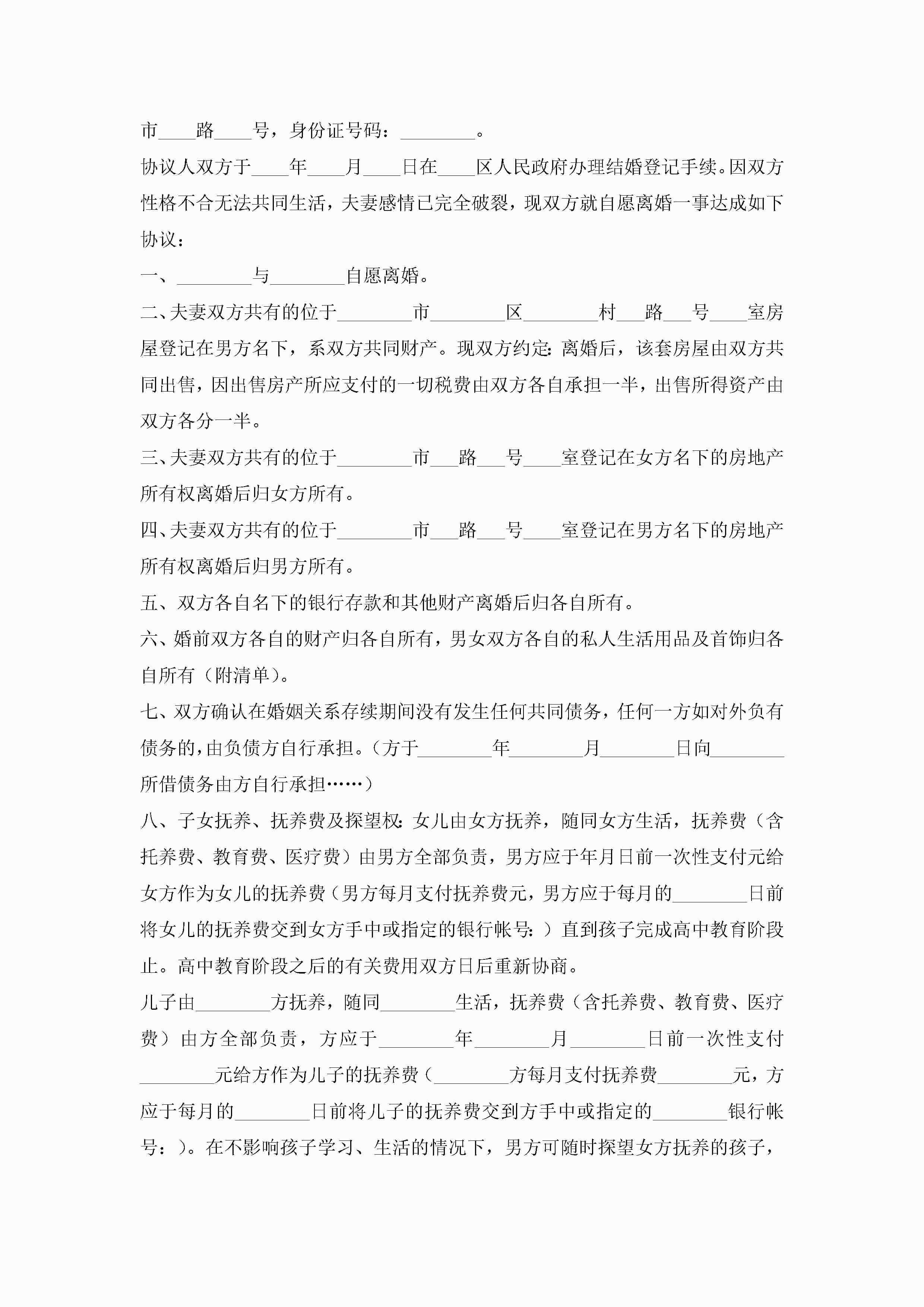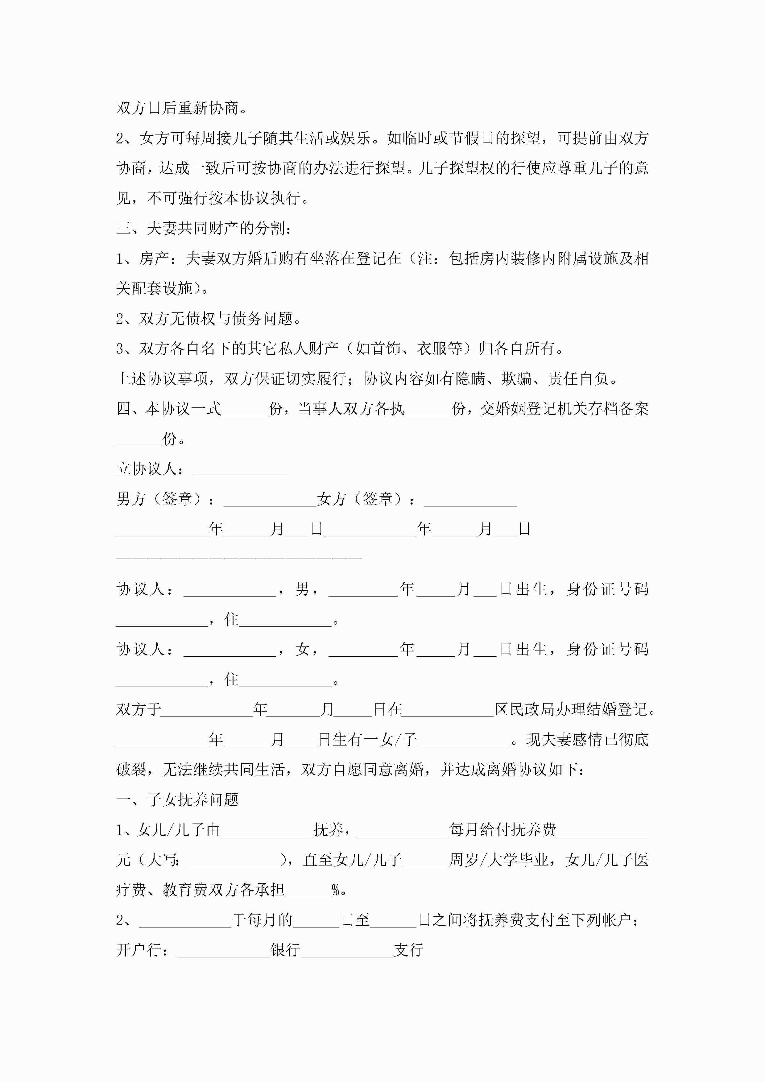 2022离婚协议书通用(5篇)jugei3月22日 12:42更新关注220 2022离婚协议书通用(5篇)此内容为付费资源,请付费后查看¥10.9 单篇文档限时特惠¥15个人会员开通企业会员开通立即下载无需登陆!可直接快捷下载单个模板付费资源© 版权声明THE ENDWord模板# 实用文档# 实用模板# 信函模板# 协议书 如有问题,可点击最底部“联系我们”联系客服 分享QQ空间微博QQ好友海报分享复制链接收藏