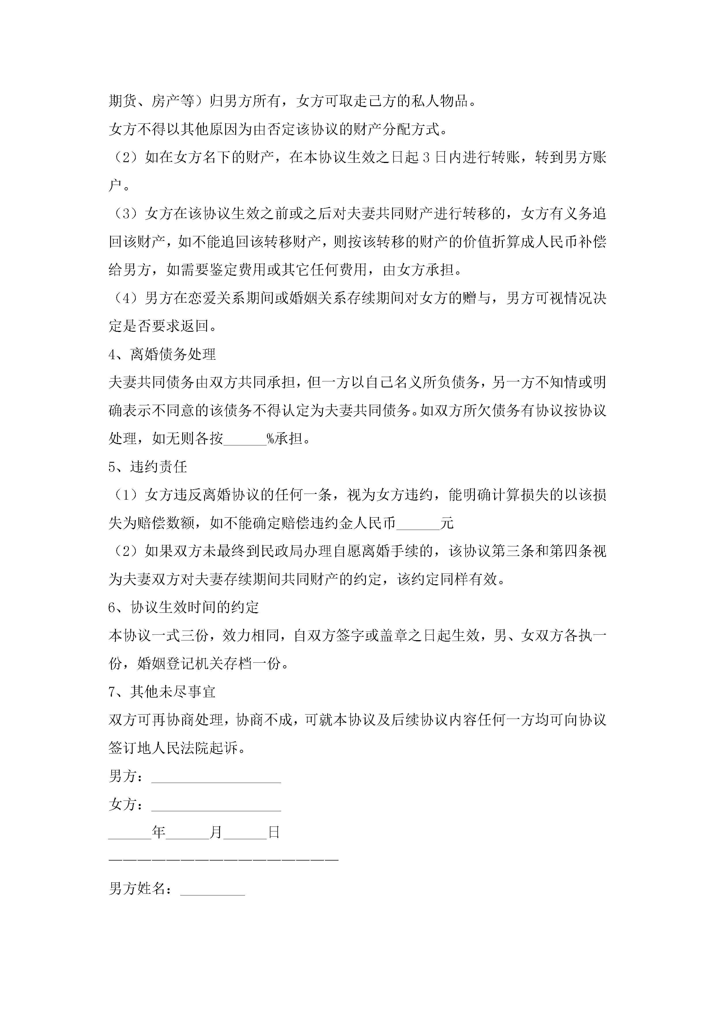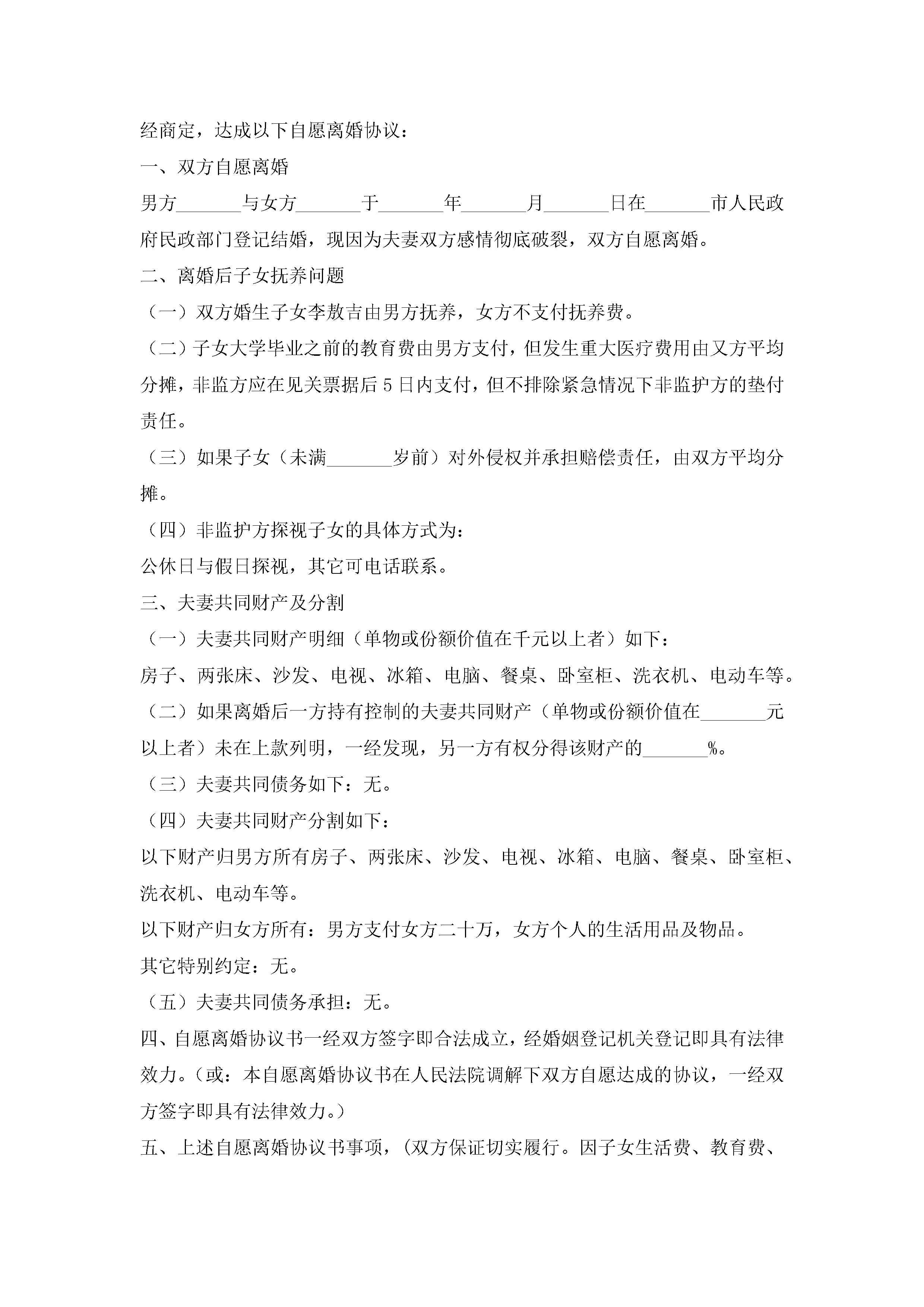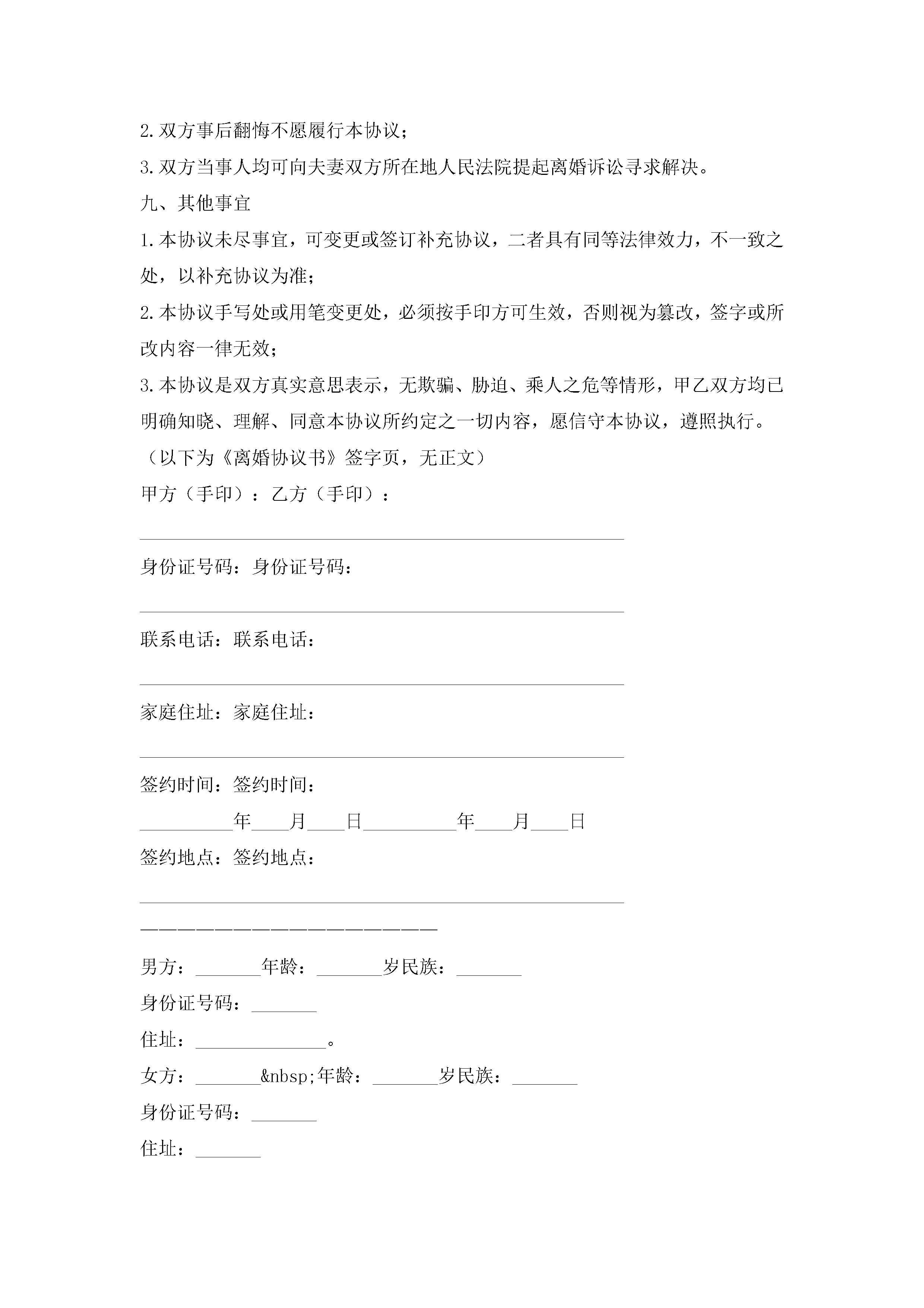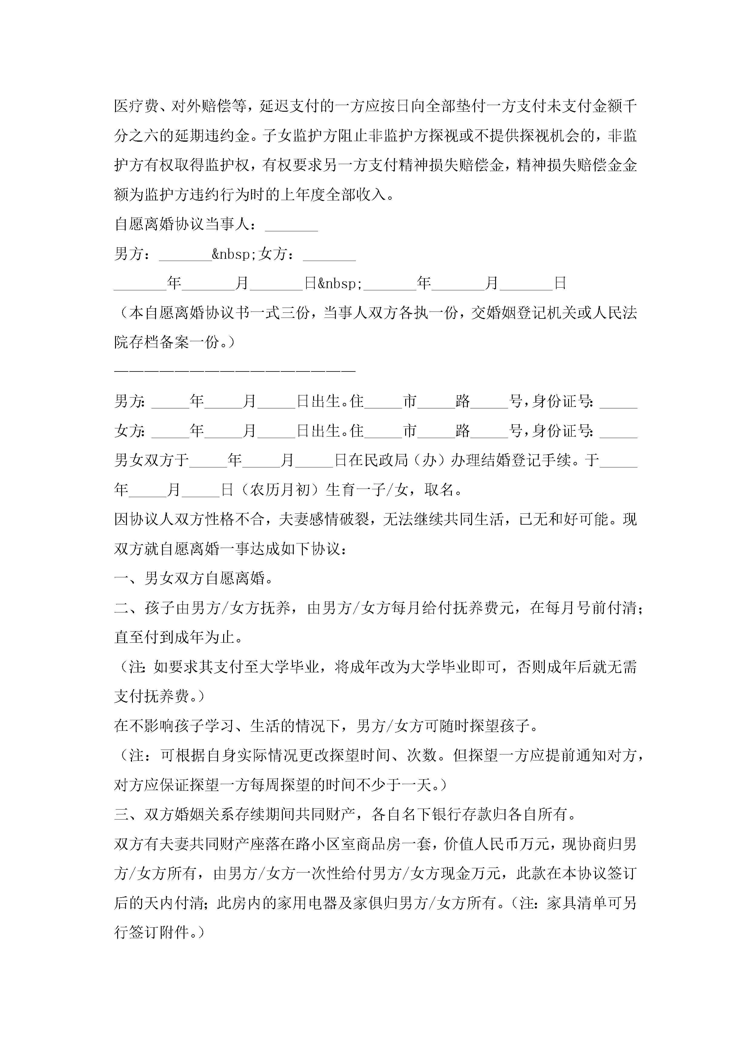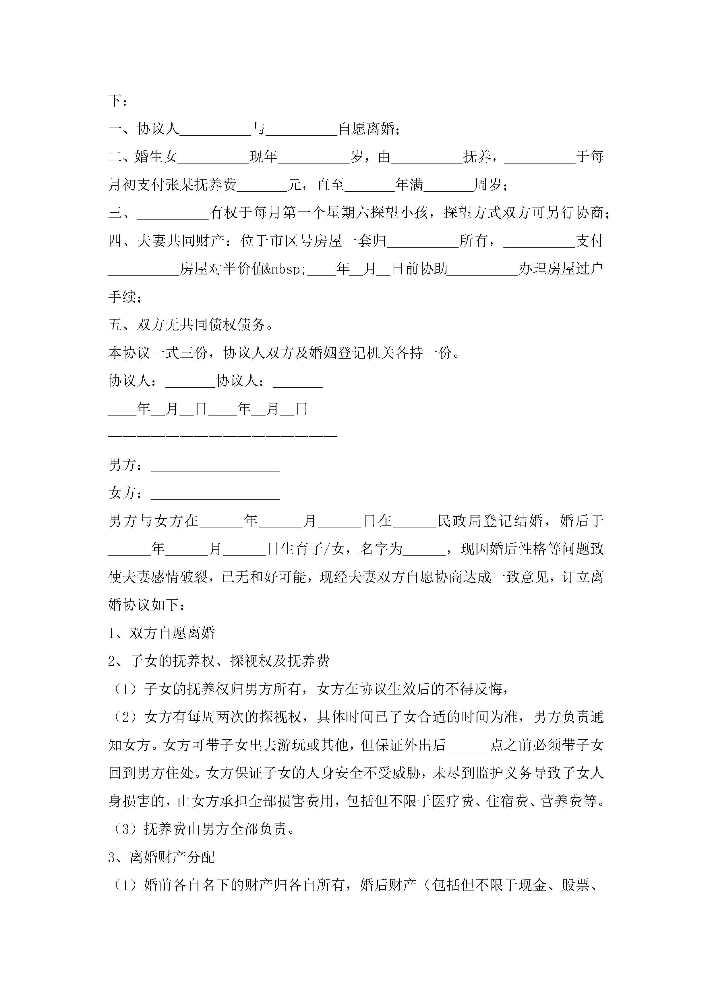 离婚协议书模板下载(精选10篇)jugei3月22日 12:42更新关注301 离婚协议书模板下载(精选10篇)此内容为付费资源,请付费后查看¥10.9 单篇文档限时特惠¥15个人会员开通企业会员开通立即下载无需登陆!可直接快捷下载单个模板付费资源© 版权声明THE ENDWord模板# 实用文档# 实用模板# 信函模板# 协议书 如有问题,可点击最底部“联系我们”联系客服 分享QQ空间微博QQ好友海报分享复制链接收藏1