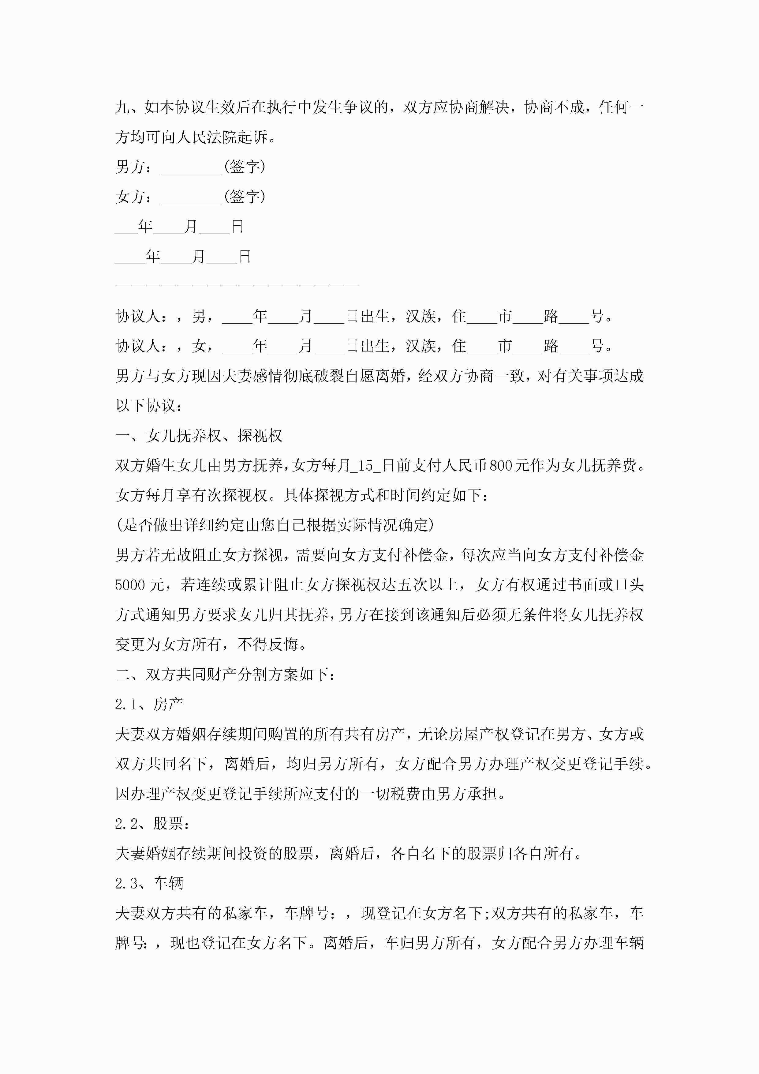 2022离婚协议书模板(精选10篇)jugei3月22日 12:42更新关注219 2022离婚协议书模板(精选10篇)此内容为付费资源,请付费后查看¥10.9 单篇文档限时特惠¥15个人会员开通企业会员开通立即下载无需登陆!可直接快捷下载单个模板付费资源© 版权声明THE ENDWord模板# 实用文档# 实用模板# 信函模板# 协议书 如有问题,可点击最底部“联系我们”联系客服 分享QQ空间微博QQ好友海报分享复制链接收藏