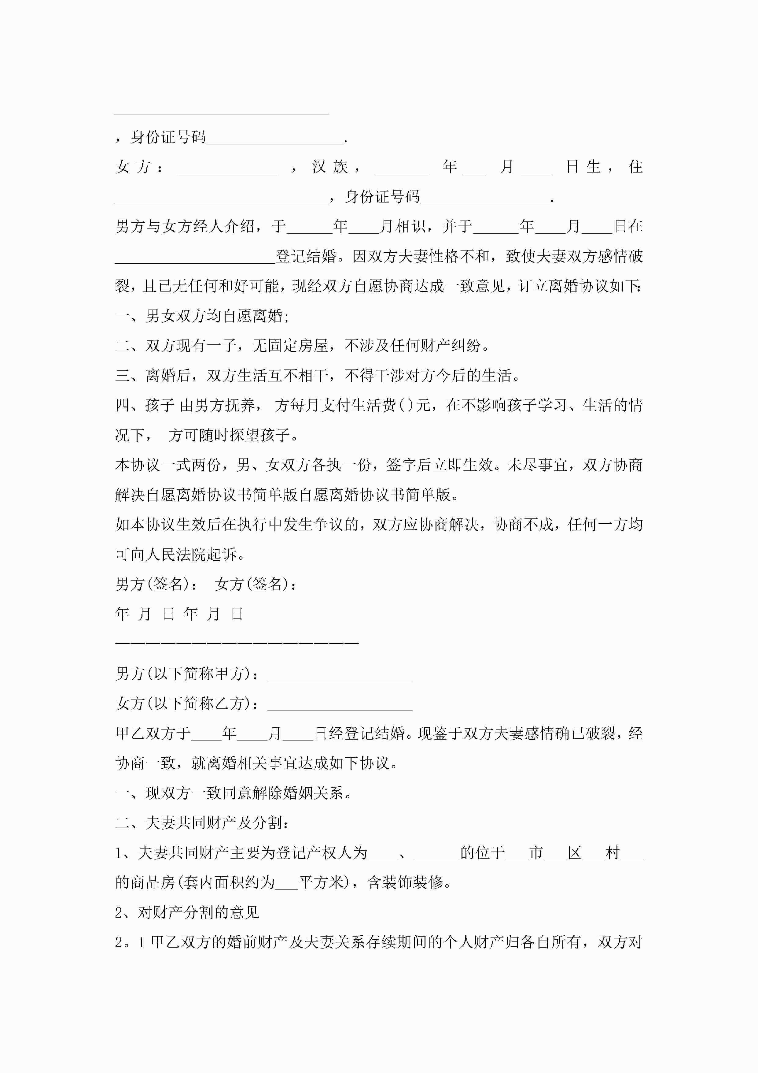 离婚协议书简易版(精选10篇)jugei3月22日 12:42更新关注195 离婚协议书简易版(精选10篇)此内容为付费资源,请付费后查看¥10.9 单篇文档限时特惠¥15个人会员开通企业会员开通立即下载无需登陆!可直接快捷下载单个模板付费资源© 版权声明THE ENDWord模板# 实用文档# 实用模板# 信函模板# 协议书 如有问题,可点击最底部“联系我们”联系客服 分享QQ空间微博QQ好友海报分享复制链接收藏