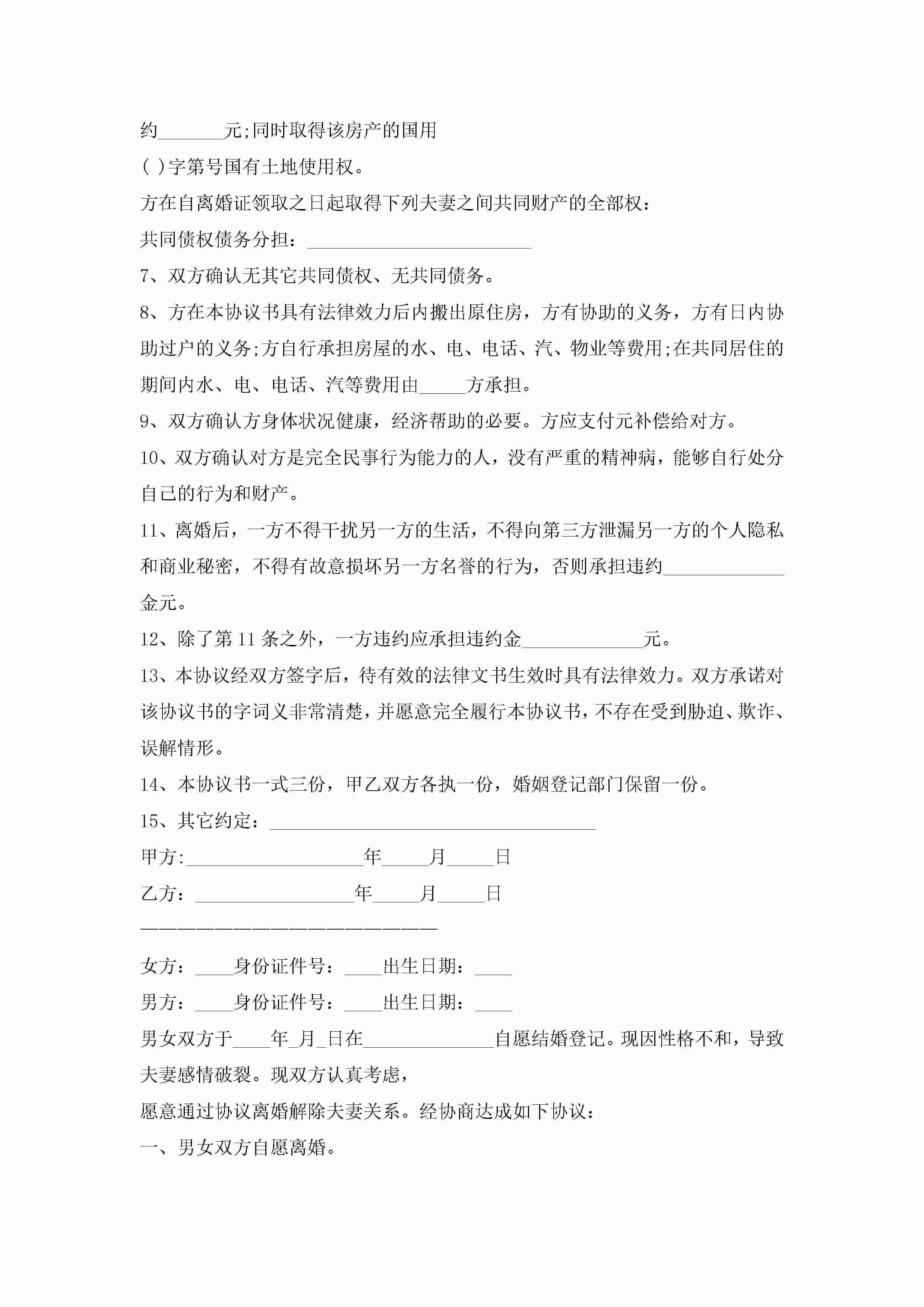 2022年正规离婚协议书(精选10篇)jugei3月22日 12:42更新关注217 2022年正规离婚协议书(精选10篇)此内容为付费资源,请付费后查看¥10.9 单篇文档限时特惠¥15个人会员开通企业会员开通立即下载无需登陆!可直接快捷下载单个模板付费资源© 版权声明THE ENDWord模板# 实用文档# 实用模板# 信函模板# 协议书 如有问题,可点击最底部“联系我们”联系客服 分享QQ空间微博QQ好友海报分享复制链接收藏