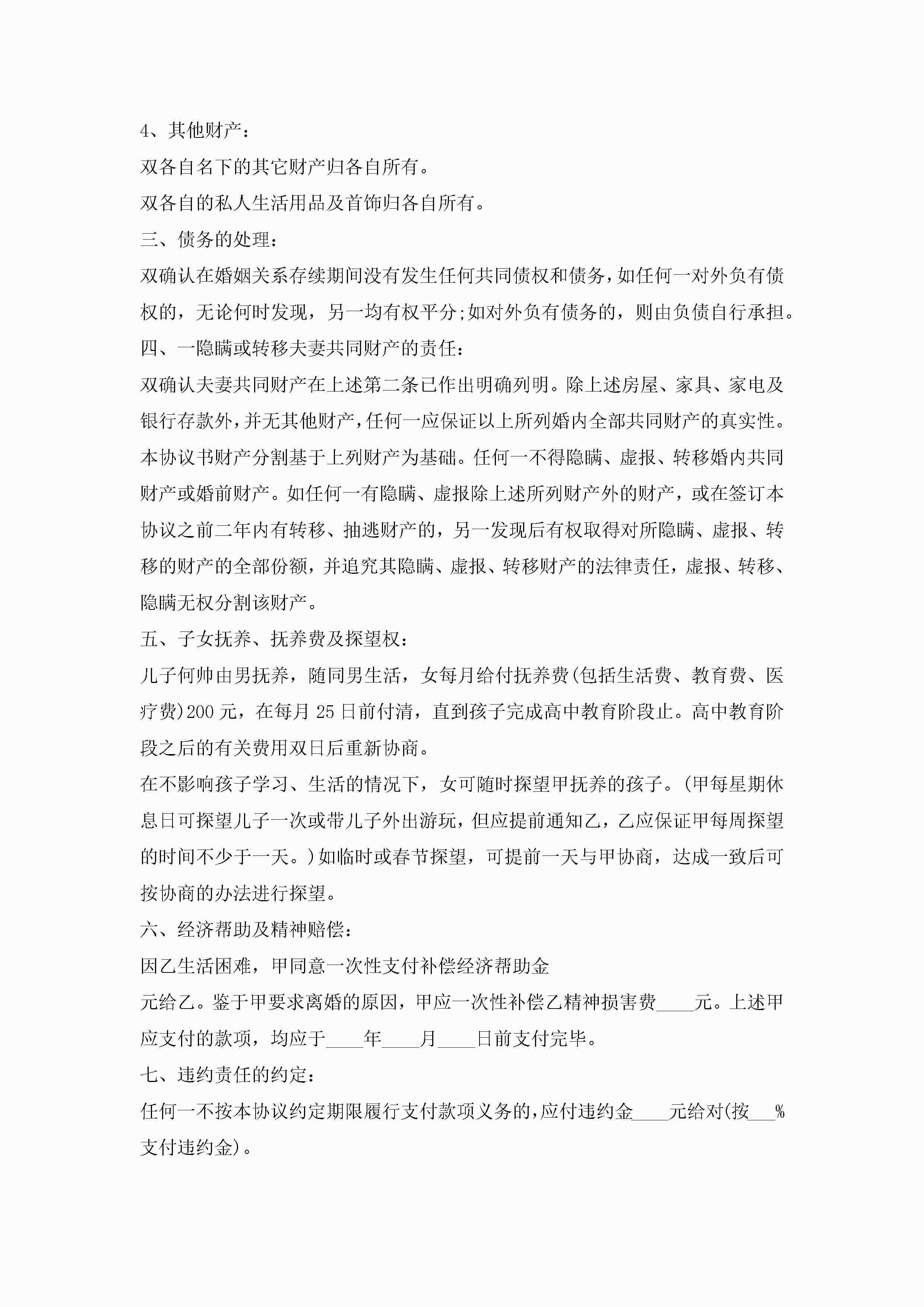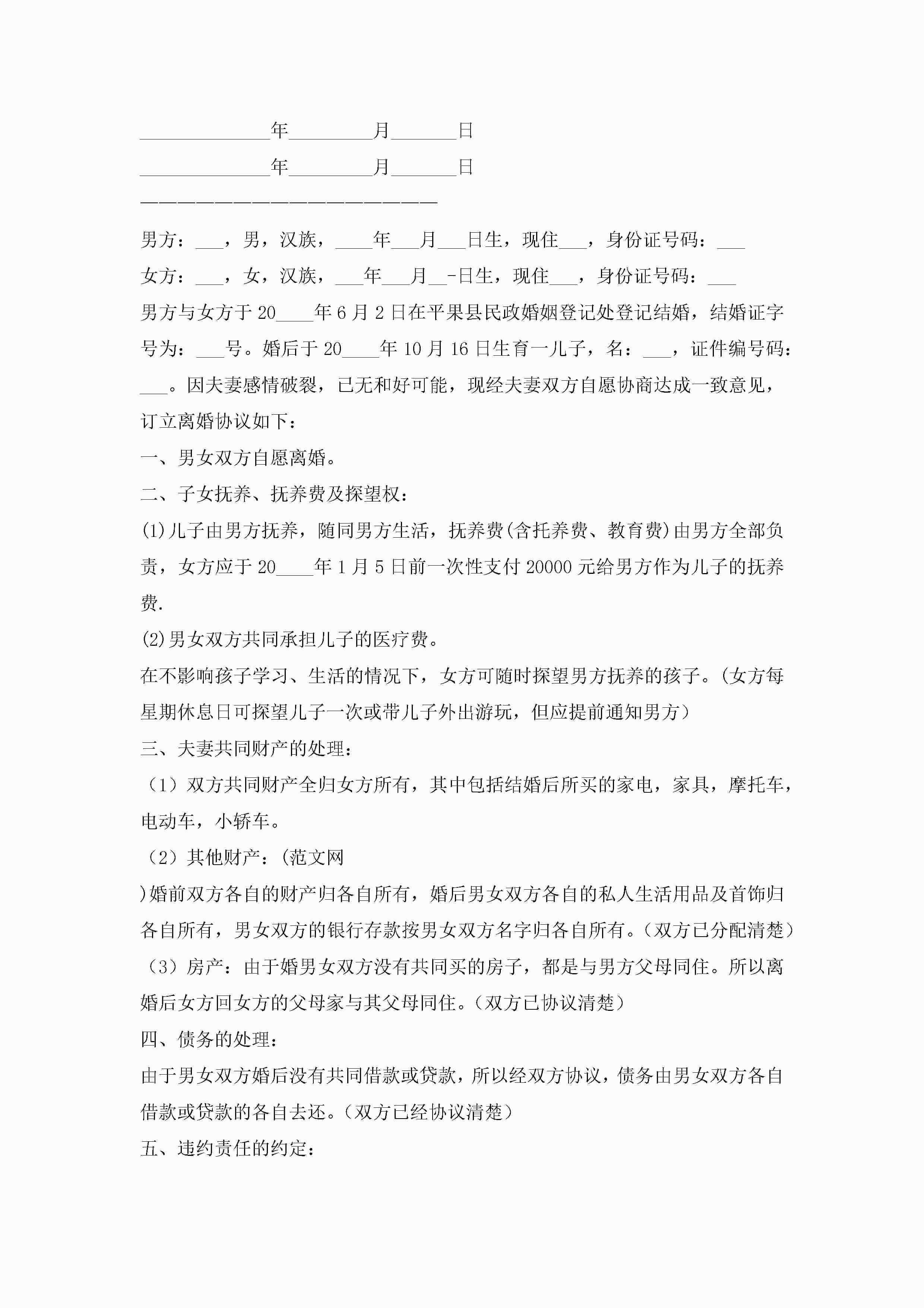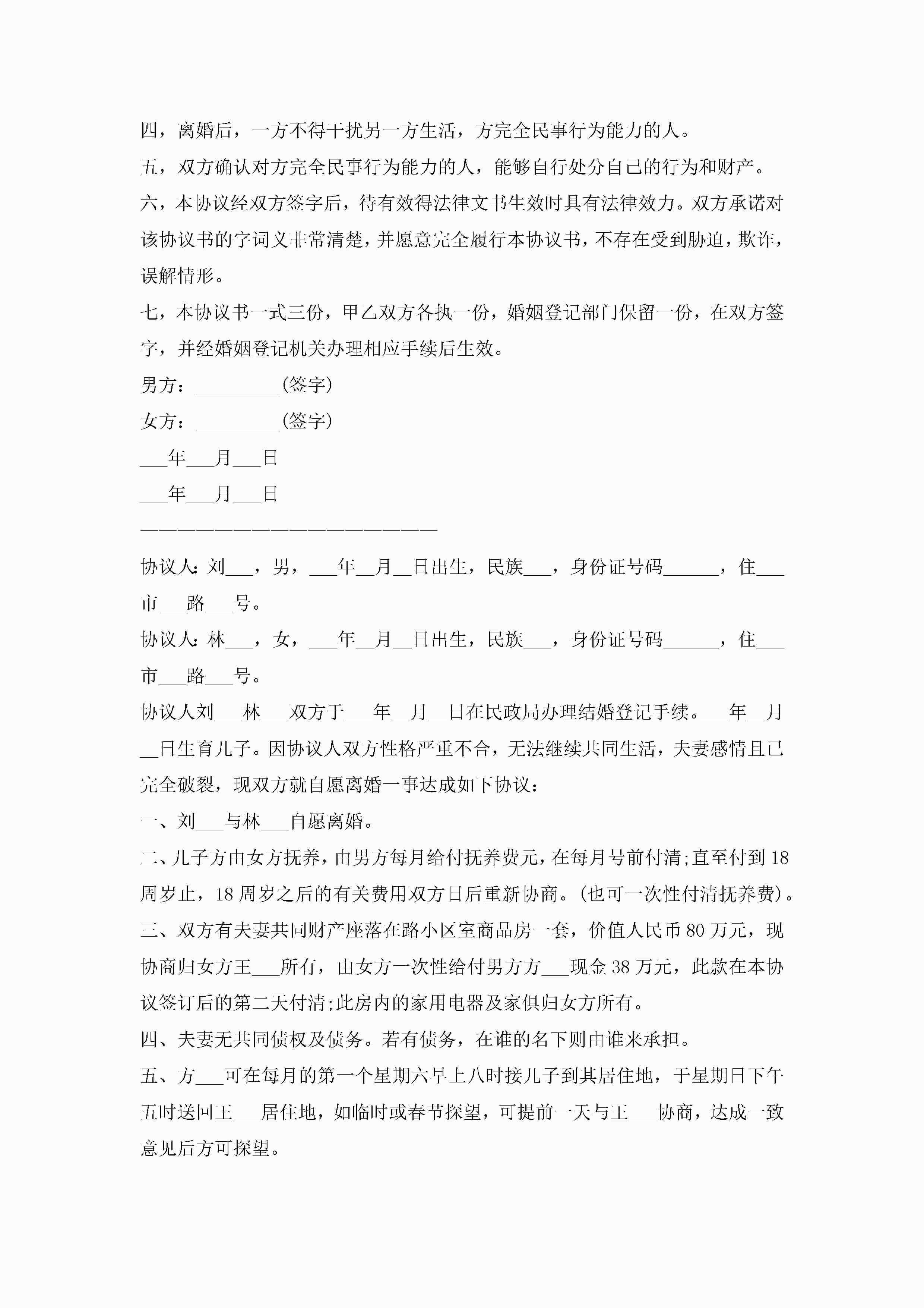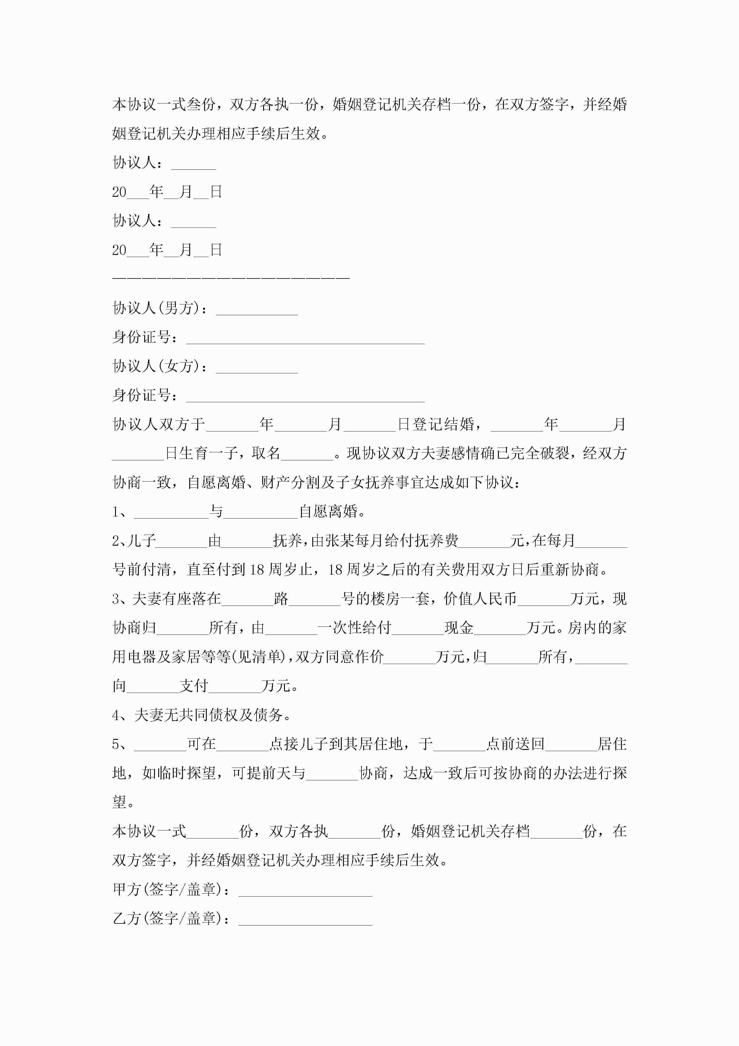 2023年离婚协议书范本大全(精选10篇)jugei3月22日 12:42更新关注199 2023年离婚协议书范本大全(精选10篇)此内容为付费资源,请付费后查看¥10.9 单篇文档限时特惠¥15个人会员开通企业会员开通立即下载无需登陆!可直接快捷下载单个模板付费资源© 版权声明THE ENDWord模板# 实用文档# 实用模板# 信函模板# 协议书 如有问题,可点击最底部“联系我们”联系客服 分享QQ空间微博QQ好友海报分享复制链接收藏