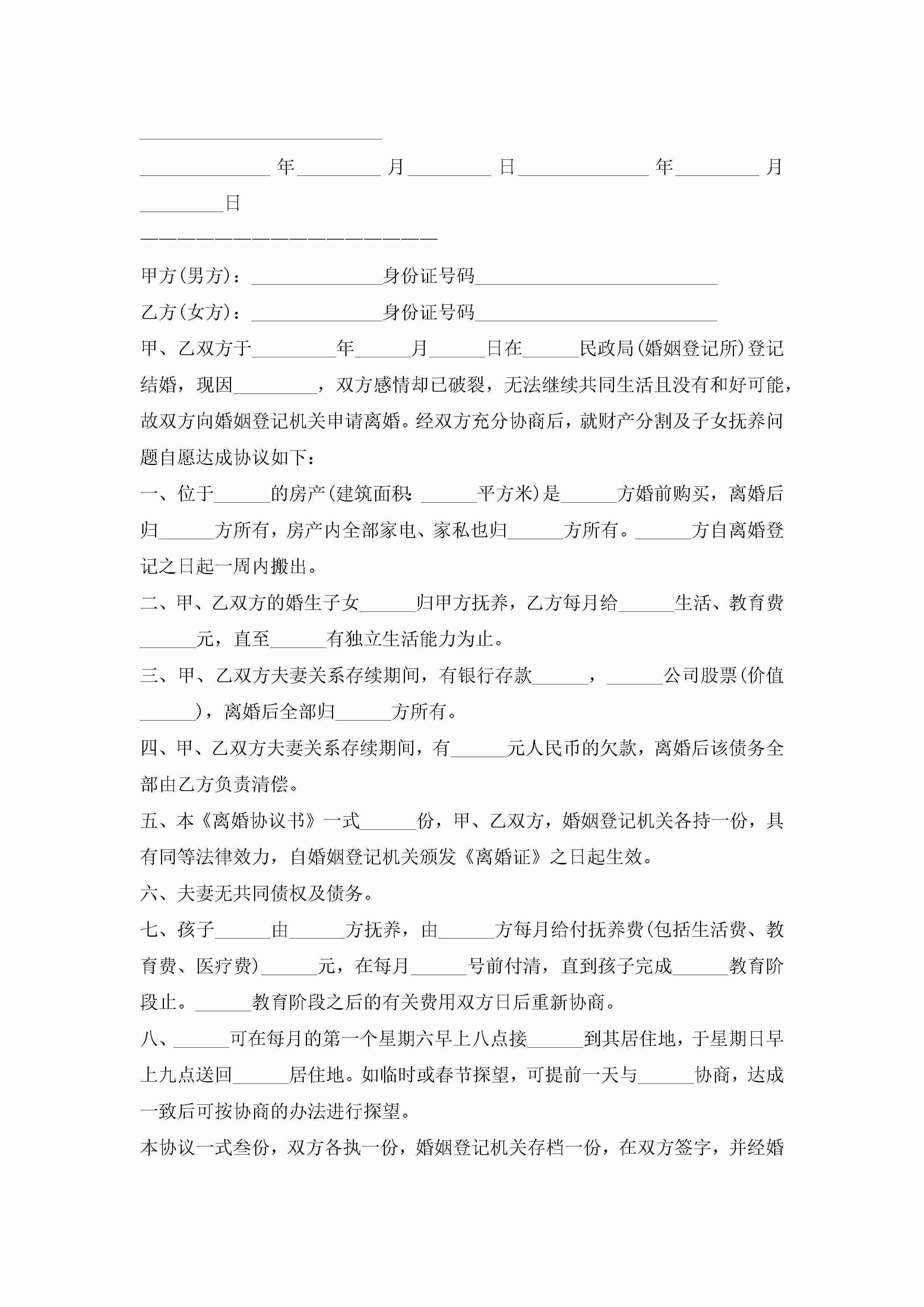 双方自愿离婚协议书(7篇)jugei3月22日 12:42更新关注203 双方自愿离婚协议书(7篇)此内容为付费资源,请付费后查看¥10.9 单篇文档限时特惠¥15个人会员开通企业会员开通立即下载无需登陆!可直接快捷下载单个模板付费资源© 版权声明THE ENDWord模板# 实用文档# 实用模板# 信函模板# 协议书 如有问题,可点击最底部“联系我们”联系客服 分享QQ空间微博QQ好友海报分享复制链接收藏