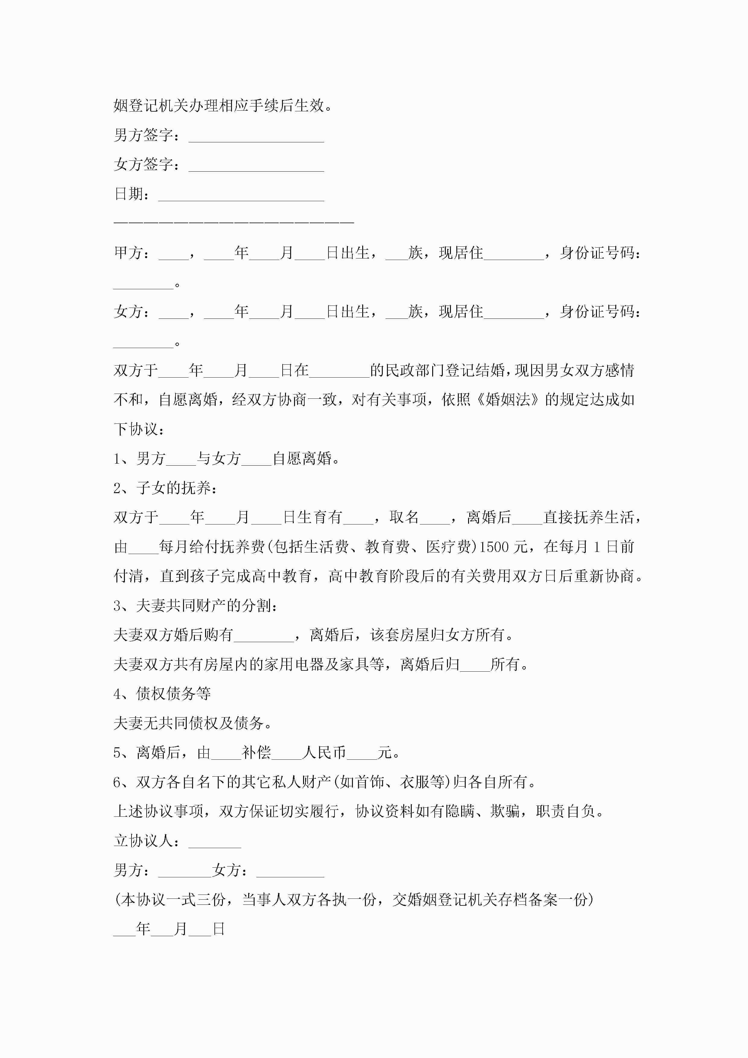 标准的离婚协议书(7篇)jugei3月22日 12:42更新关注193 标准的离婚协议书(7篇)此内容为付费资源,请付费后查看¥10.9 单篇文档限时特惠¥15个人会员开通企业会员开通立即下载无需登陆!可直接快捷下载单个模板付费资源© 版权声明THE ENDWord模板# 实用文档# 实用模板# 信函模板# 协议书 如有问题,可点击最底部“联系我们”联系客服 分享QQ空间微博QQ好友海报分享复制链接收藏