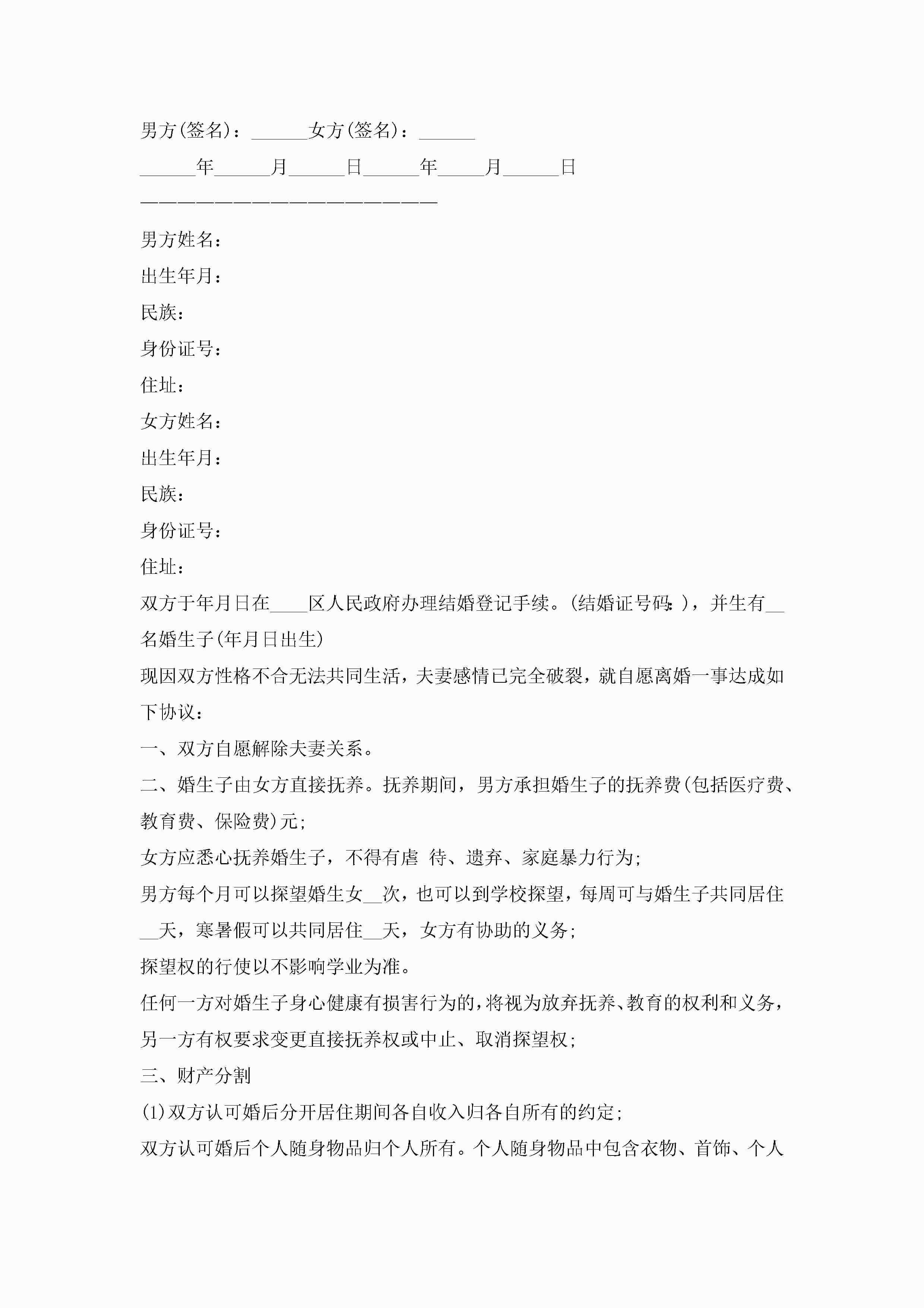 离婚协议书标准范本(7篇)jugei3月22日 12:42更新关注244 离婚协议书标准范本(7篇)此内容为付费资源,请付费后查看¥10.9 单篇文档限时特惠¥15个人会员开通企业会员开通立即下载无需登陆!可直接快捷下载单个模板付费资源© 版权声明THE ENDWord模板# 实用文档# 实用模板# 信函模板# 协议书 如有问题,可点击最底部“联系我们”联系客服 分享QQ空间微博QQ好友海报分享复制链接收藏