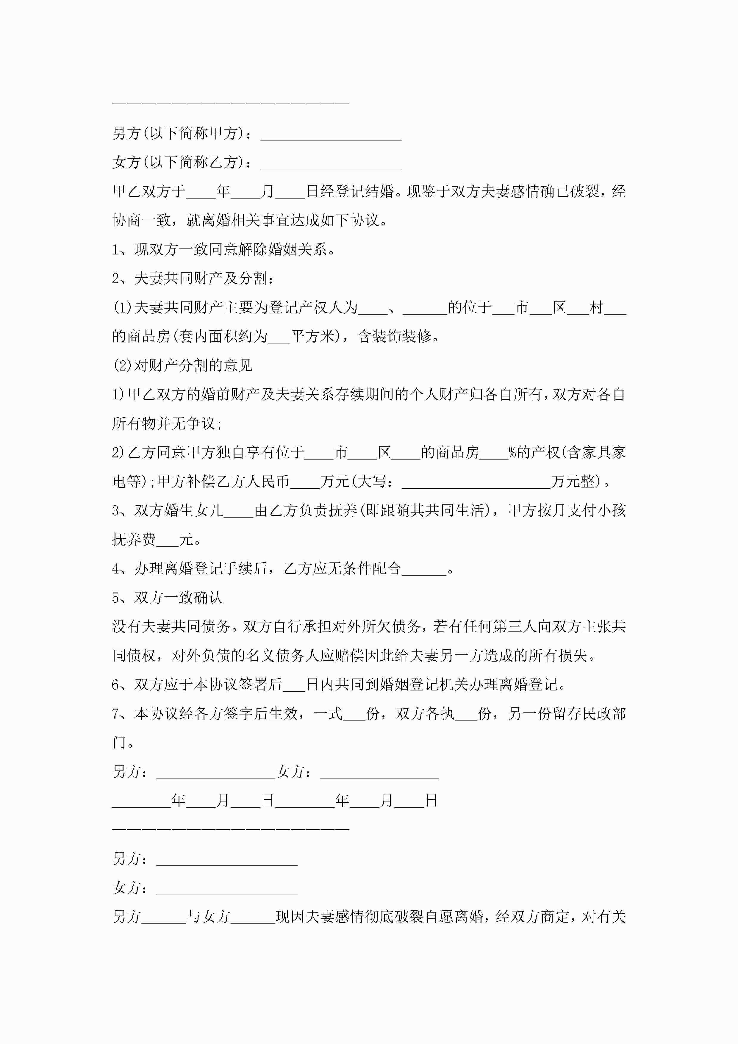 2023正规离婚协议书(7篇)jugei3月22日 12:42更新关注195 2023正规离婚协议书(7篇)此内容为付费资源,请付费后查看¥10.9 单篇文档限时特惠¥15个人会员开通企业会员开通立即下载无需登陆!可直接快捷下载单个模板付费资源© 版权声明THE ENDWord模板# 实用文档# 实用模板# 信函模板# 协议书 如有问题,可点击最底部“联系我们”联系客服 分享QQ空间微博QQ好友海报分享复制链接收藏