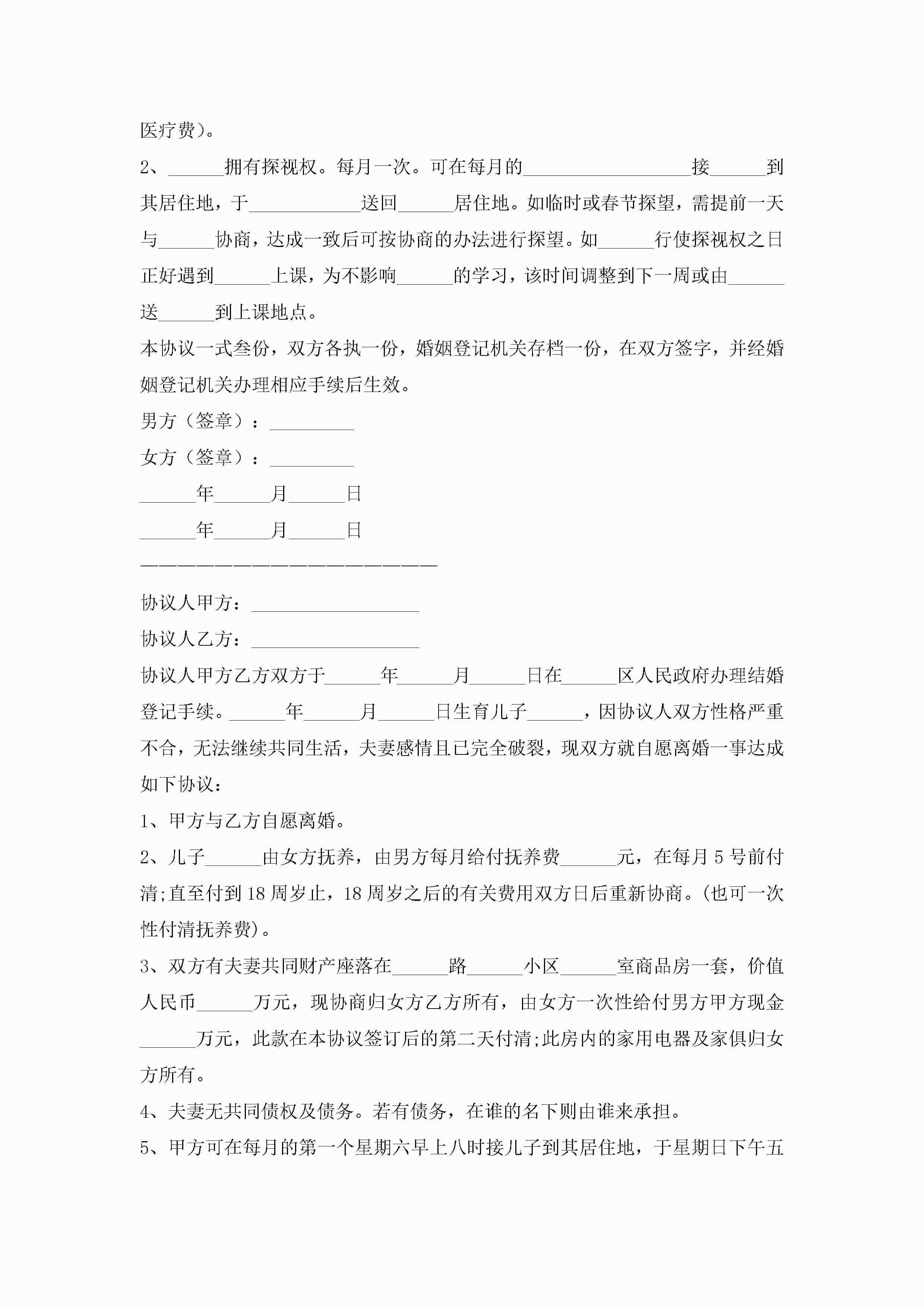 正式离婚协议书(7篇)jugei3月22日 12:42更新关注264 正式离婚协议书(7篇)此内容为付费资源,请付费后查看¥10.9 单篇文档限时特惠¥15个人会员开通企业会员开通立即下载无需登陆!可直接快捷下载单个模板付费资源© 版权声明THE ENDWord模板# 实用文档# 实用模板# 信函模板# 协议书 如有问题,可点击最底部“联系我们”联系客服 分享QQ空间微博QQ好友海报分享复制链接收藏