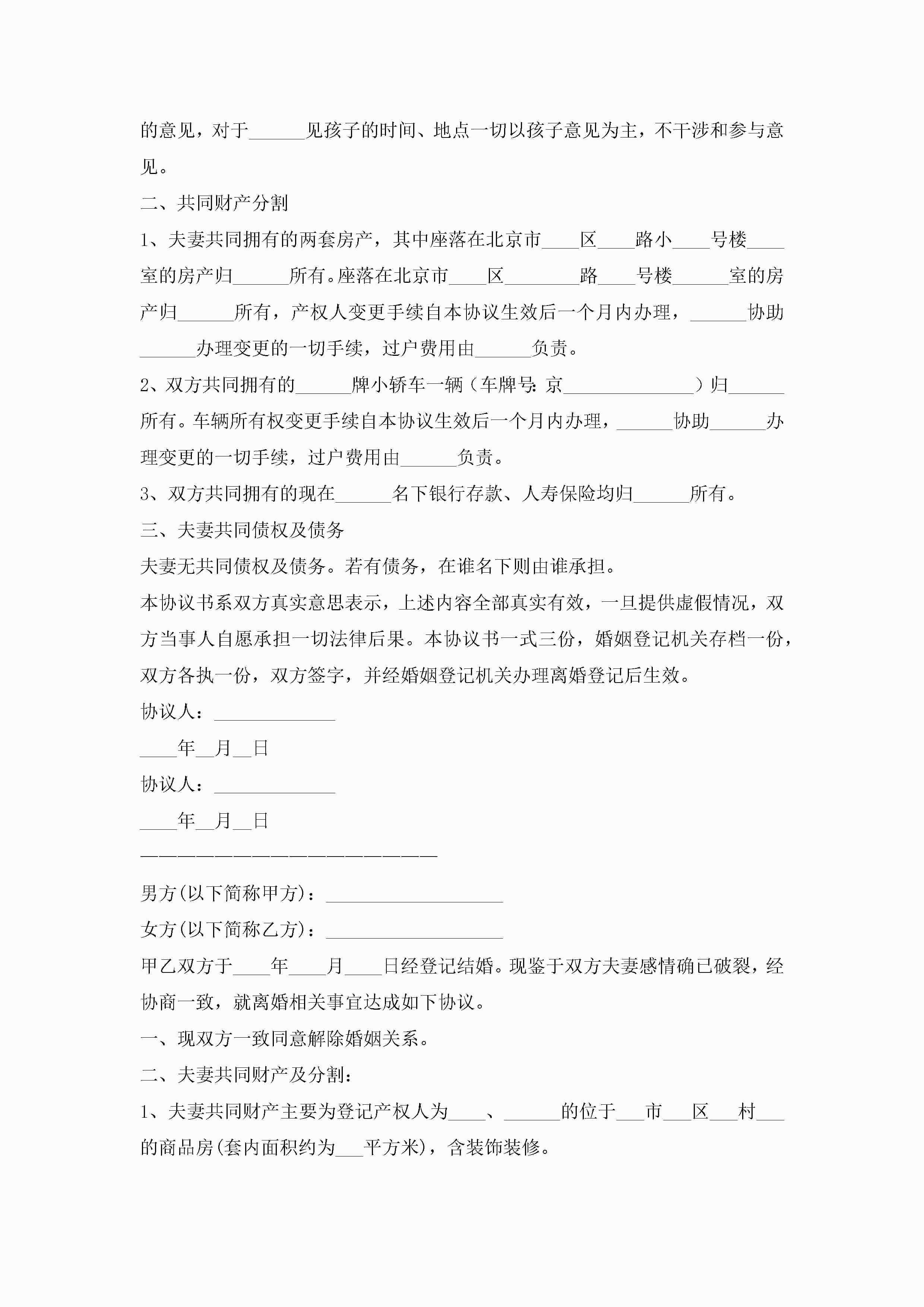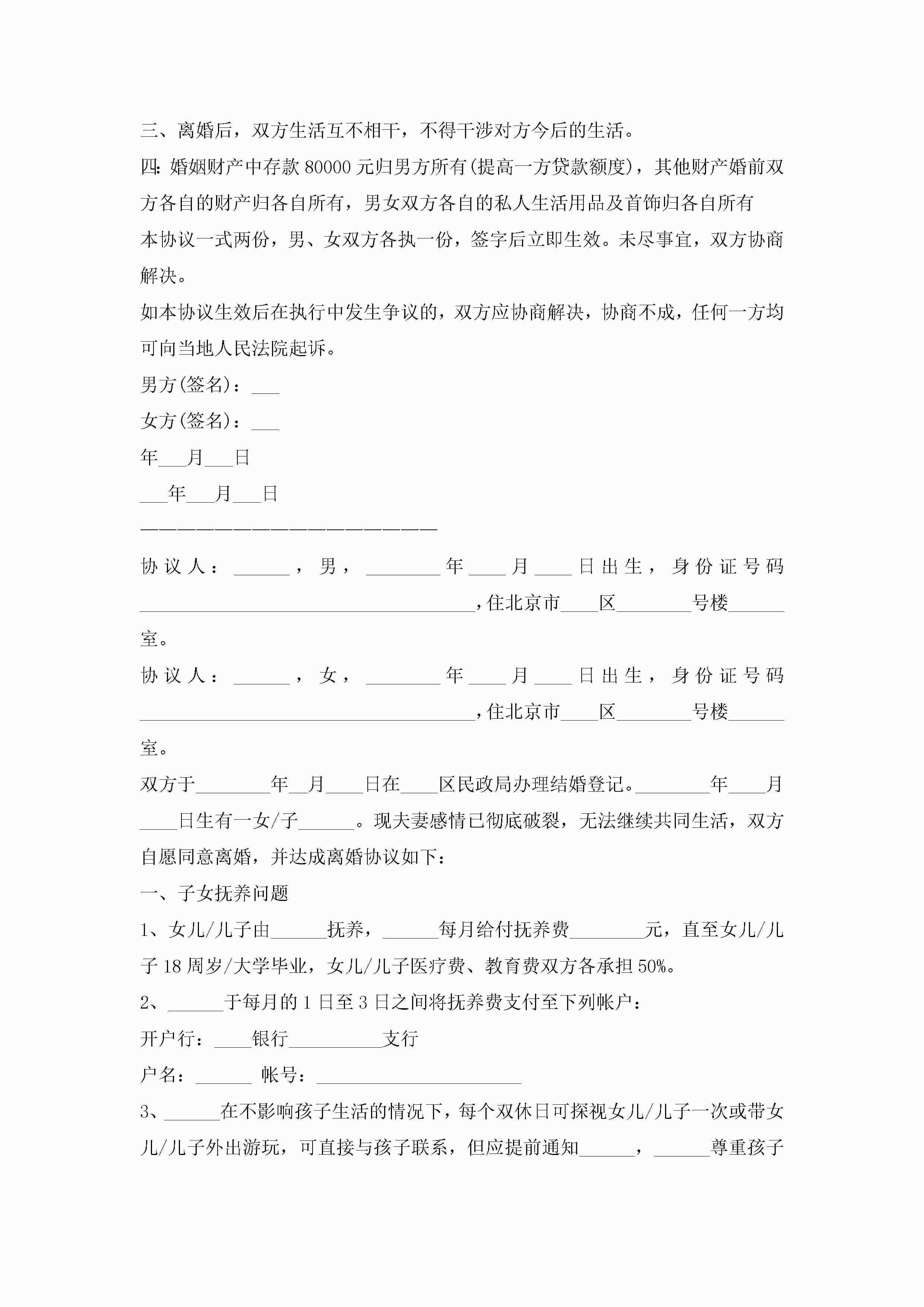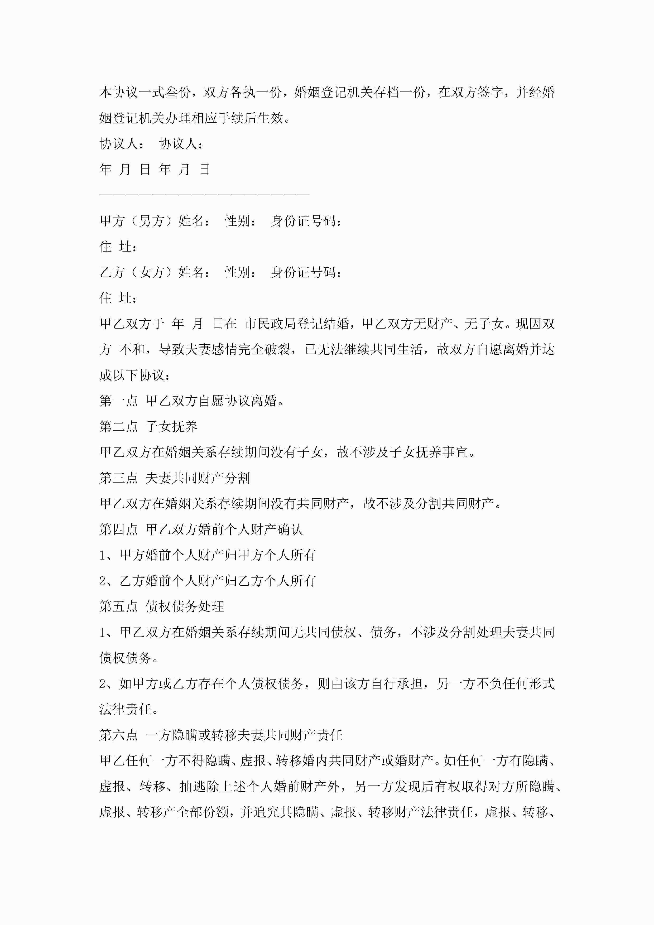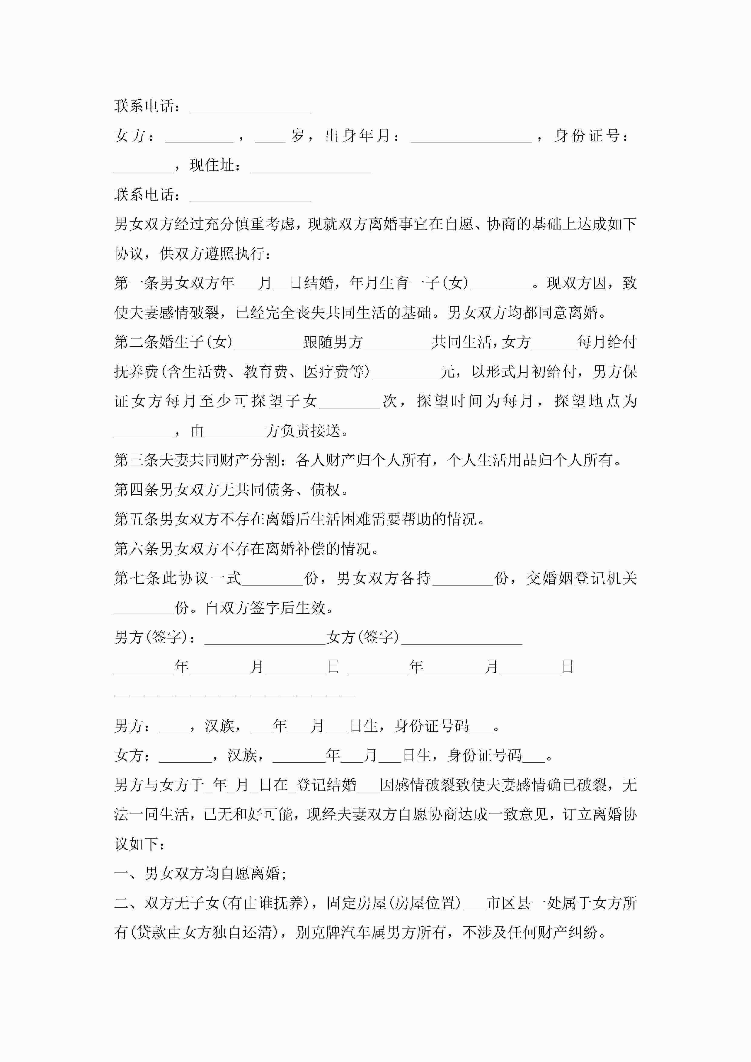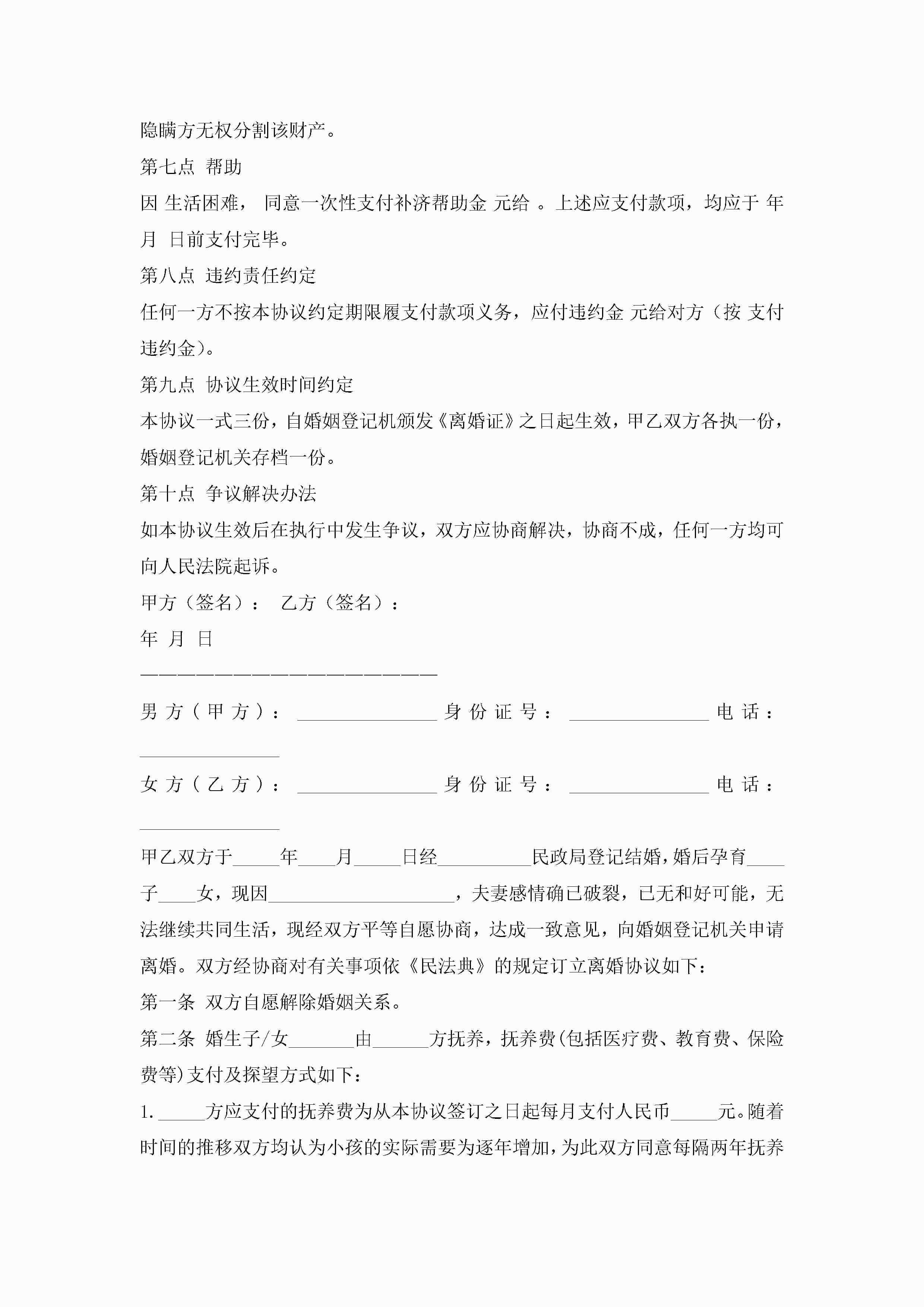 标准版离婚协议书(7篇)jugei3月22日 12:42更新关注198 标准版离婚协议书(7篇)此内容为付费资源,请付费后查看¥10.9 单篇文档限时特惠¥15个人会员开通企业会员开通立即下载无需登陆!可直接快捷下载单个模板付费资源© 版权声明THE ENDWord模板# 实用文档# 实用模板# 信函模板# 协议书 如有问题,可点击最底部“联系我们”联系客服 分享QQ空间微博QQ好友海报分享复制链接收藏