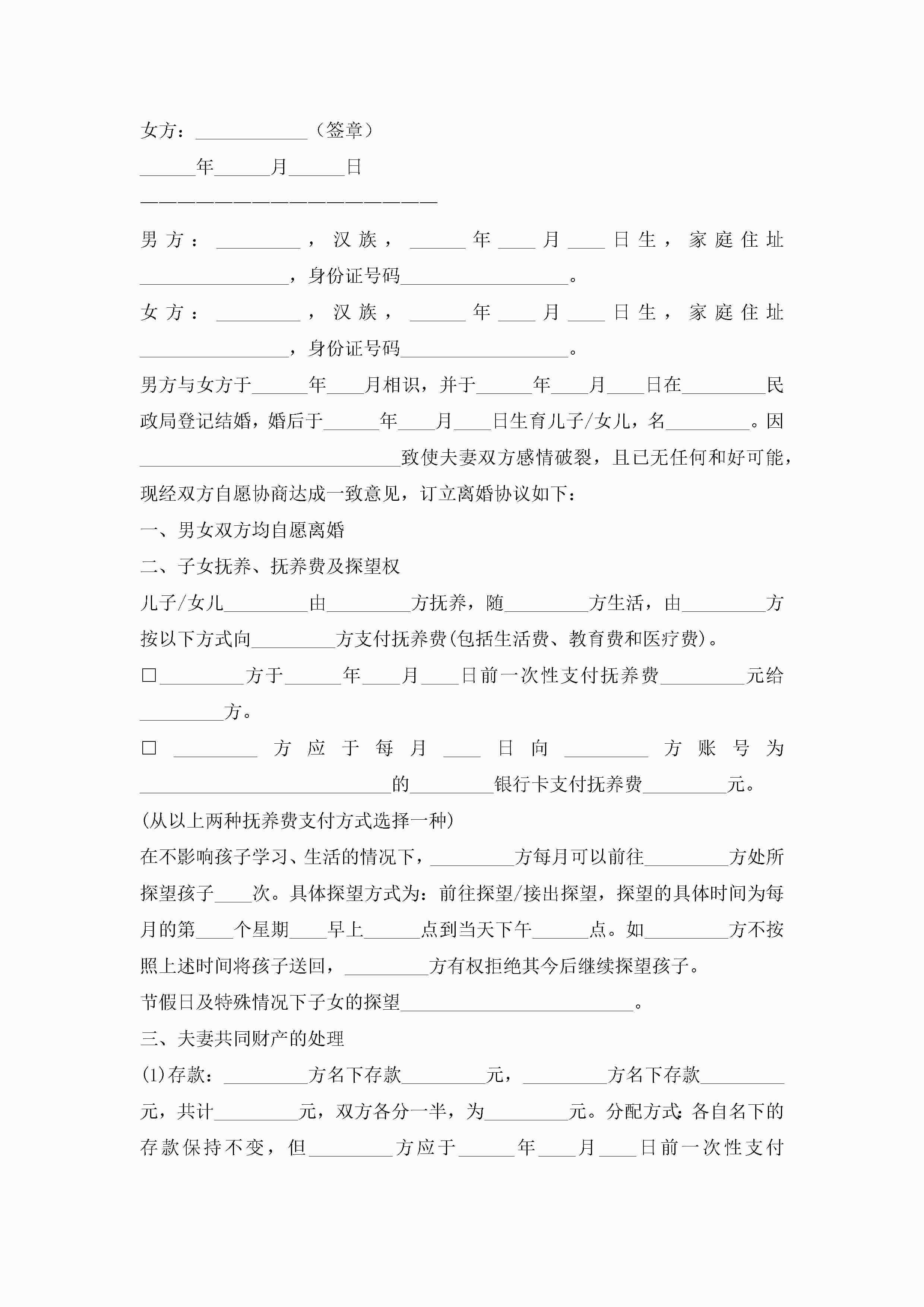 最新离婚协议模板(7篇)jugei3月22日 12:42更新关注246 最新离婚协议模板(7篇)此内容为付费资源,请付费后查看¥10.9 单篇文档限时特惠¥15个人会员开通企业会员开通立即下载无需登陆!可直接快捷下载单个模板付费资源© 版权声明THE ENDWord模板# 实用文档# 实用模板# 信函模板# 协议书 如有问题,可点击最底部“联系我们”联系客服 分享QQ空间微博QQ好友海报分享复制链接收藏