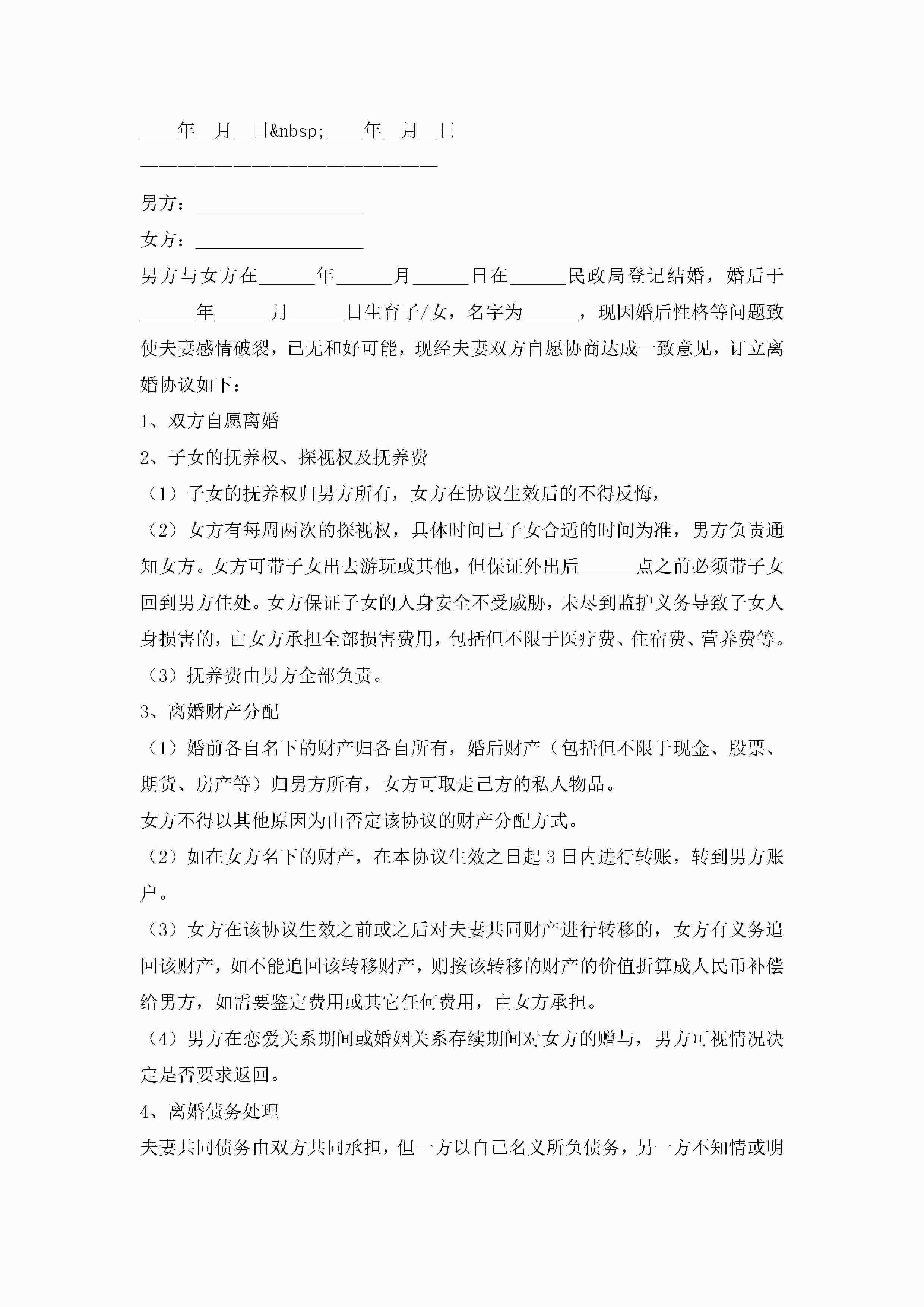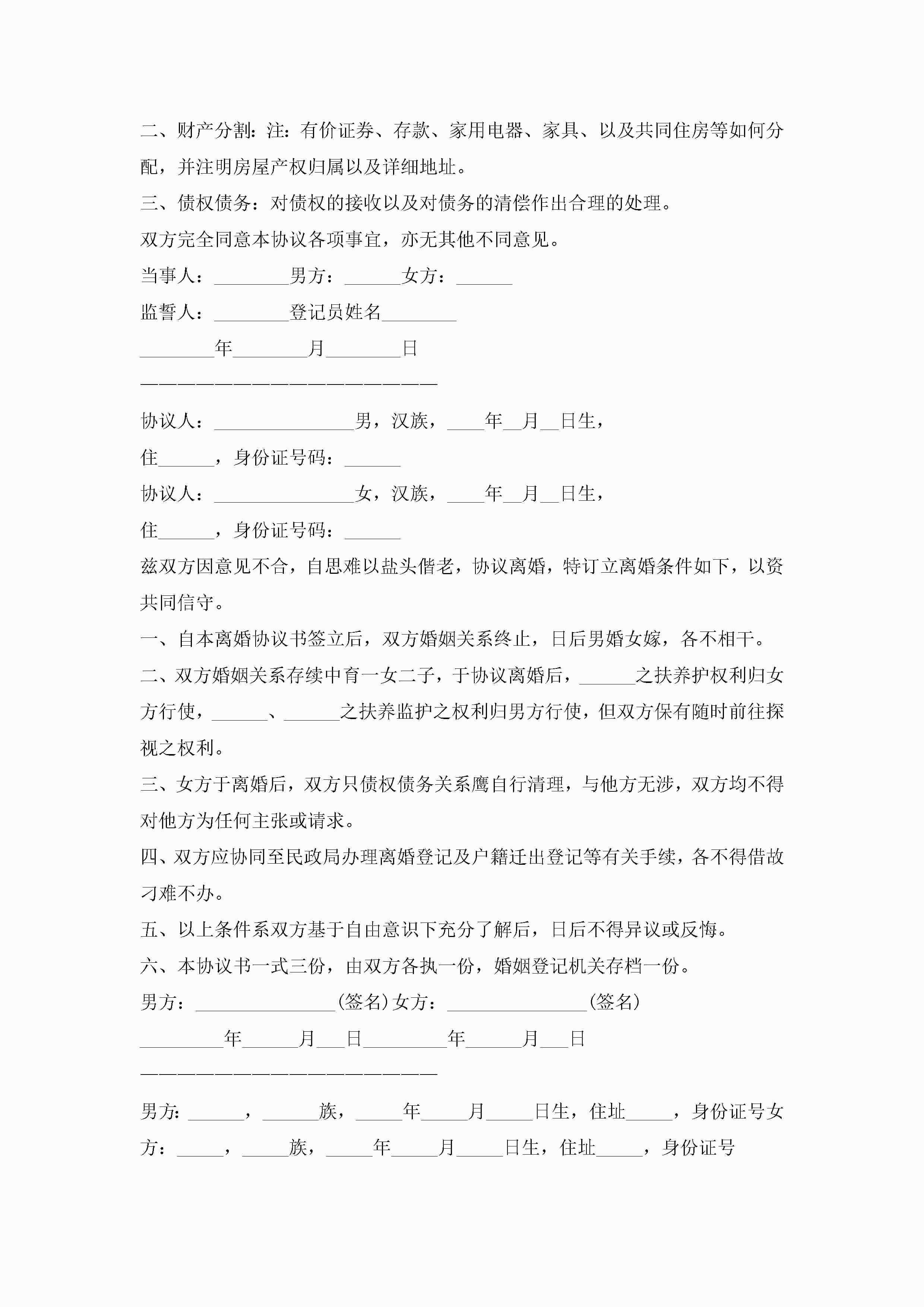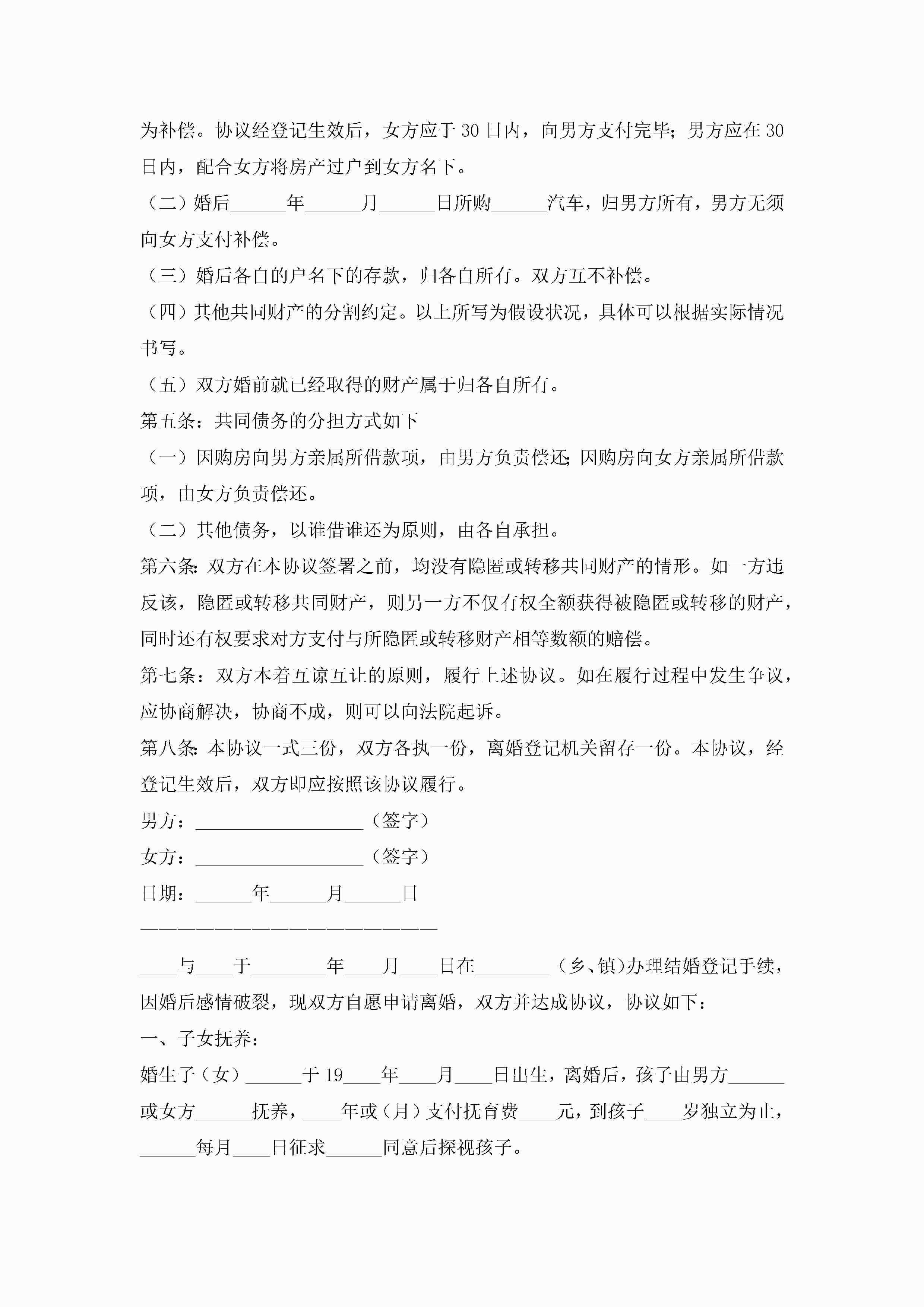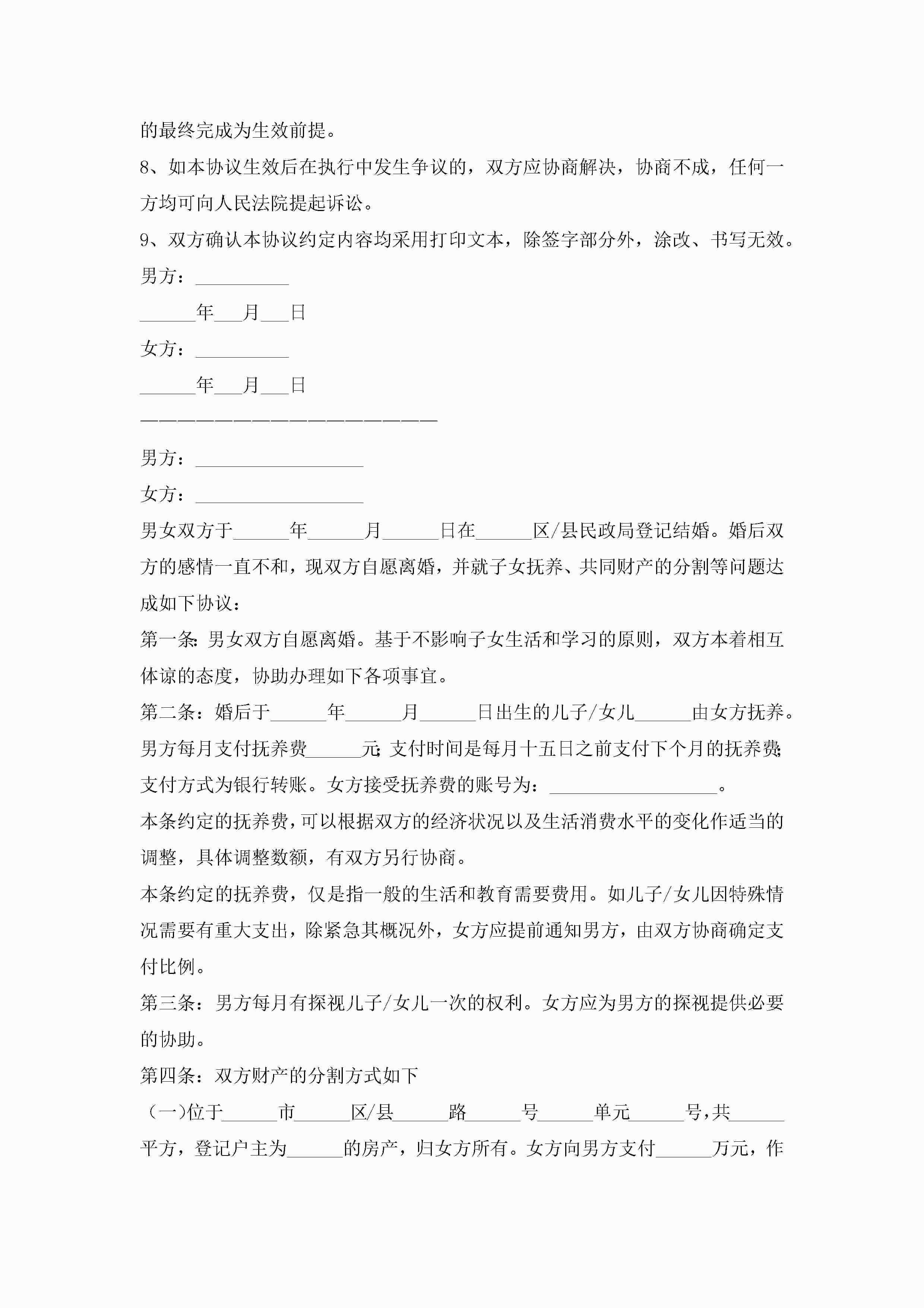 夫妻离婚协议书2022精选8篇jugei3月22日 12:42更新关注217 夫妻离婚协议书2022精选8篇此内容为付费资源,请付费后查看¥10.9 单篇文档限时特惠¥15个人会员开通企业会员开通立即下载无需登陆!可直接快捷下载单个模板付费资源© 版权声明THE ENDWord模板# 实用文档# 实用模板# 信函模板# 协议书 如有问题,可点击最底部“联系我们”联系客服 分享QQ空间微博QQ好友海报分享复制链接收藏