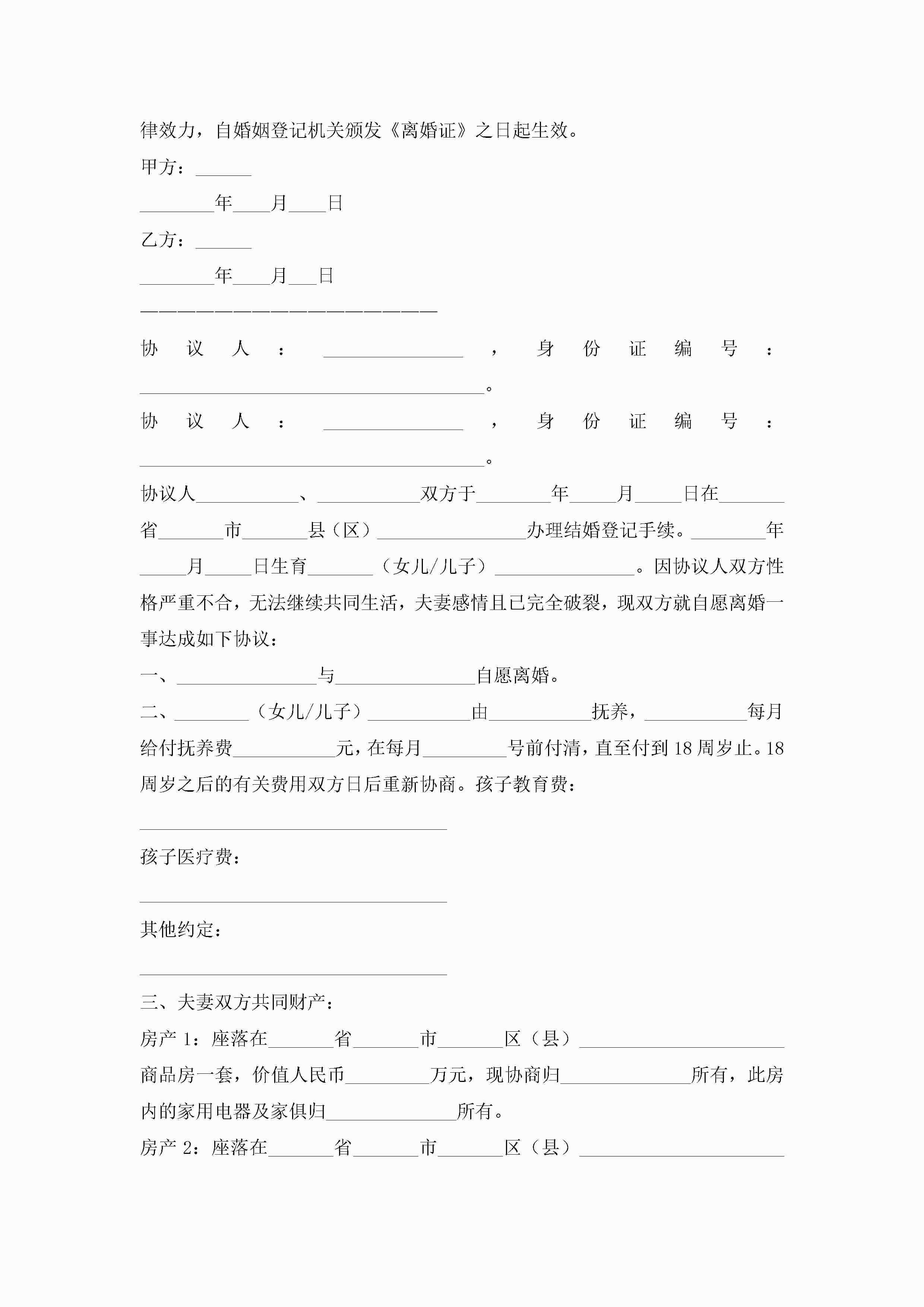 离婚协议书2023标准版【10篇】jugei3月22日 12:42更新关注228 离婚协议书2023标准版【10篇】此内容为付费资源,请付费后查看¥10.9 单篇文档限时特惠¥15个人会员开通企业会员开通立即下载无需登陆!可直接快捷下载单个模板付费资源© 版权声明THE ENDWord模板# 实用文档# 实用模板# 信函模板# 协议书 如有问题,可点击最底部“联系我们”联系客服 分享QQ空间微博QQ好友海报分享复制链接收藏