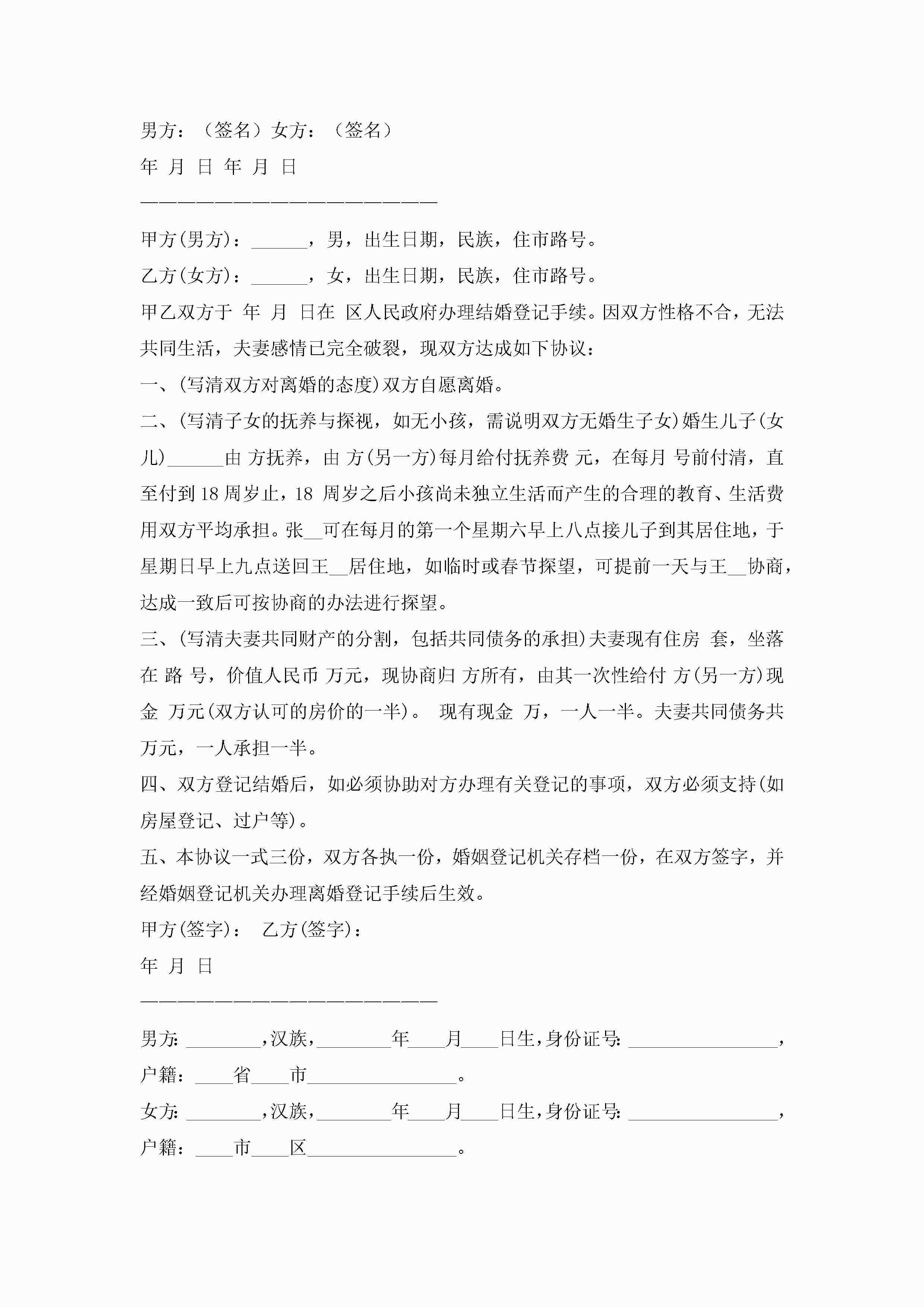 离婚协议书范本(十篇)jugei3月22日 12:42更新关注252 离婚协议书范本(十篇)此内容为付费资源,请付费后查看¥10.9 单篇文档限时特惠¥15个人会员开通企业会员开通立即下载无需登陆!可直接快捷下载单个模板付费资源© 版权声明THE ENDWord模板# 实用文档# 实用模板# 信函模板# 协议书 如有问题,可点击最底部“联系我们”联系客服 分享QQ空间微博QQ好友海报分享复制链接收藏