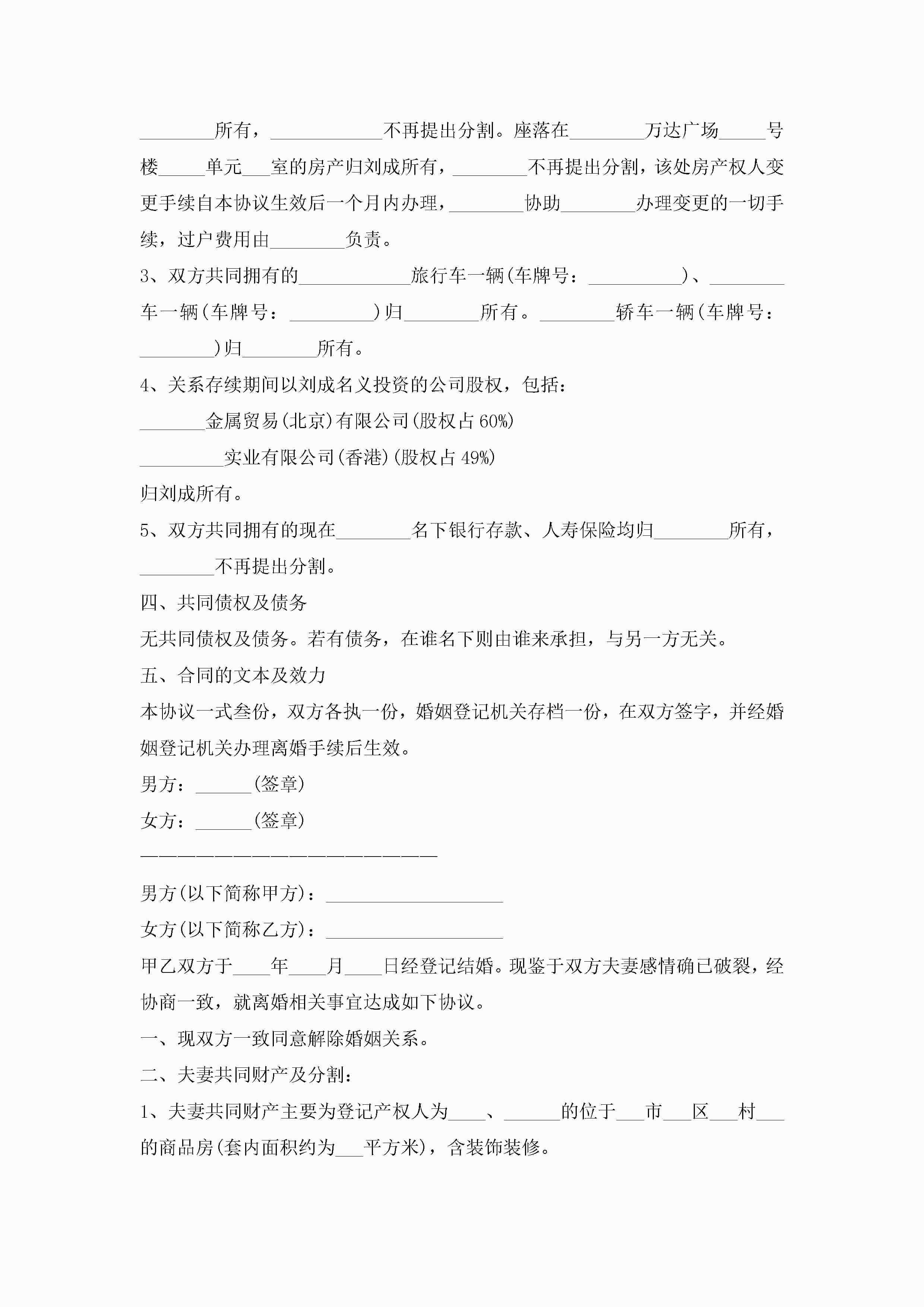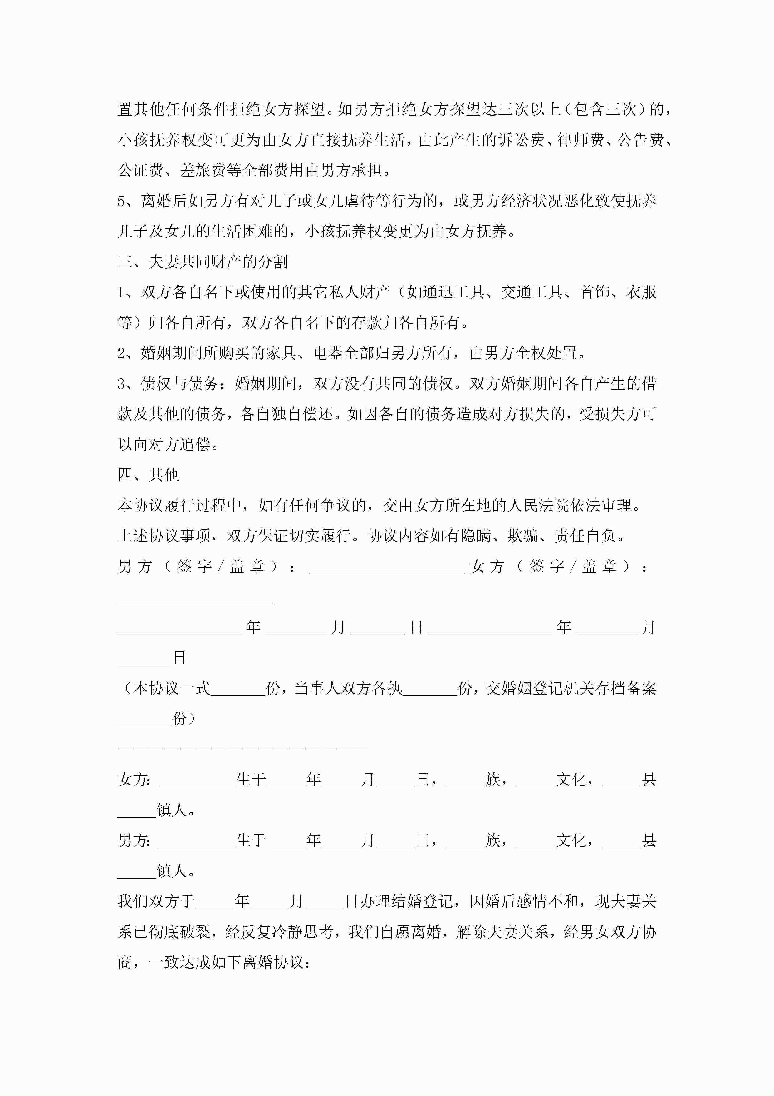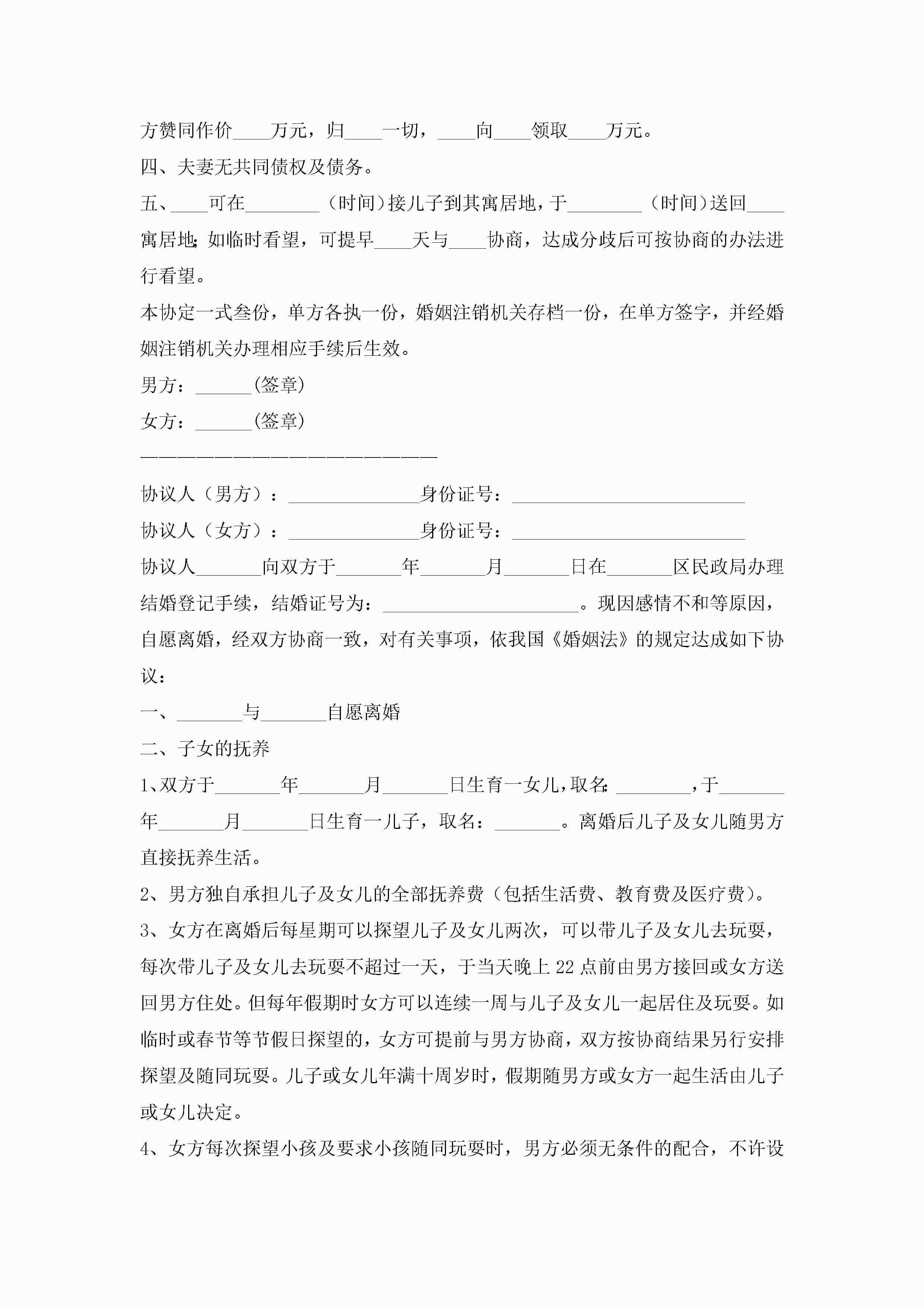 最新自愿离婚协议书模板(精选10篇)jugei3月22日 12:42更新关注334 最新自愿离婚协议书模板(精选10篇)此内容为付费资源,请付费后查看¥10.9 单篇文档限时特惠¥15个人会员开通企业会员开通立即下载无需登陆!可直接快捷下载单个模板付费资源© 版权声明THE ENDWord模板# 实用文档# 实用模板# 信函模板# 协议书 如有问题,可点击最底部“联系我们”联系客服 分享QQ空间微博QQ好友海报分享复制链接收藏