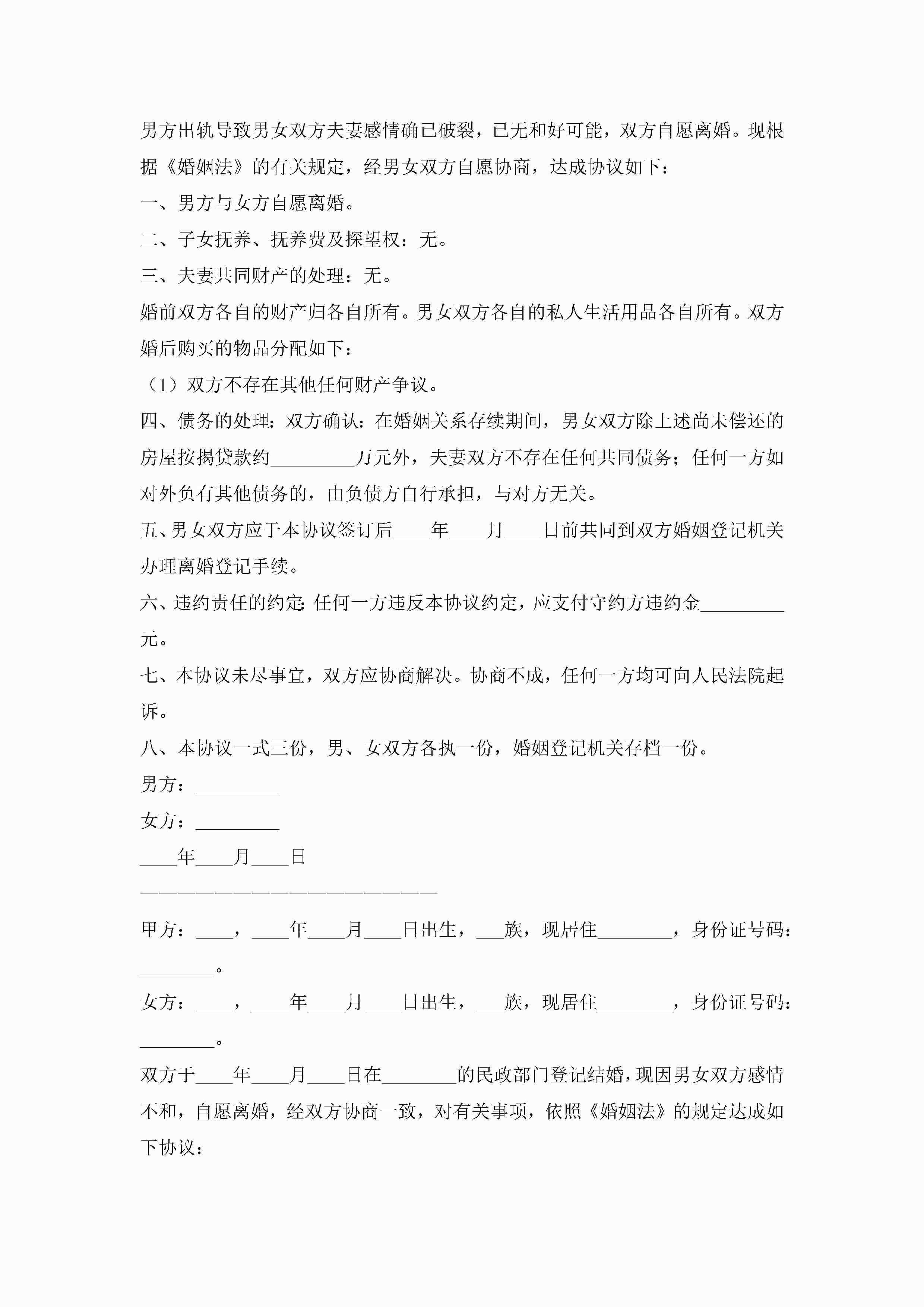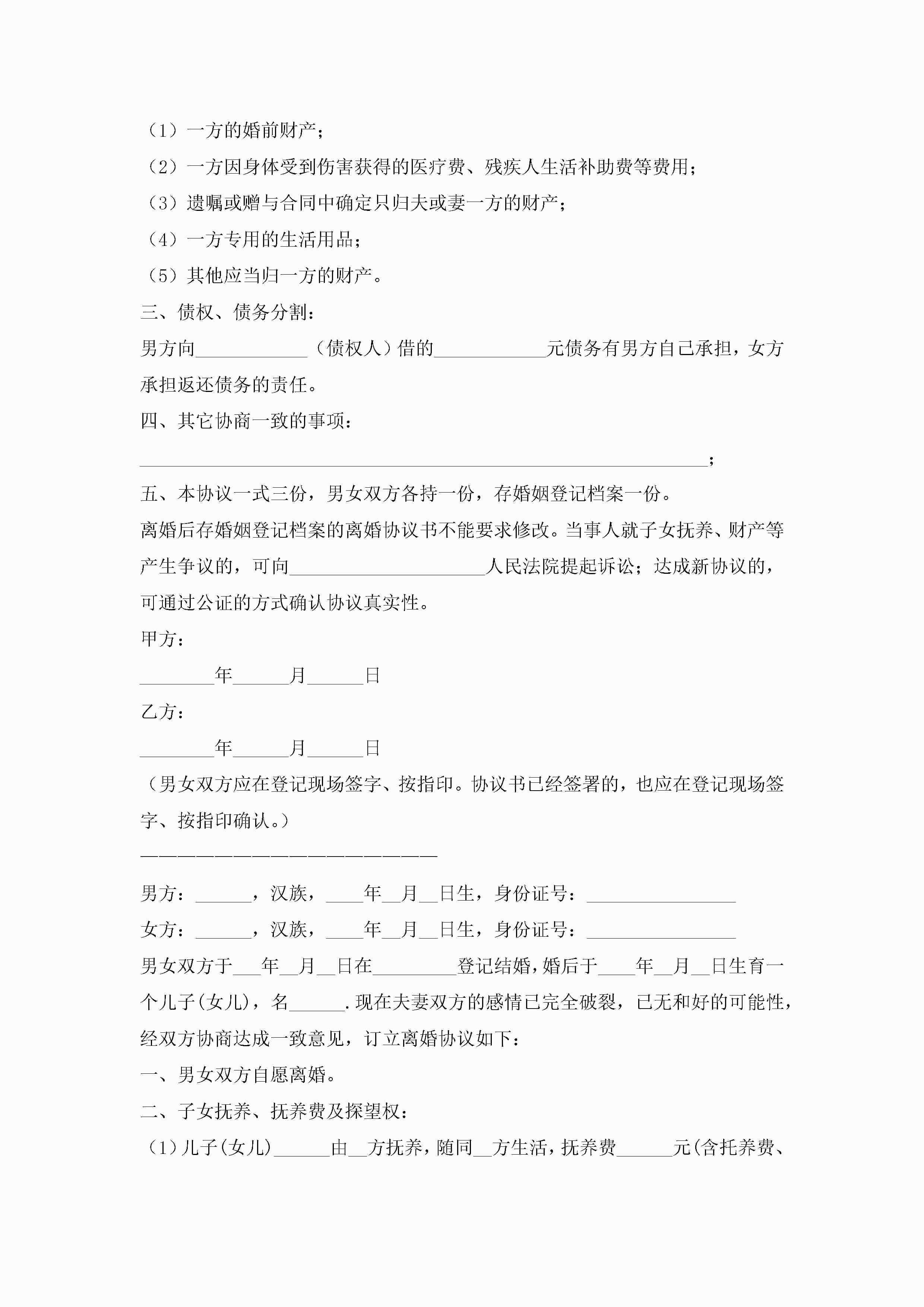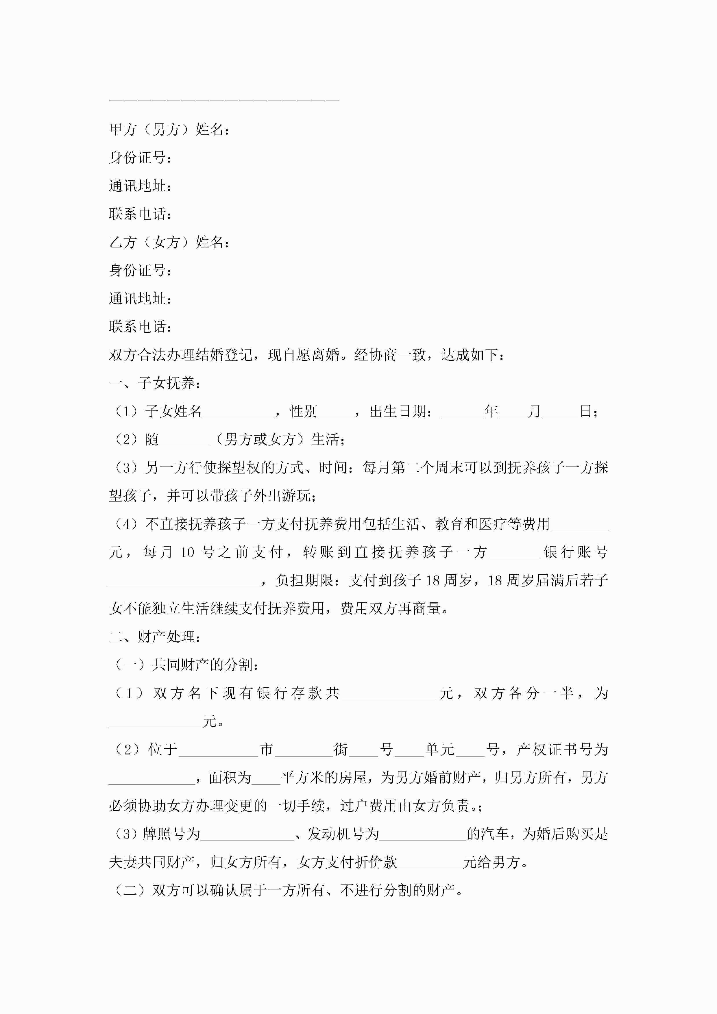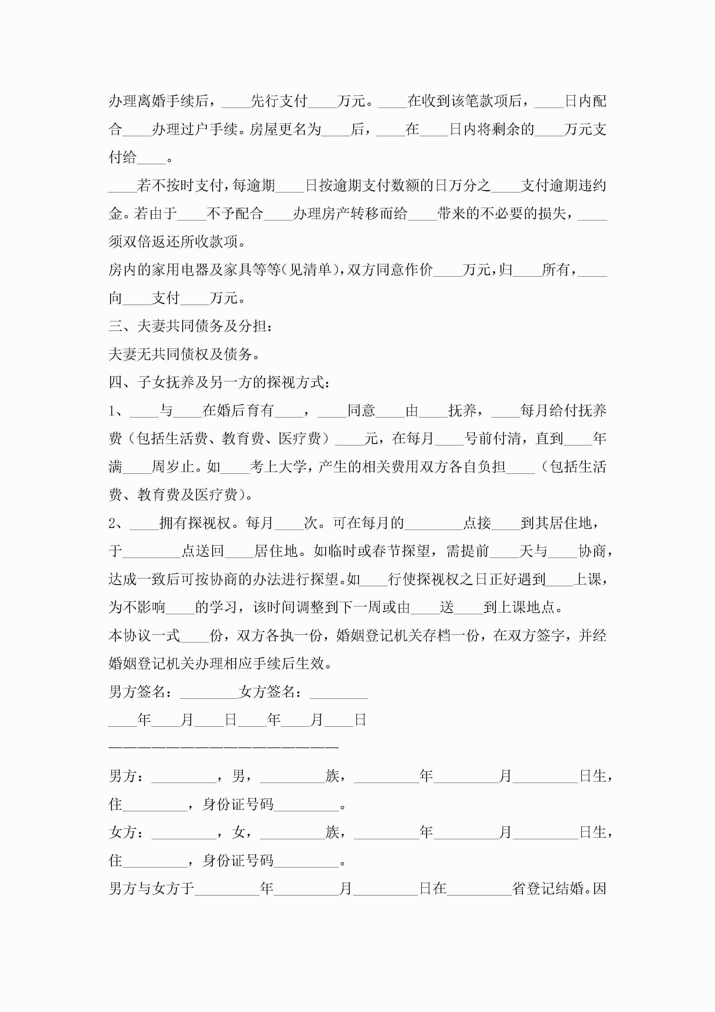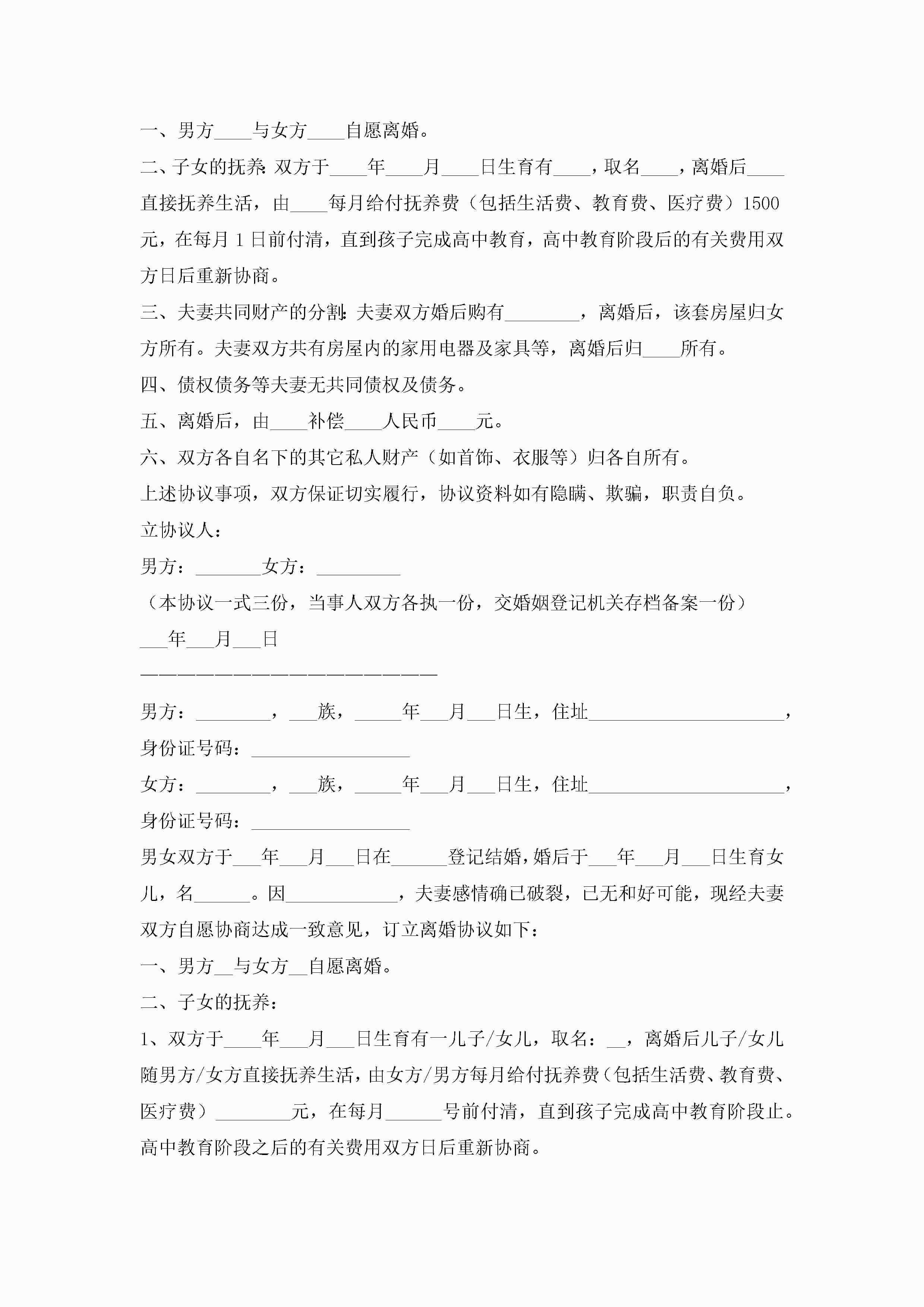 有孩子离婚协议书范本(精选10篇)jugei3月22日 12:42更新关注213 有孩子离婚协议书范本(精选10篇)此内容为付费资源,请付费后查看¥10.9 单篇文档限时特惠¥15个人会员开通企业会员开通立即下载无需登陆!可直接快捷下载单个模板付费资源© 版权声明THE ENDWord模板# 实用文档# 实用模板# 信函模板# 协议书 如有问题,可点击最底部“联系我们”联系客服 分享QQ空间微博QQ好友海报分享复制链接收藏