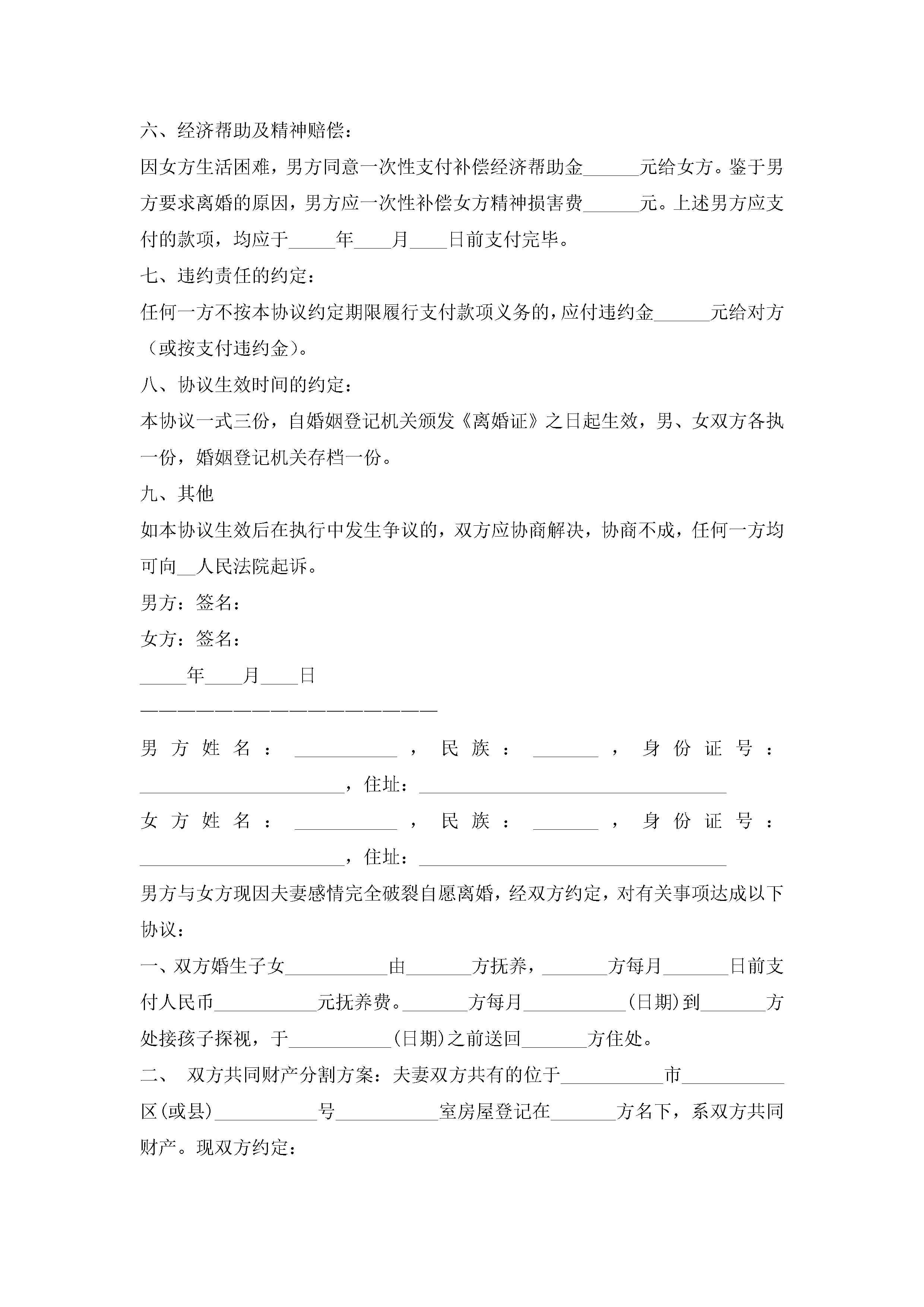 夫妻离婚协议书怎么写(精选10篇)jugei3月22日 01:31发布关注213 夫妻离婚协议书怎么写(精选10篇)此内容为付费资源,请付费后查看¥10.9 单篇文档限时特惠¥15个人会员开通企业会员开通立即下载无需登陆!可直接快捷下载单个模板付费资源© 版权声明THE ENDWord模板# 实用文档# 实用模板# 信函模板# 协议书 如有问题,可点击最底部“联系我们”联系客服 分享QQ空间微博QQ好友海报分享复制链接收藏