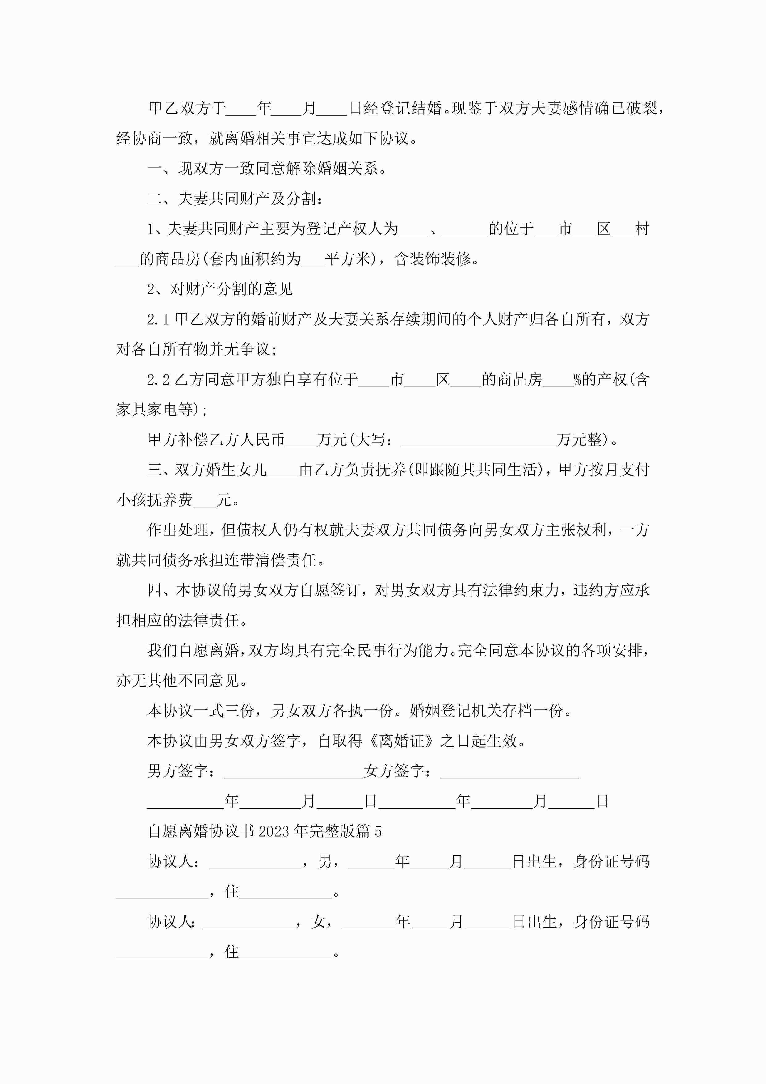 关于自愿离婚协议书2023年完整版【10篇】jugei3月22日 01:31发布关注248 关于自愿离婚协议书2023年完整版【10篇】此内容为付费资源,请付费后查看¥10.9 单篇文档限时特惠¥15个人会员开通企业会员开通立即下载无需登陆!可直接快捷下载单个模板付费资源© 版权声明THE ENDWord模板# 实用文档# 信函模板# 协议书# 自愿离婚协议书2023年完整版【10篇】 如有问题,可点击最底部“联系我们”联系客服 分享QQ空间微博QQ好友海报分享复制链接收藏